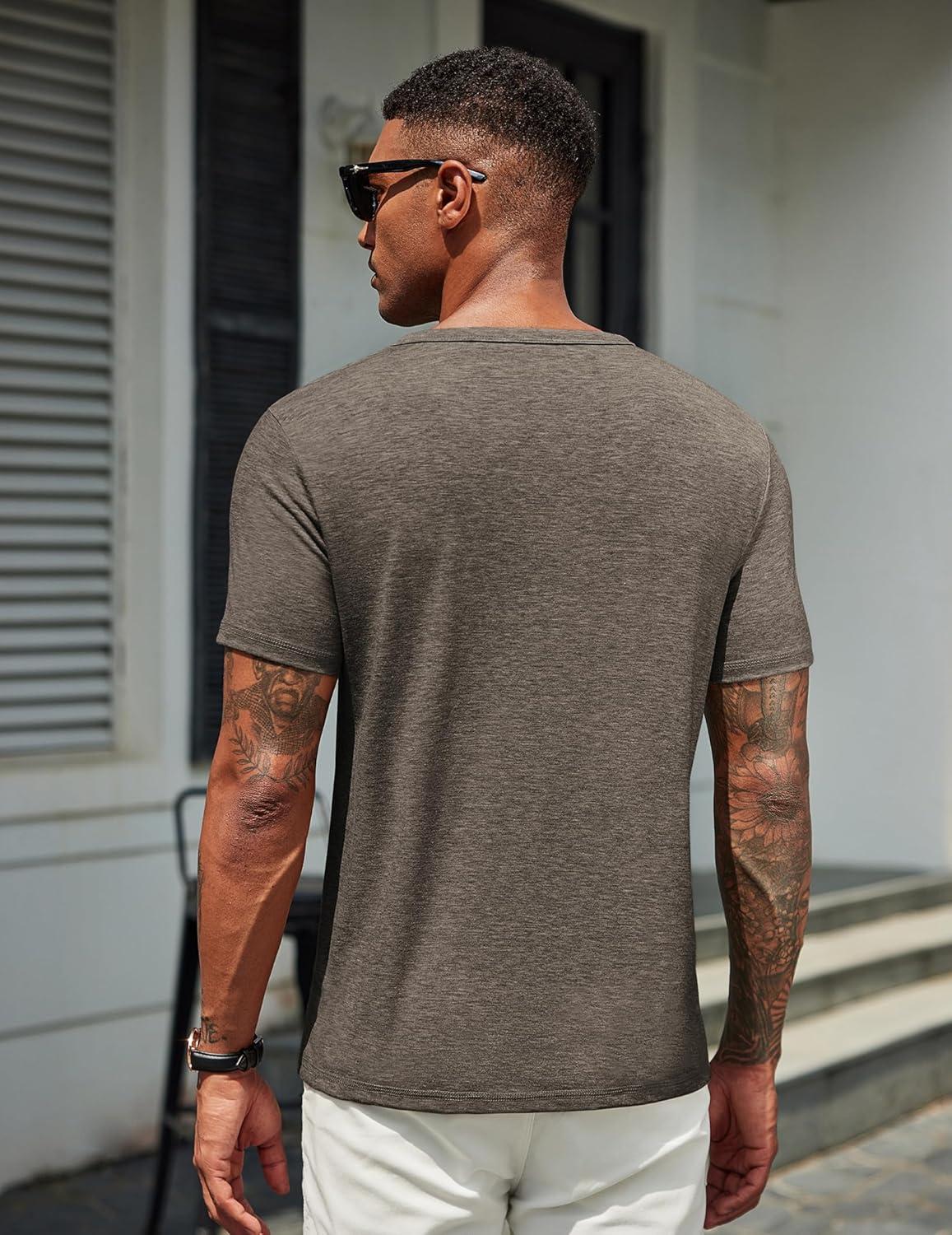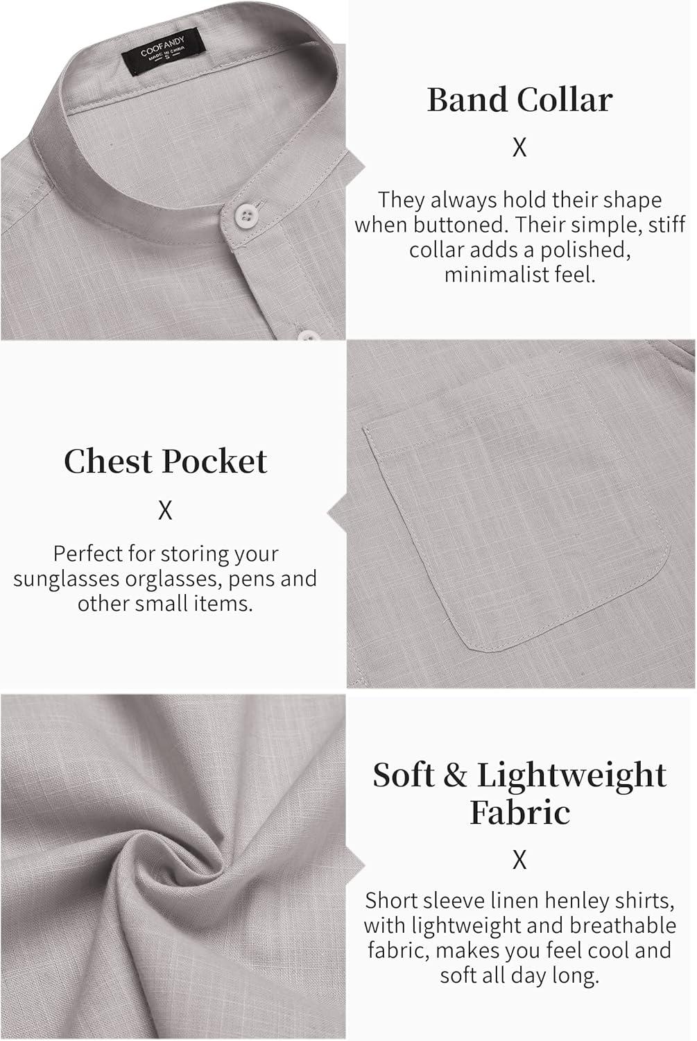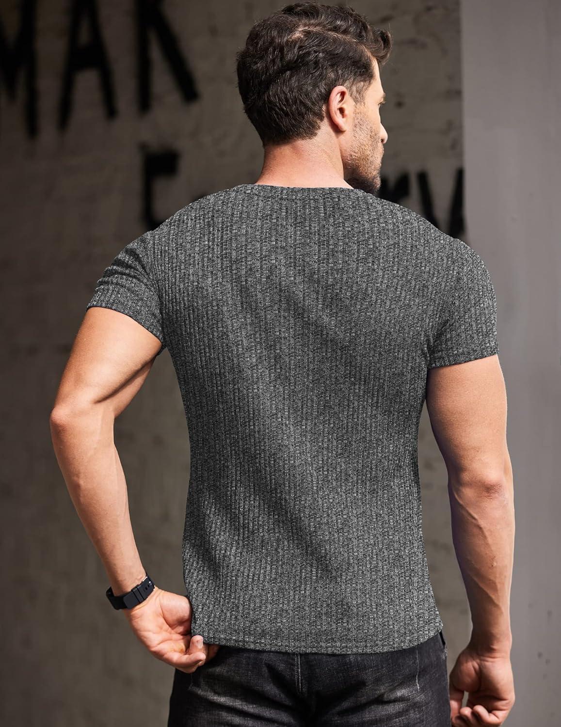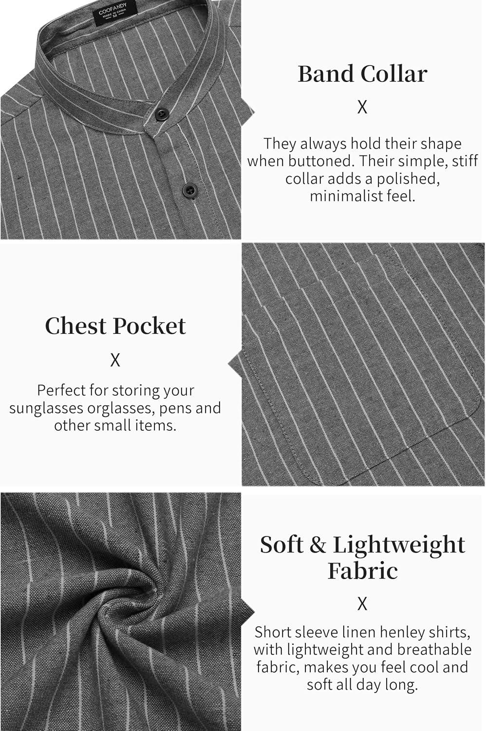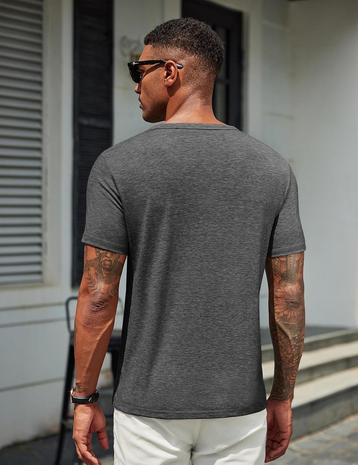 COOFANDY Men Casual Henley Tee Shirt Short Sleeve Band Collar Summer Beach Textured T-Shirt(Dark Grey)