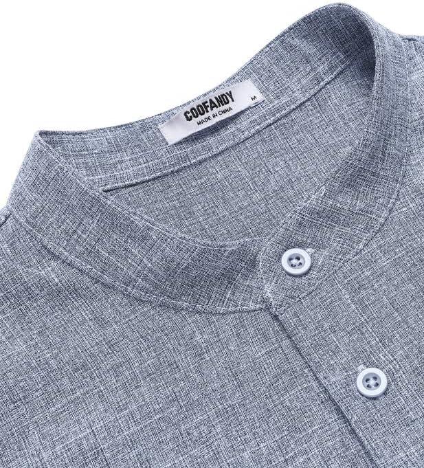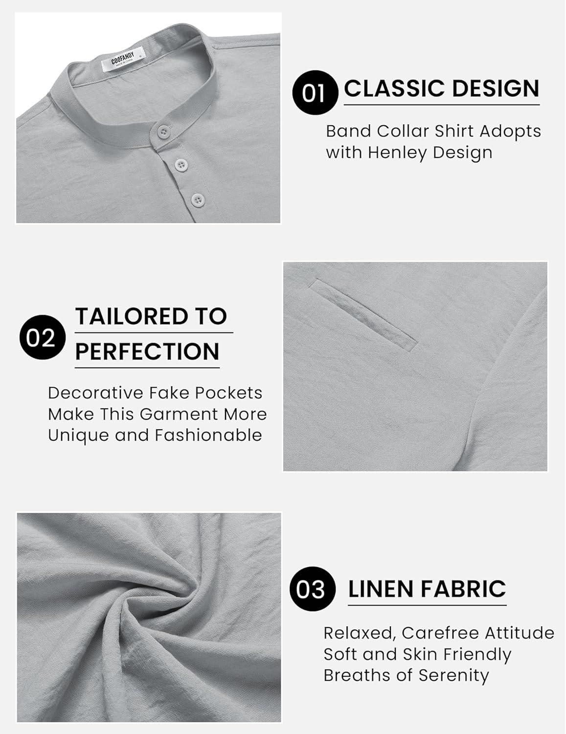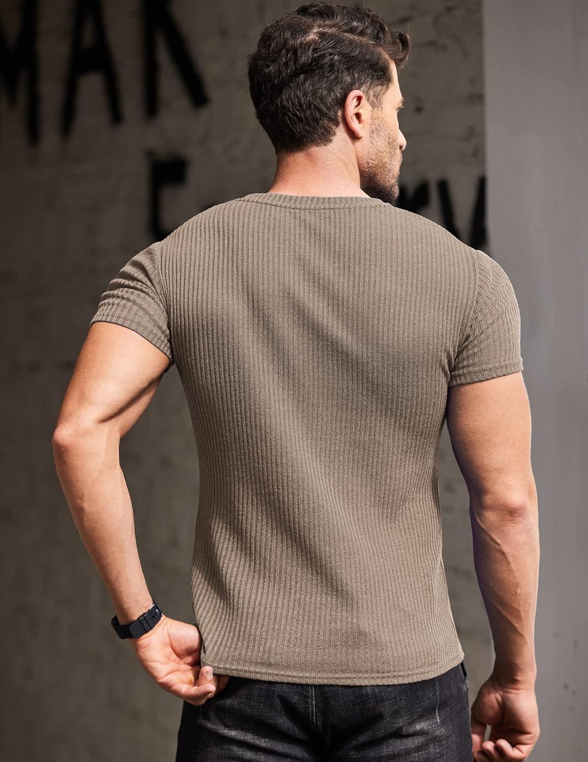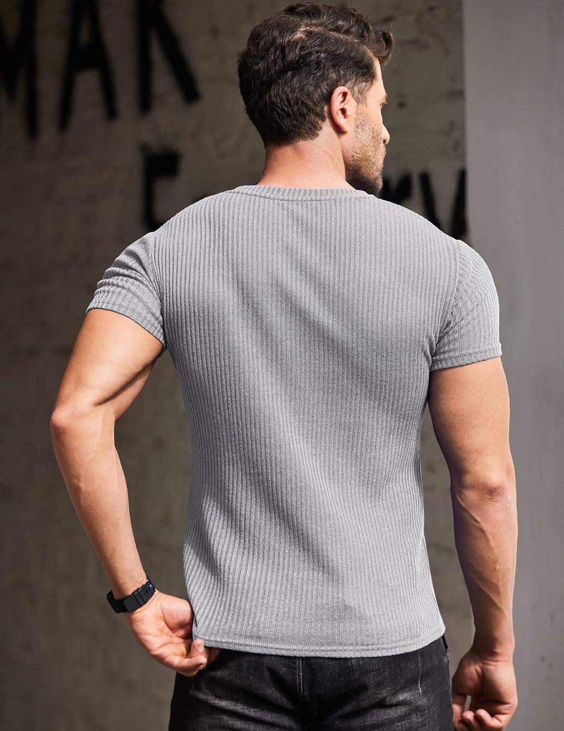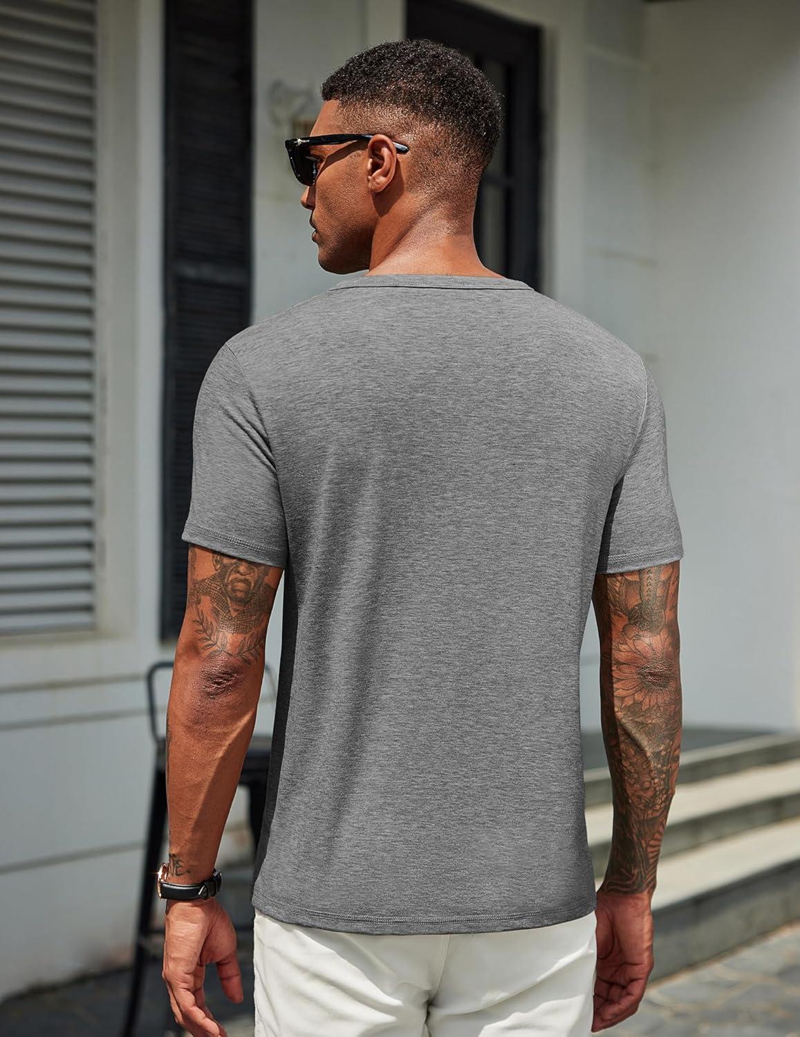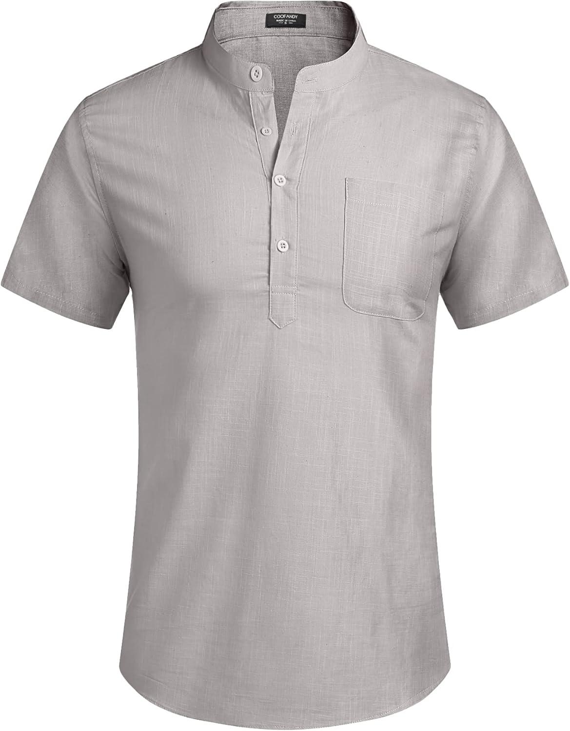 COOFANDY Men Casual Henley Tee Shirt Short Sleeve Band Collar Summer Beach Textured T-Shirt(Dark Grey)