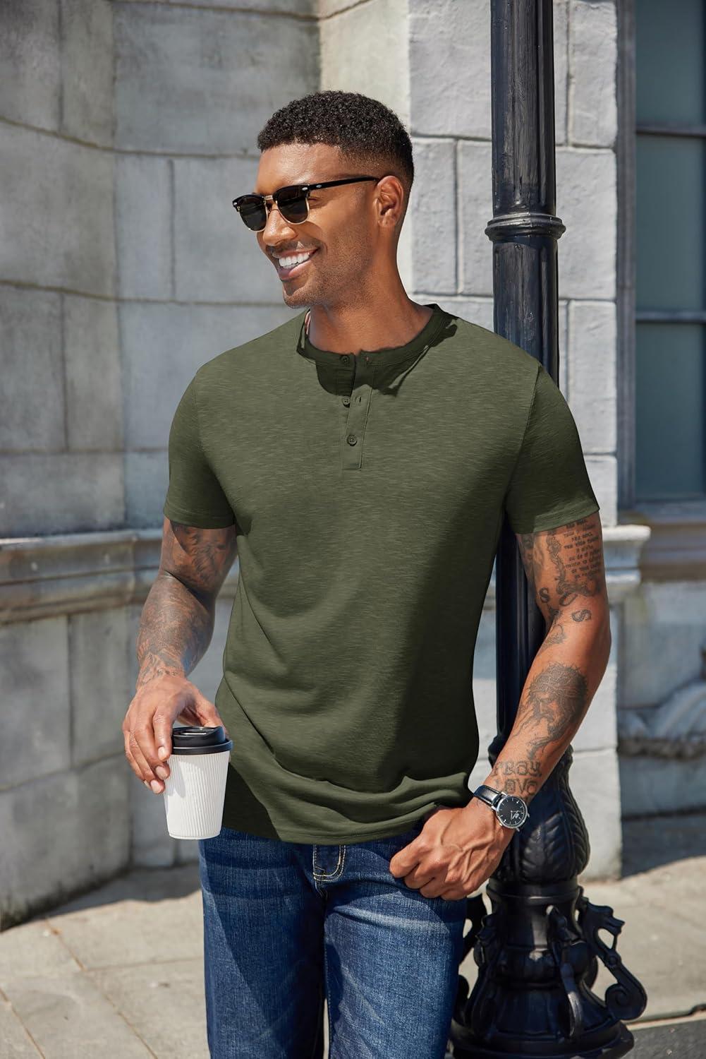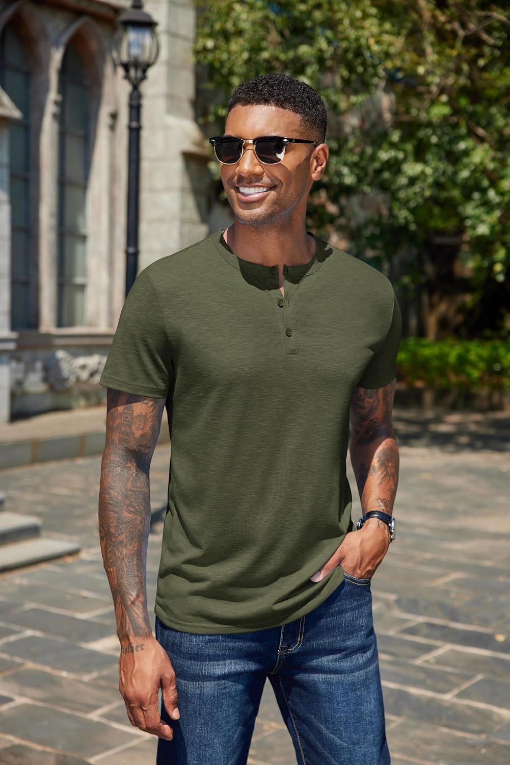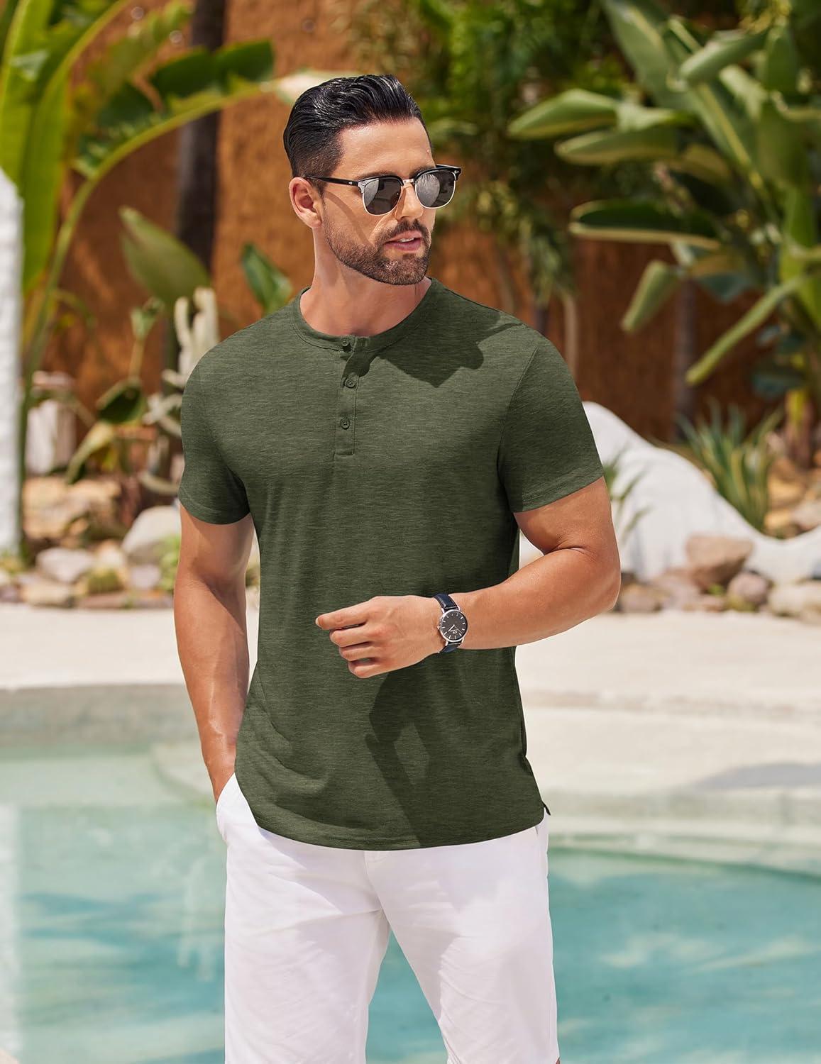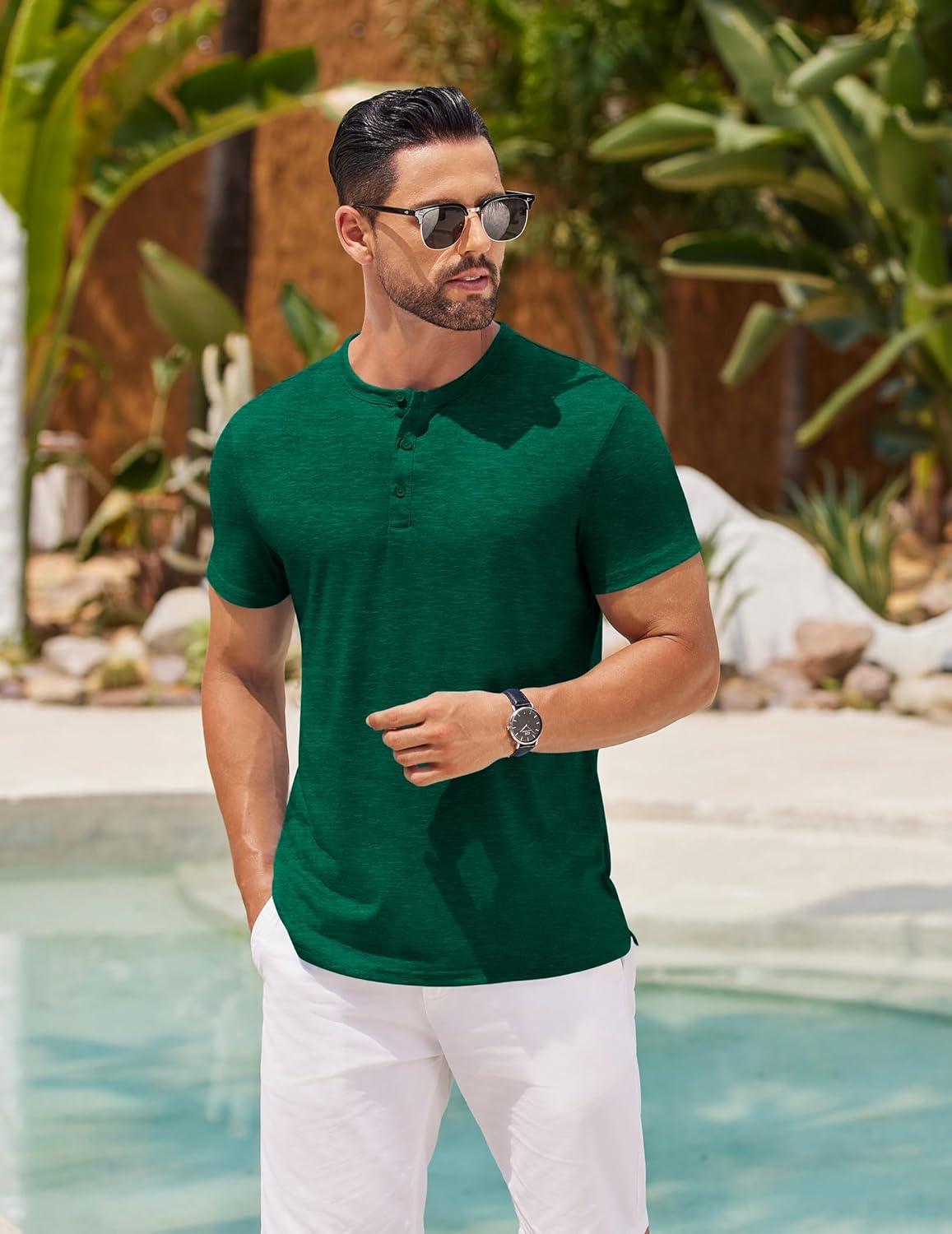 COOFANDY Mens Henley Shirts Short Sleeve Casual Button Down Shirts Lightweight Summer Basic Tee(Green)