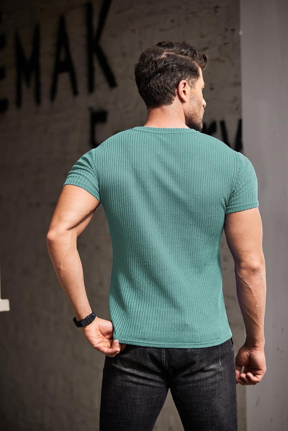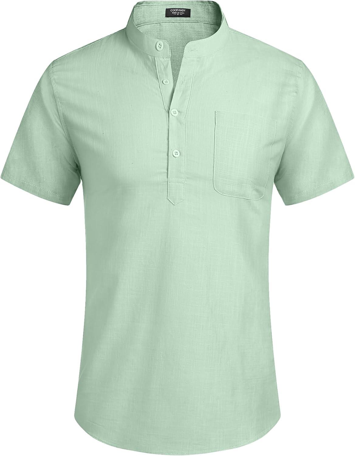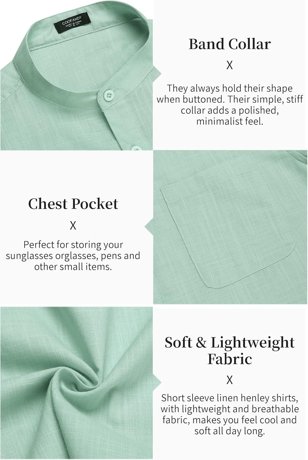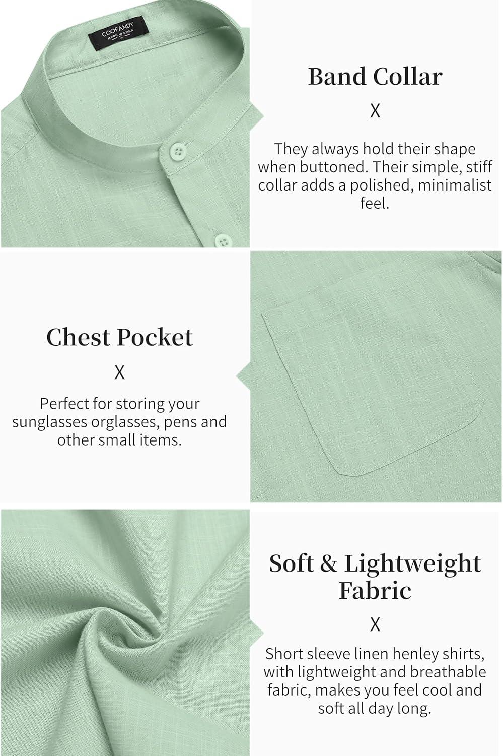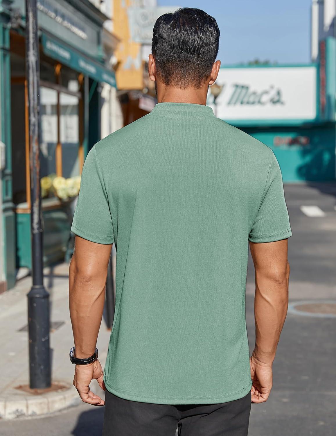 COOFANDY Mens Henley Shirts Short Sleeve Casual Button Down Shirts Lightweight Summer Basic Tee(Green)