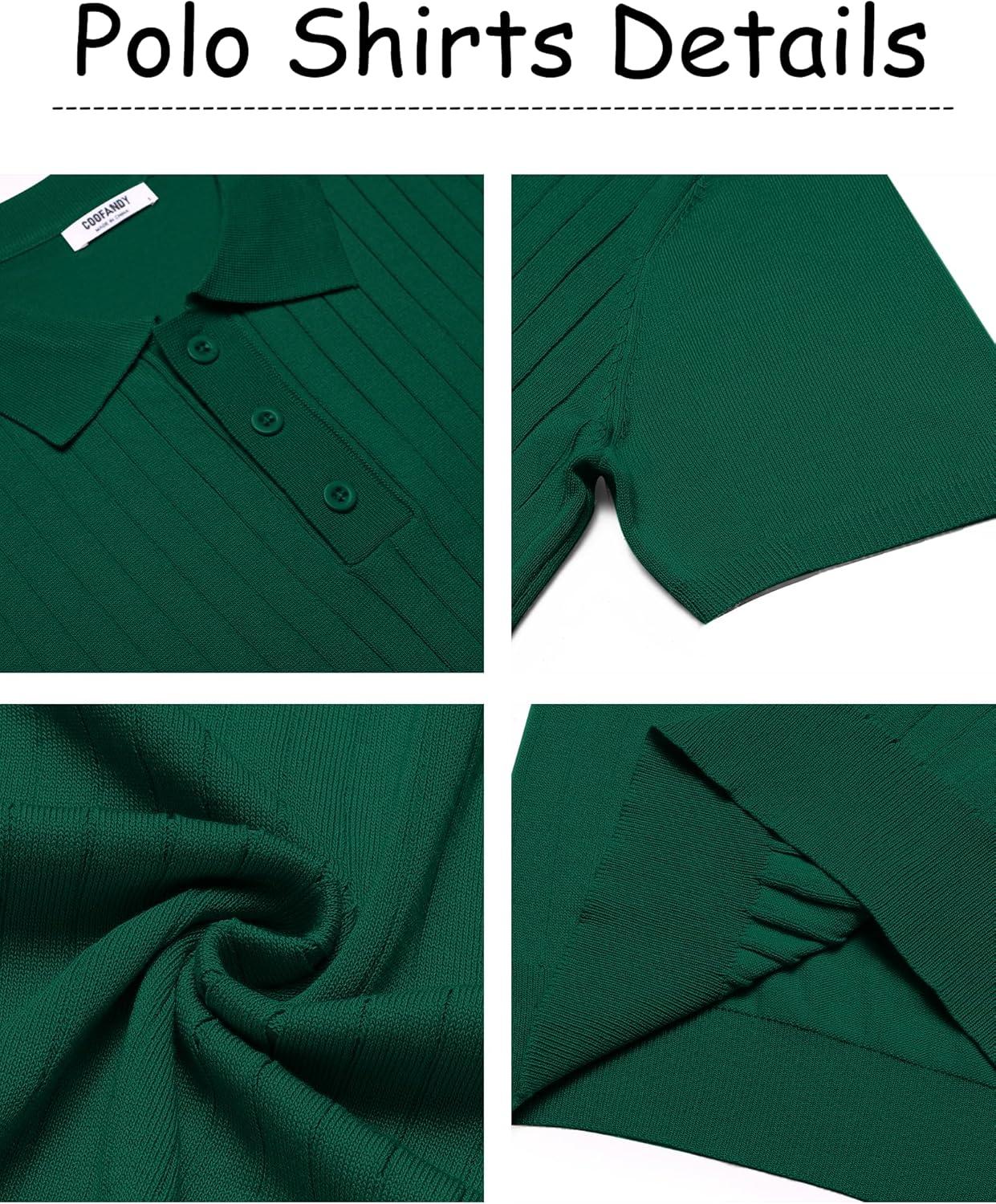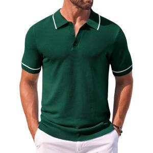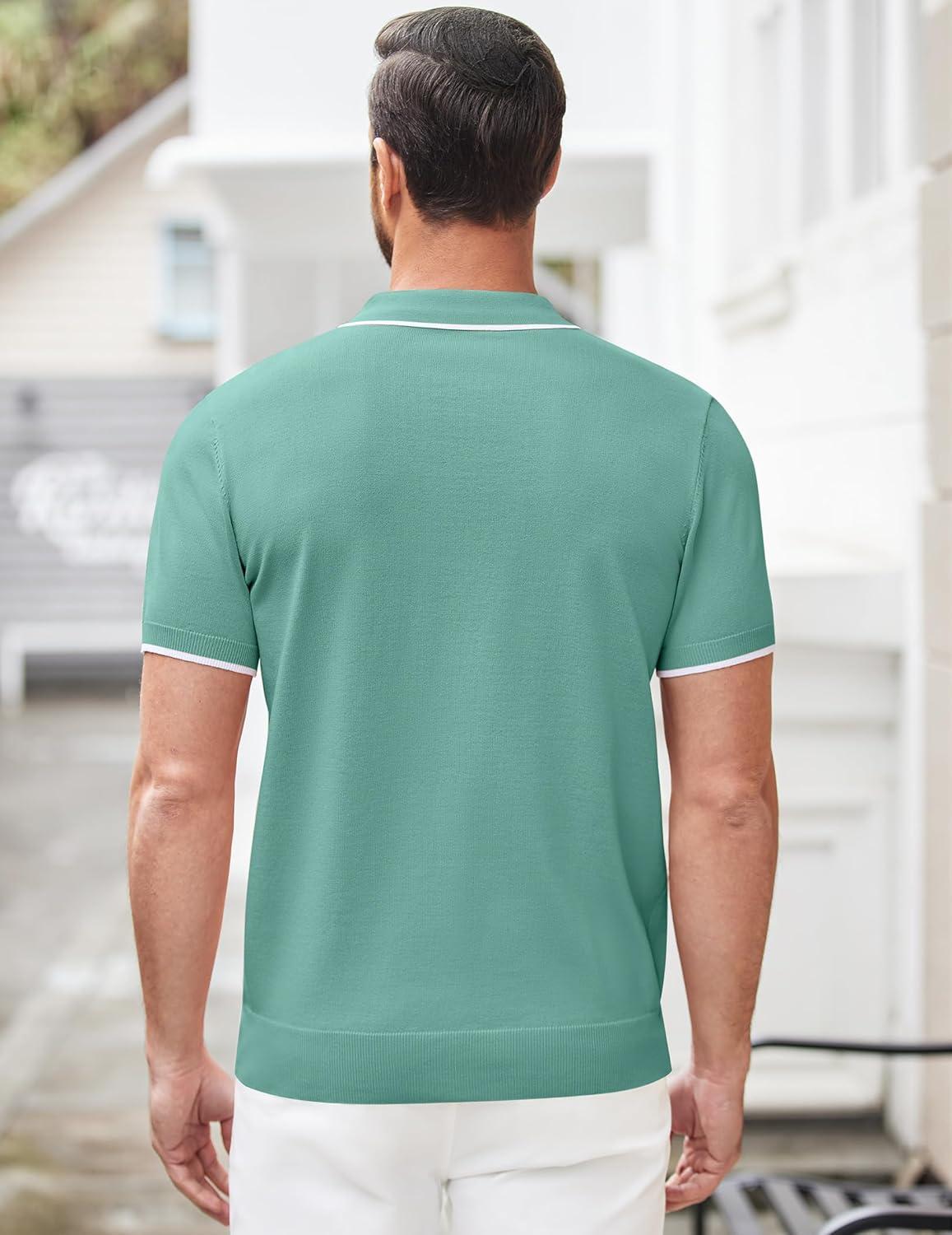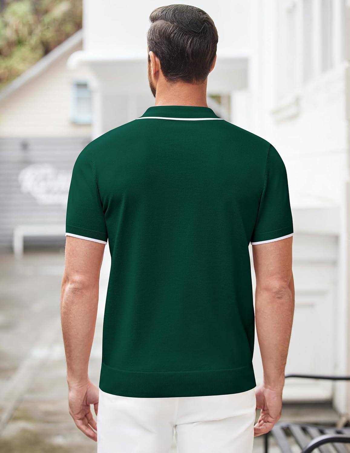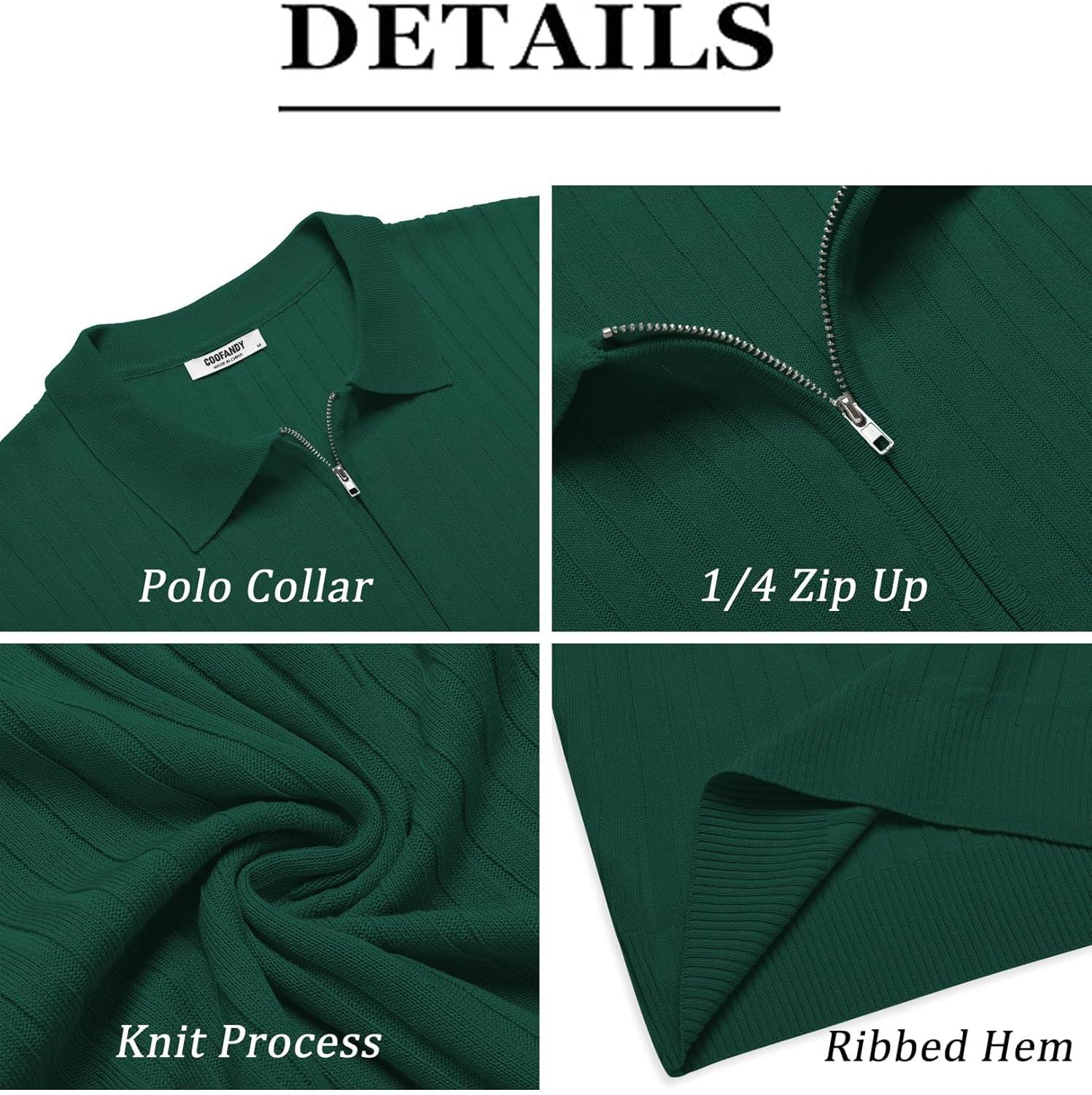 COOFANDY Men’s Zipper Polo Shirt Casual Knit Short Sleeve Polo T Shirt Classic Fit Shirts(Solid- Green)