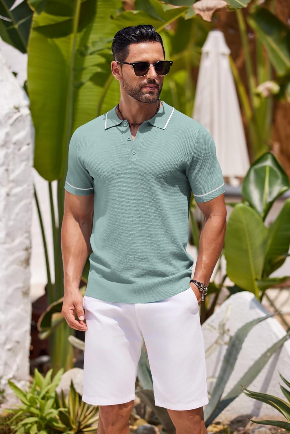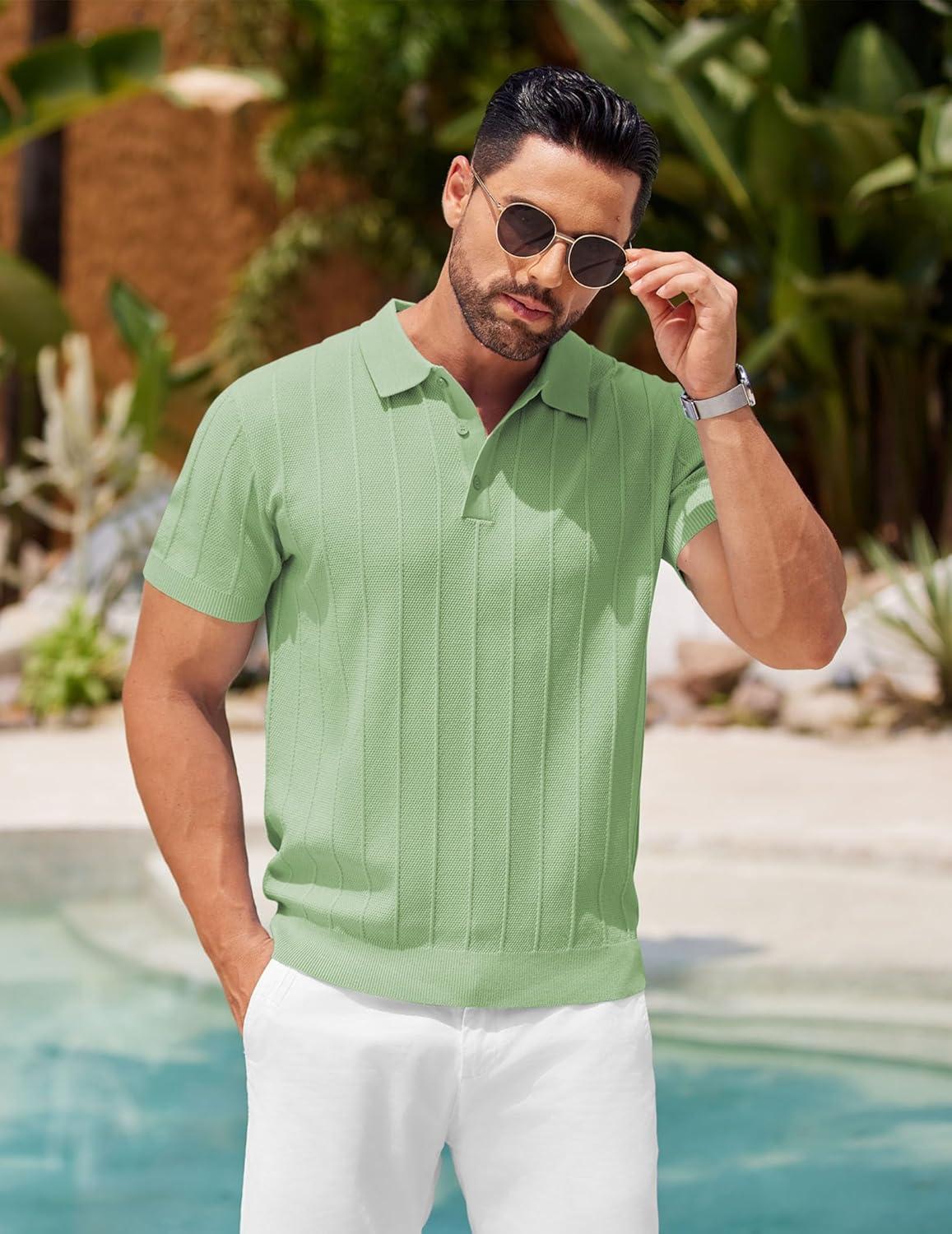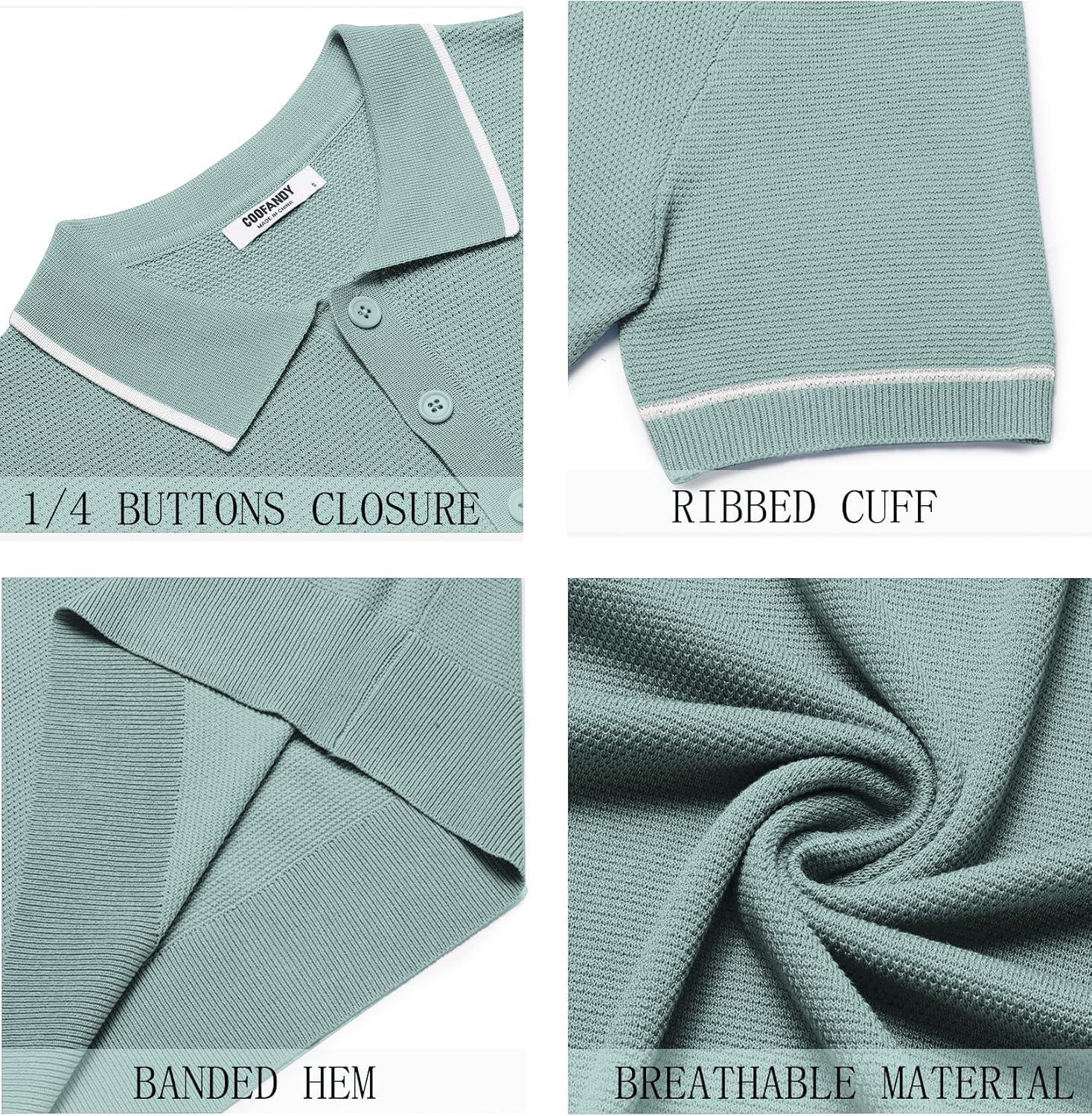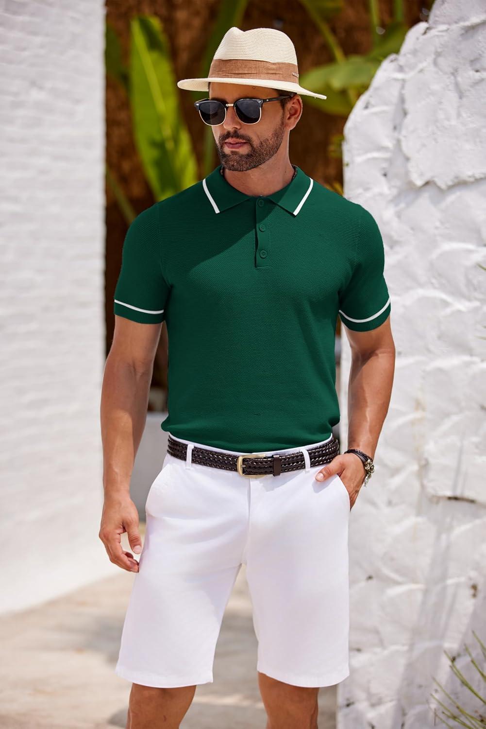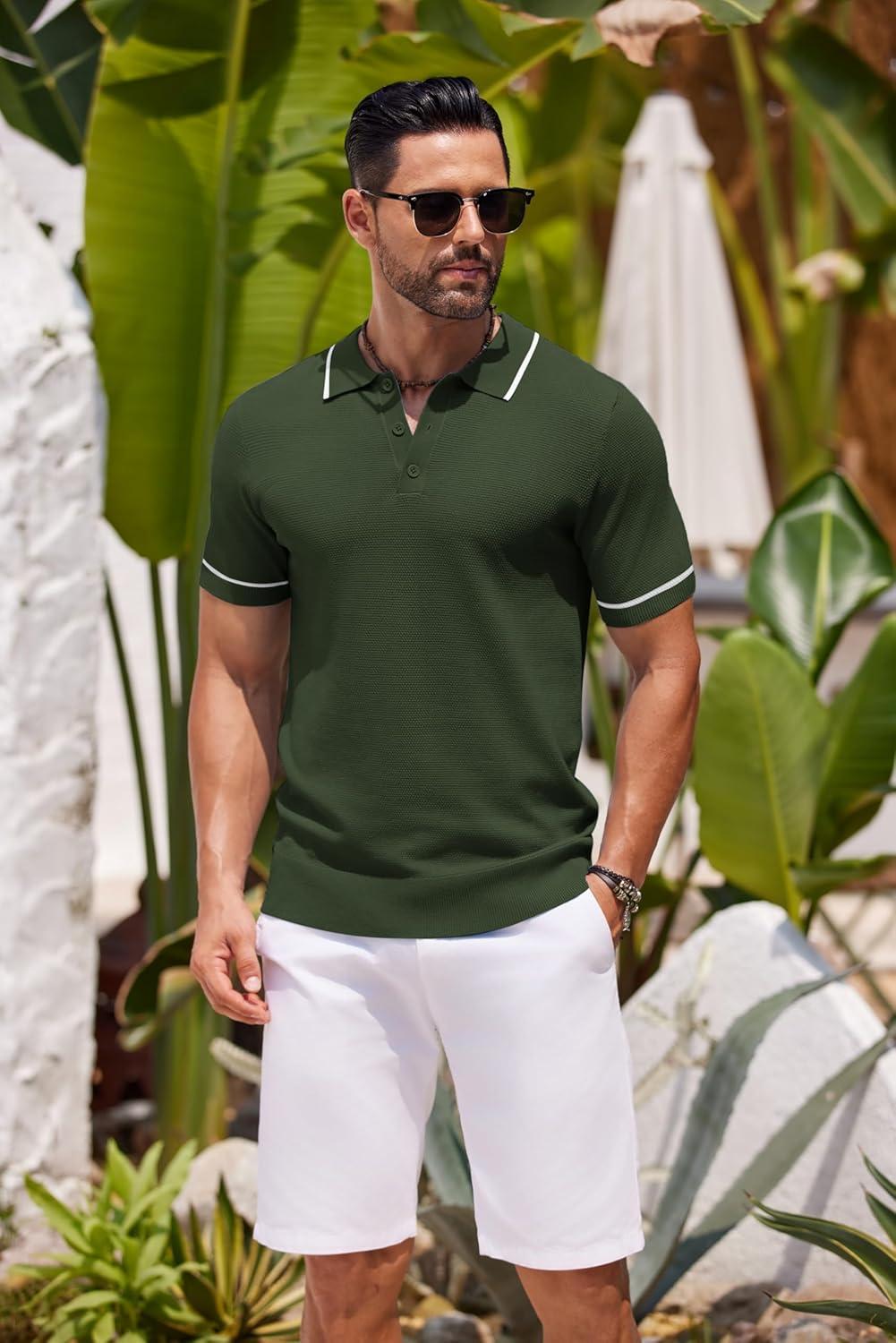 COOFANDY Men’s Zipper Polo Shirt Casual Knit Short Sleeve Polo T Shirt Classic Fit Shirts(Solid- Green)