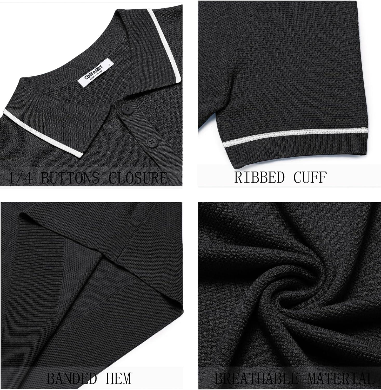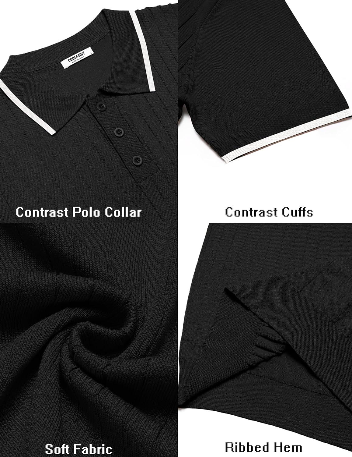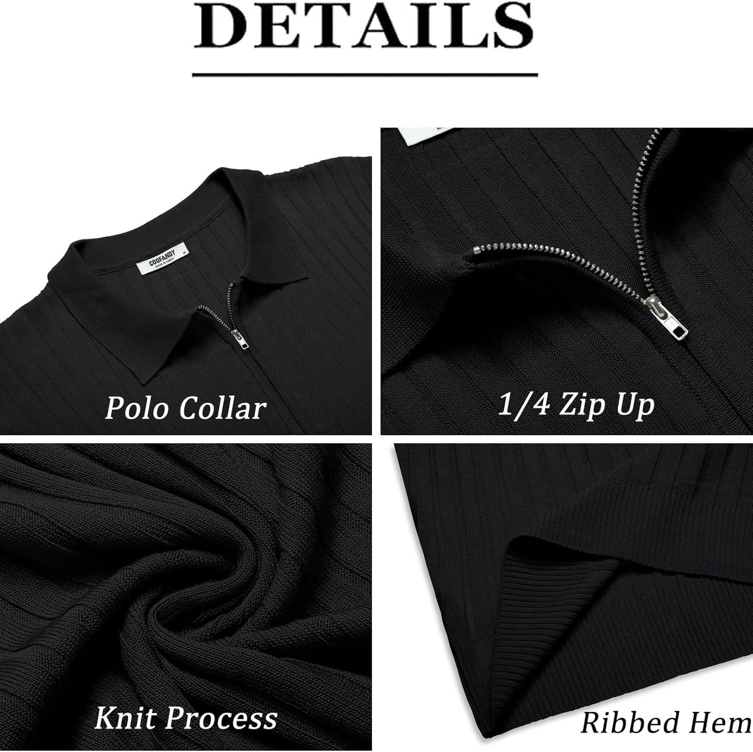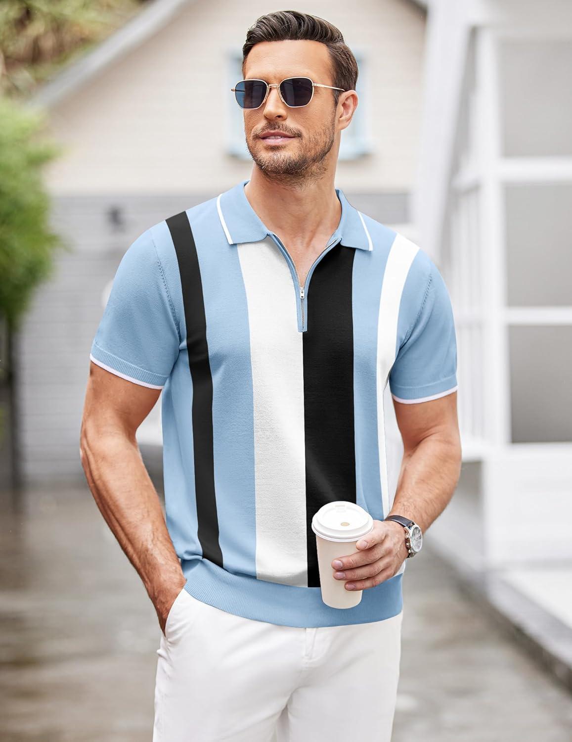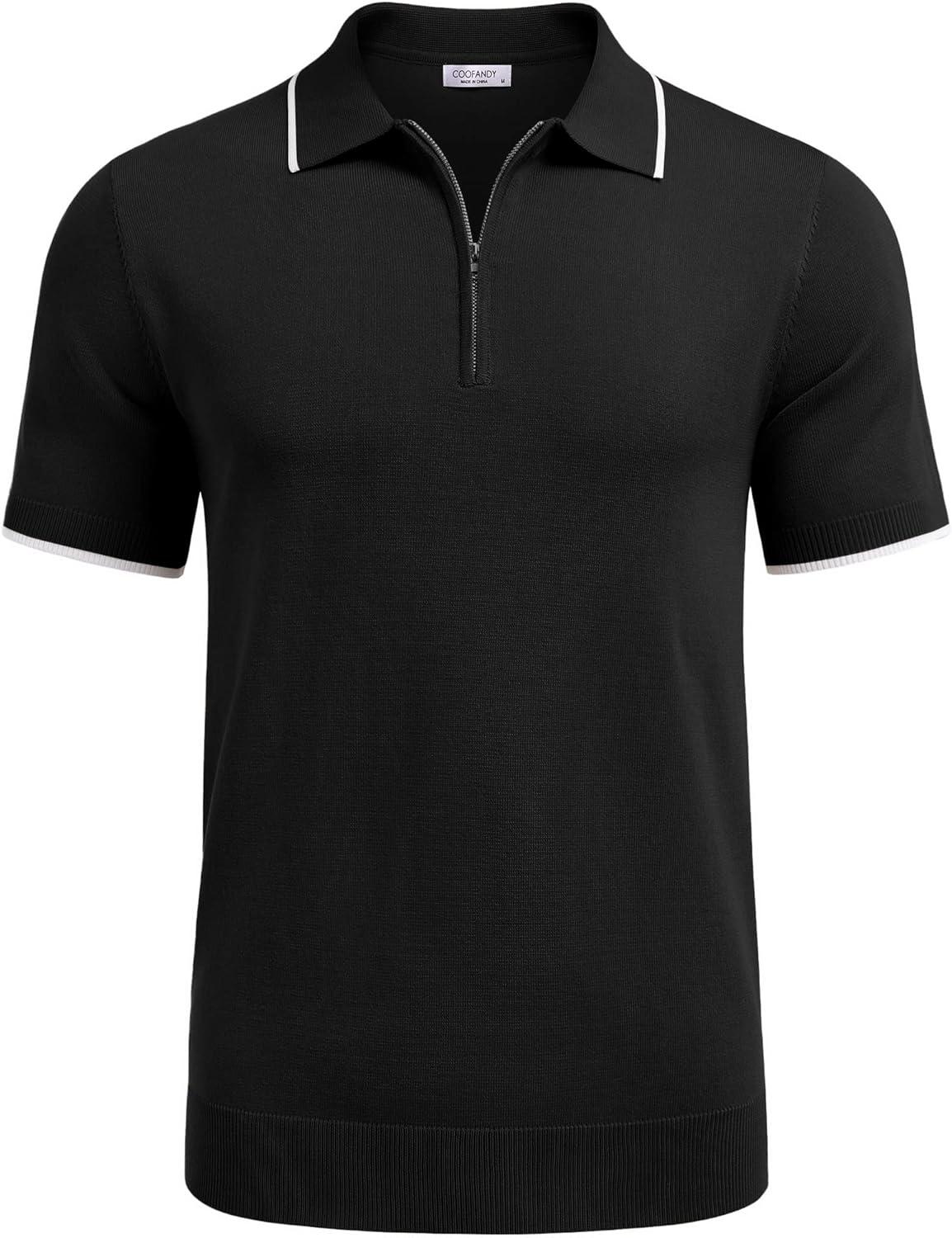 COOFANDY Men’s Zipper Polo Shirt Casual Knit Short Sleeve Polo T Shirt Classic Fit Shirts(Striped Black Striped)