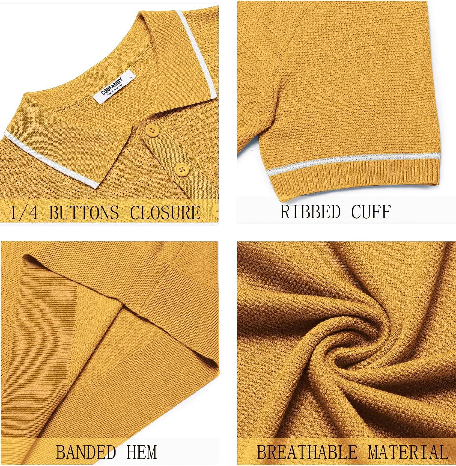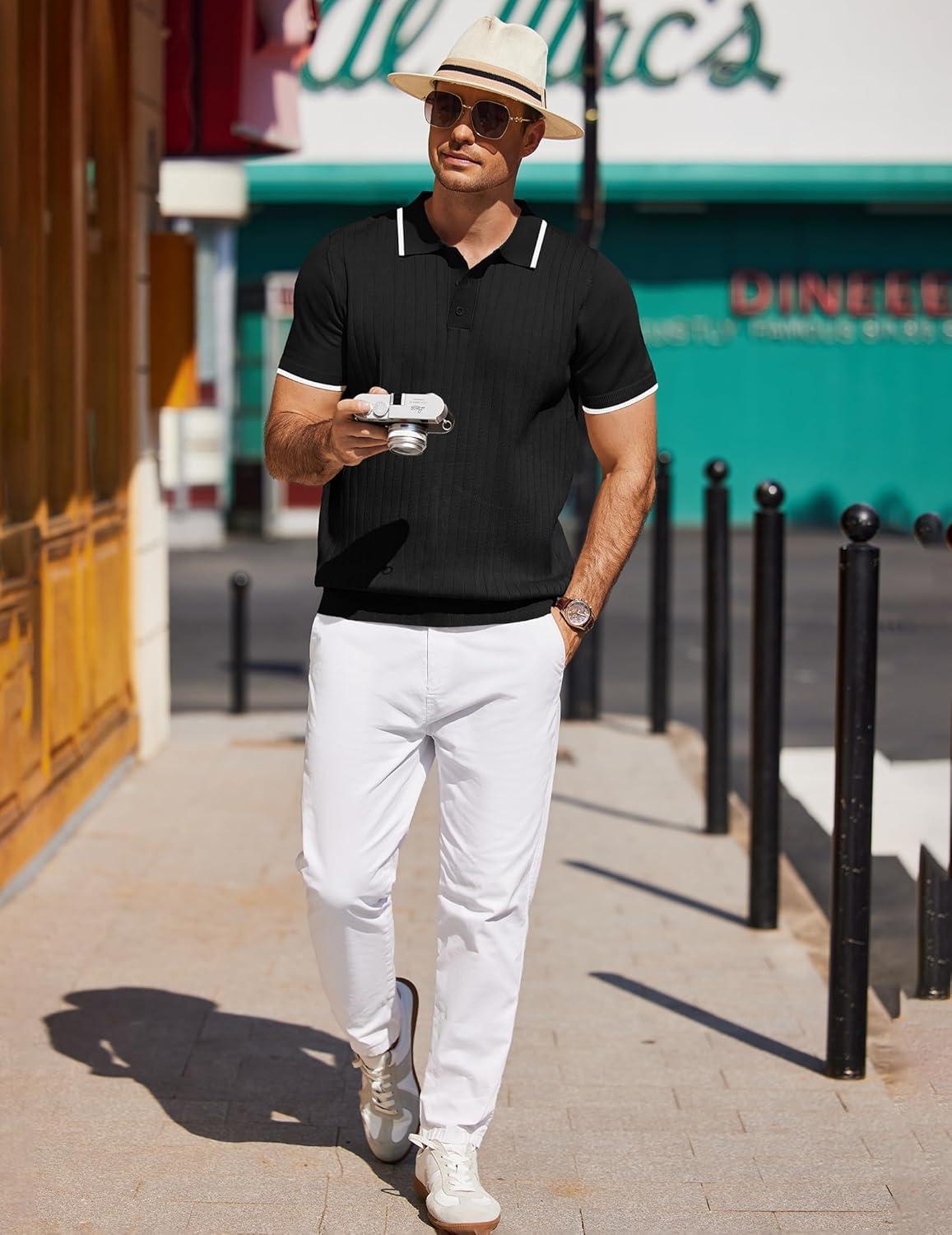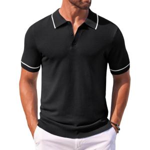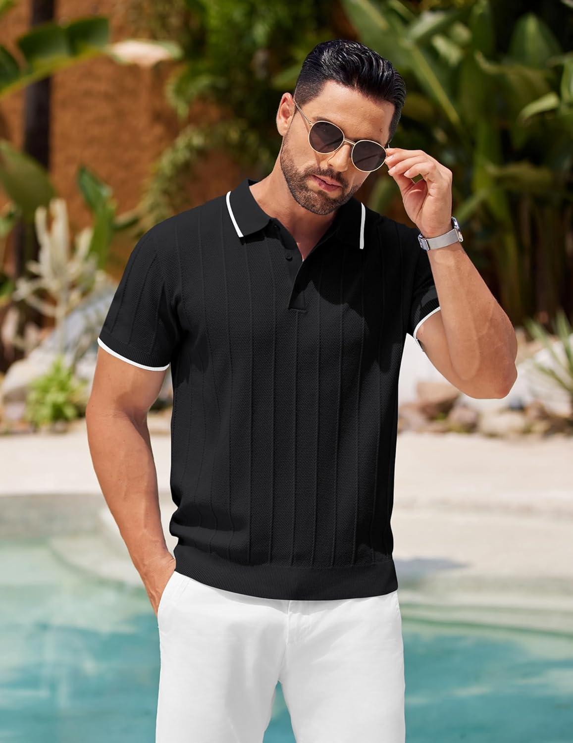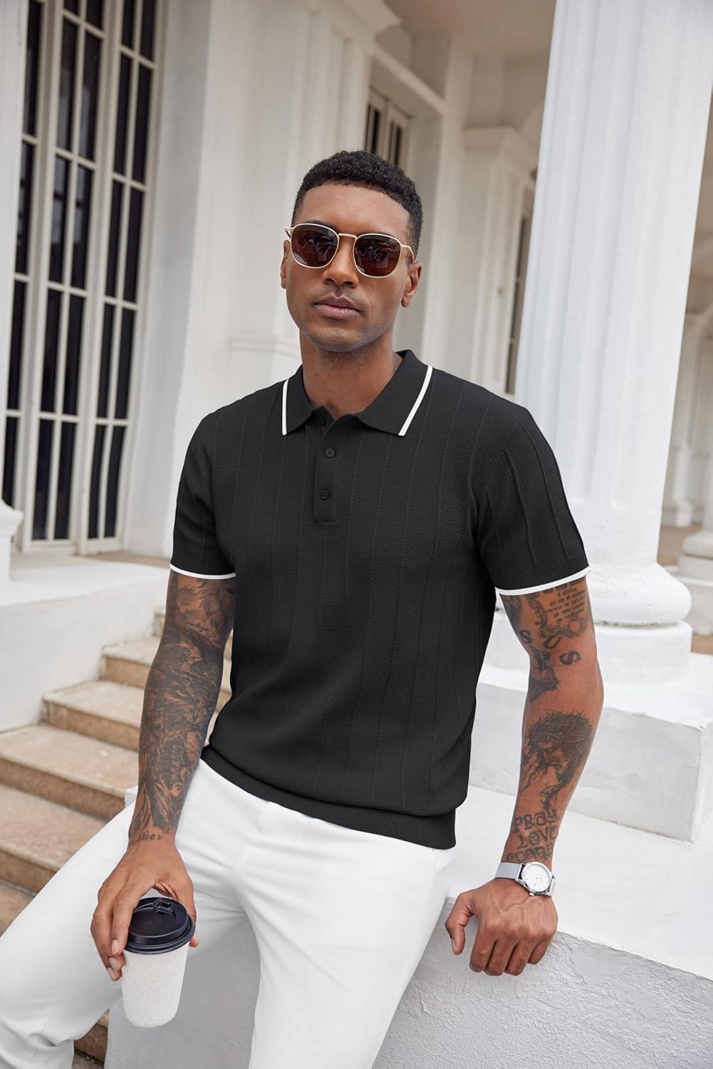 COOFANDY Men’s Zipper Polo Shirt Casual Knit Short Sleeve Polo T Shirt Classic Fit Shirts(Striped Black Striped)