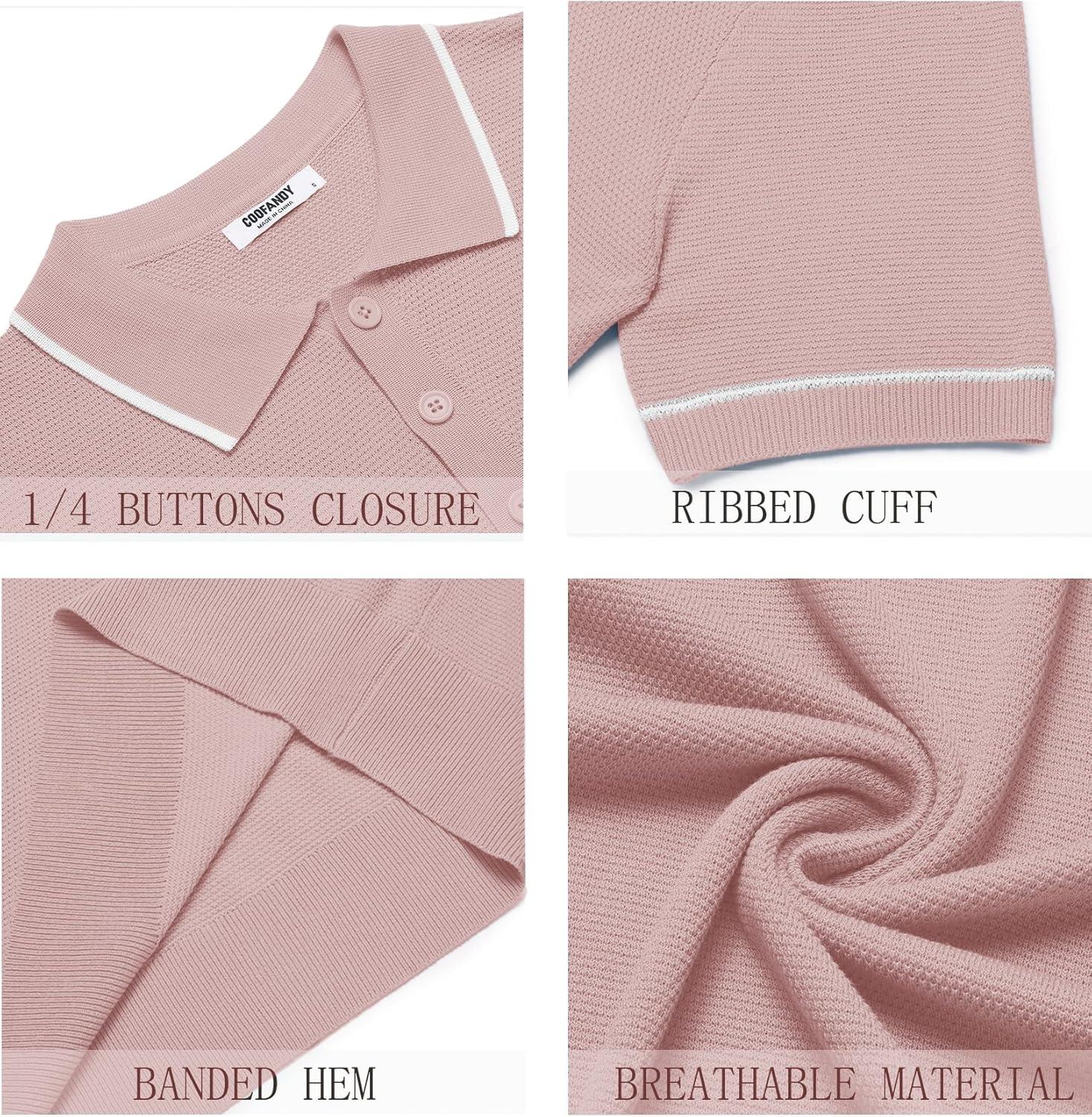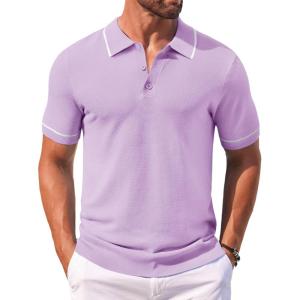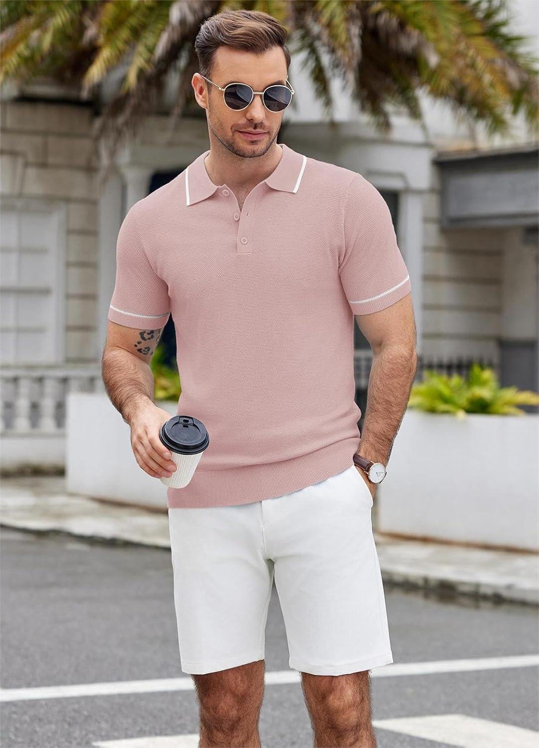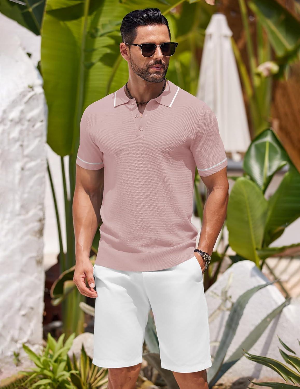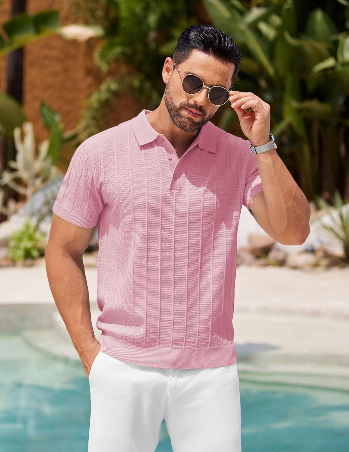 COOFANDY Men’s Zipper Polo Shirt Casual Knit Short Sleeve Polo T Shirt Classic Fit Shirts(Pink)