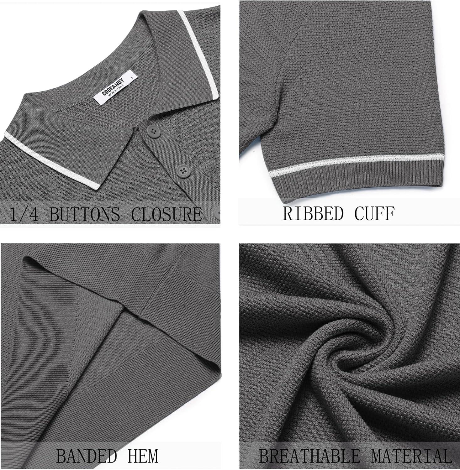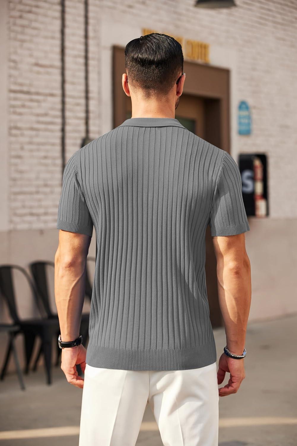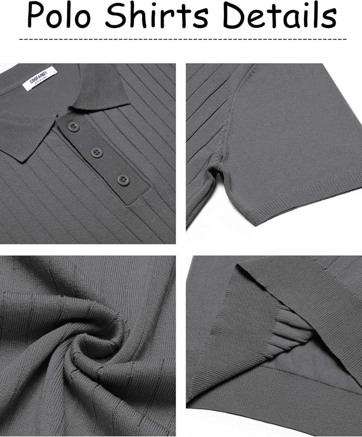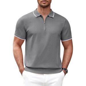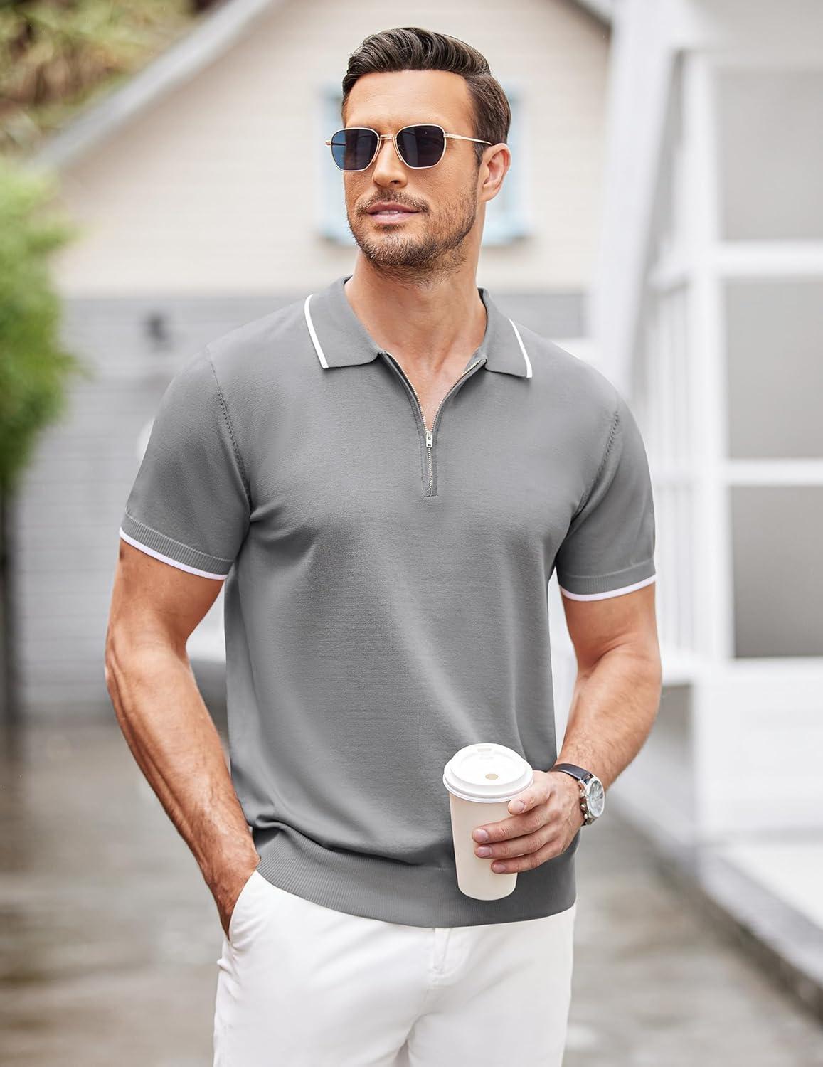 COOFANDY Men’s Zipper Polo Shirts Short Sleeve Ribbed Knit Polo T Shirts Fashion Casual Golf Shirts(Grey)