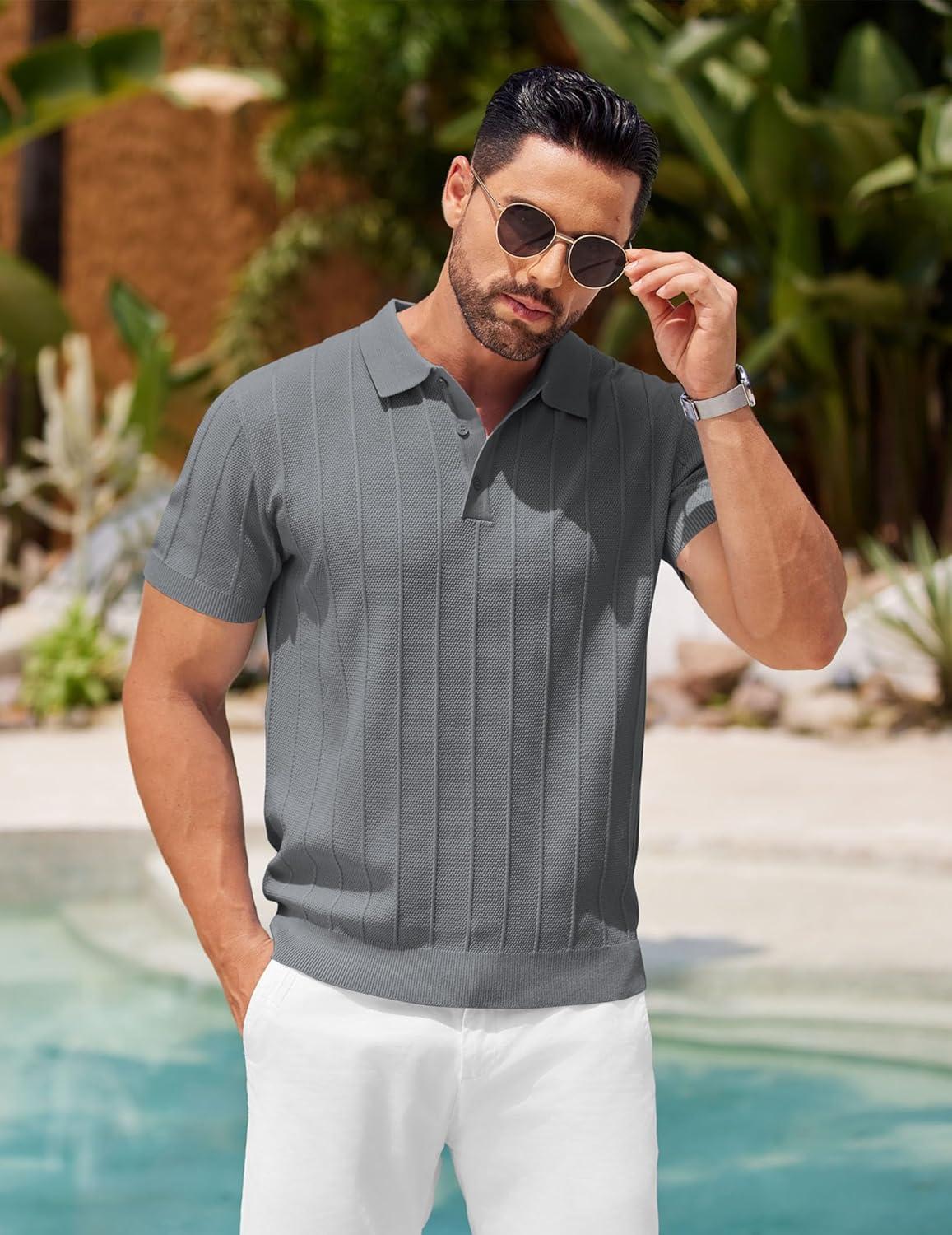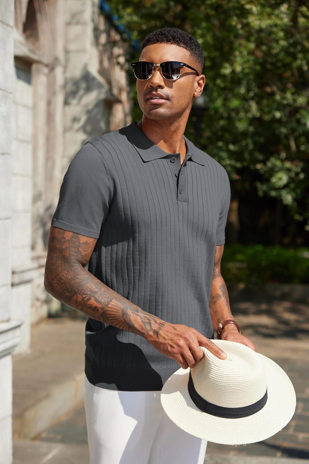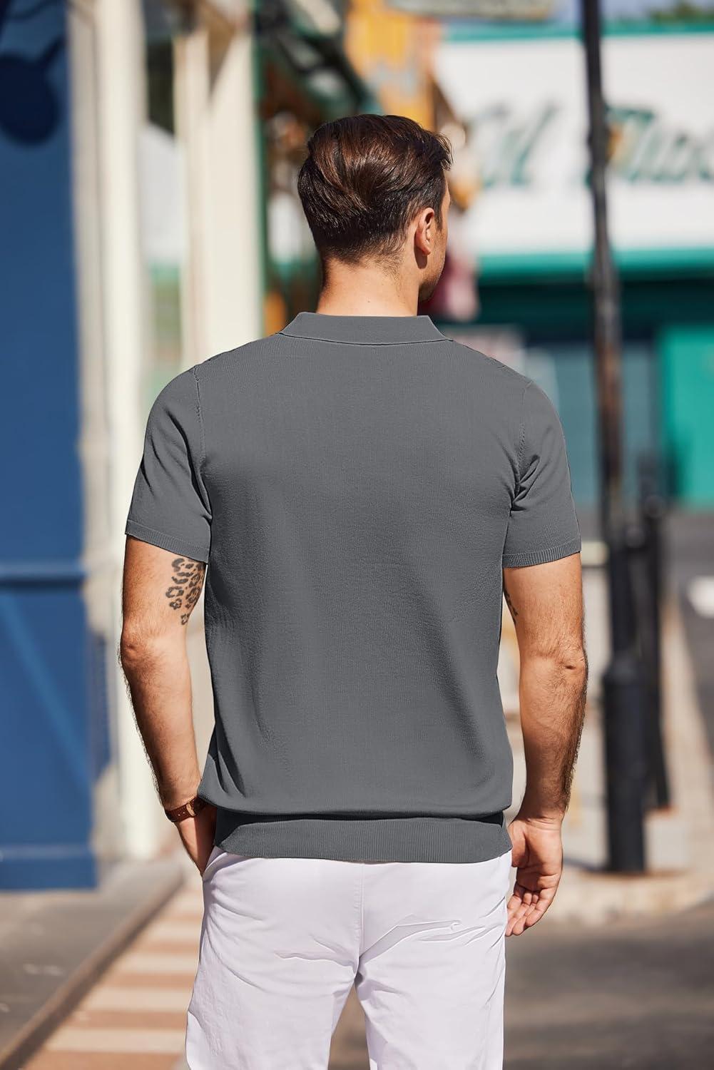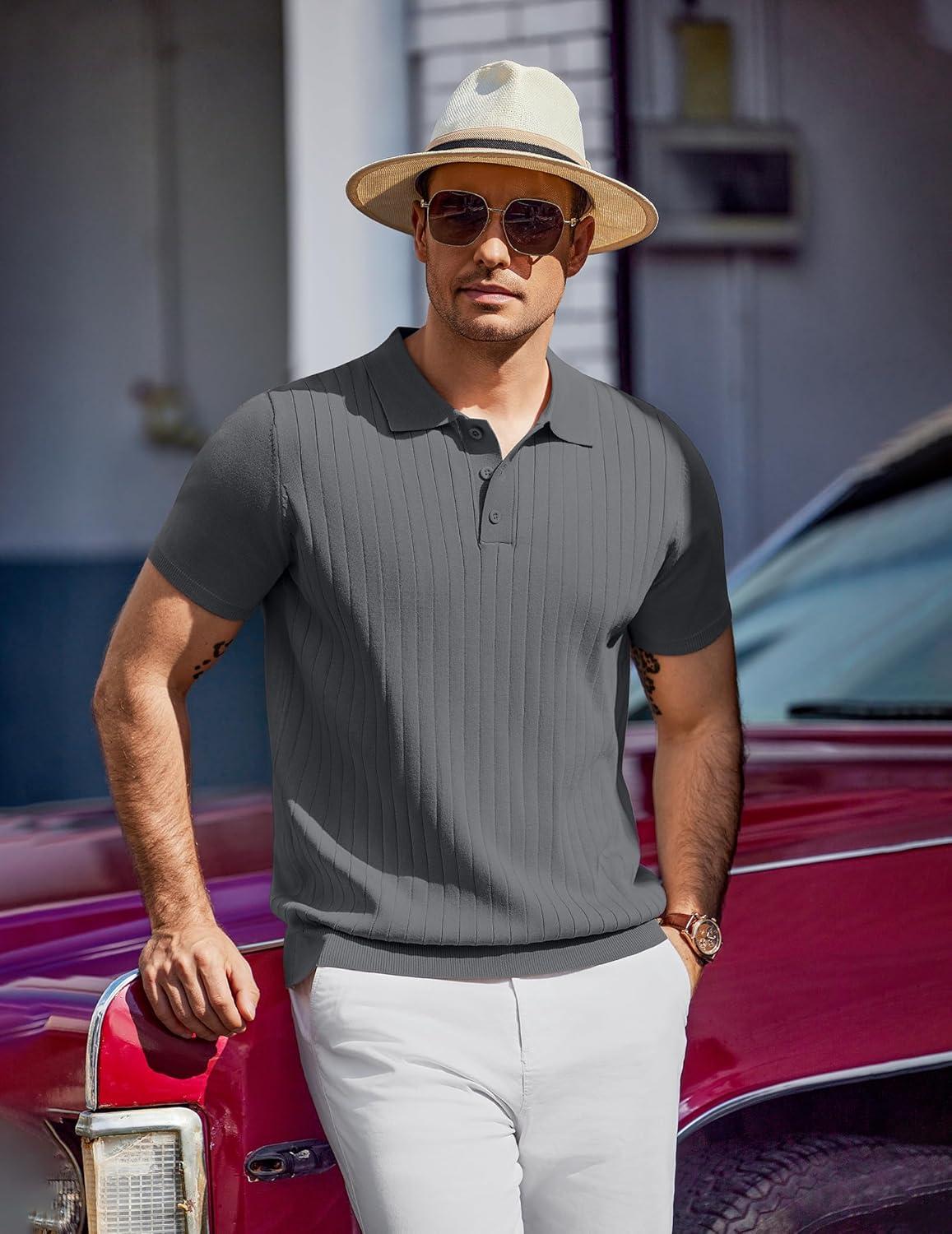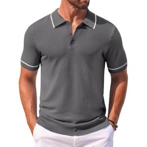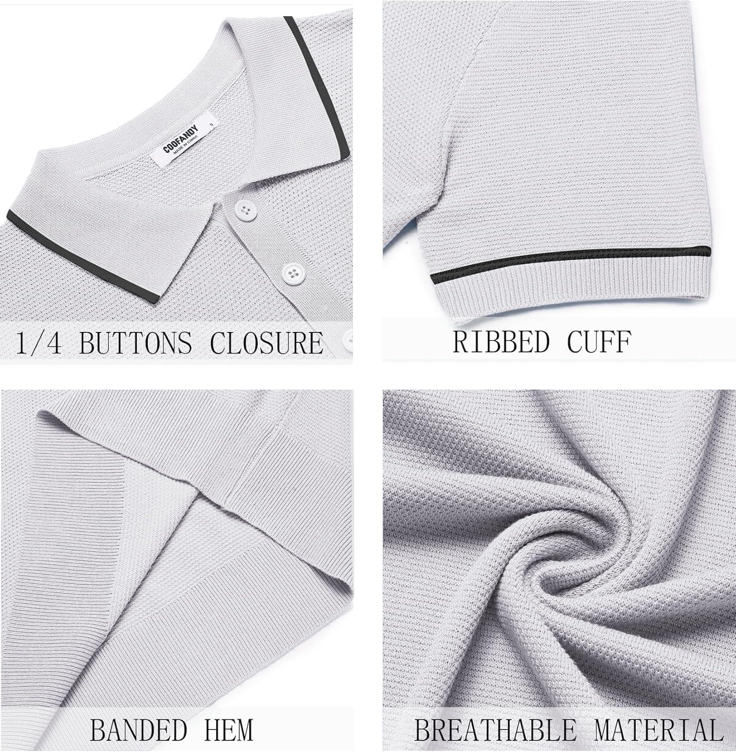 COOFANDY Men’s Zipper Polo Shirts Short Sleeve Ribbed Knit Polo T Shirts Fashion Casual Golf Shirts(Grey)