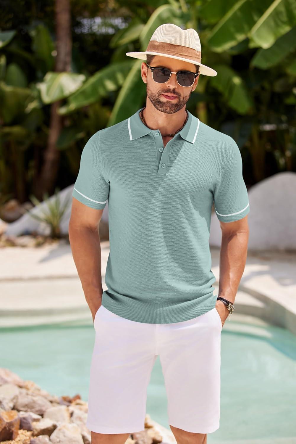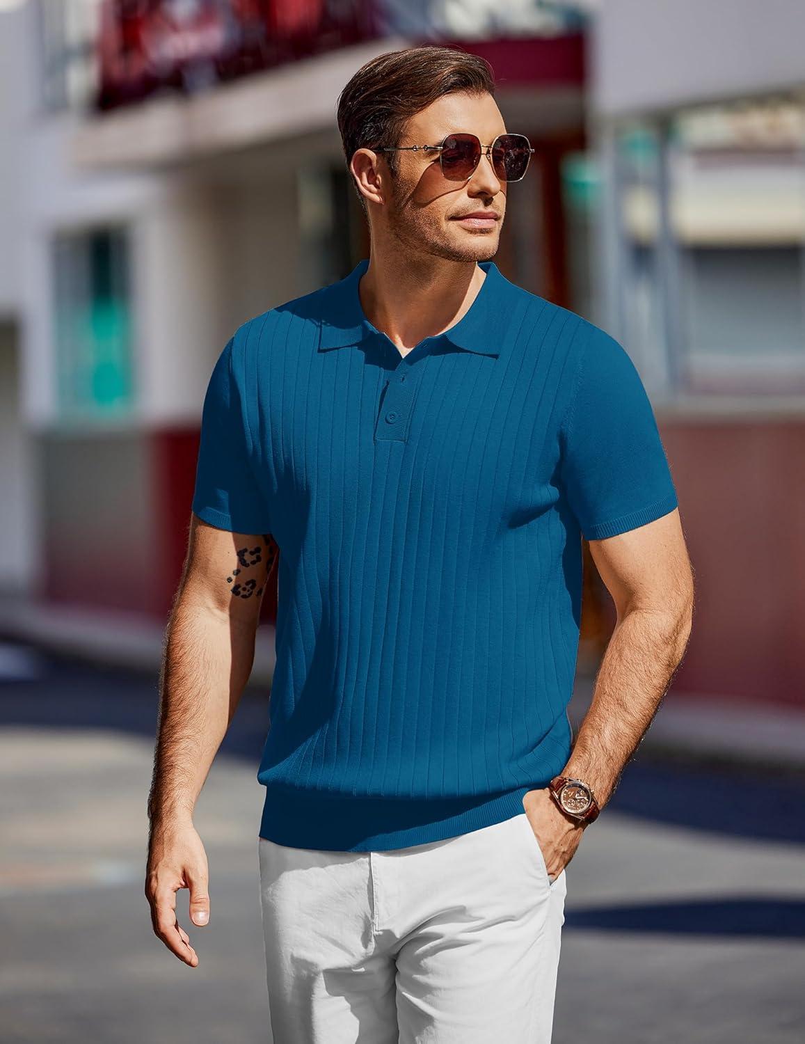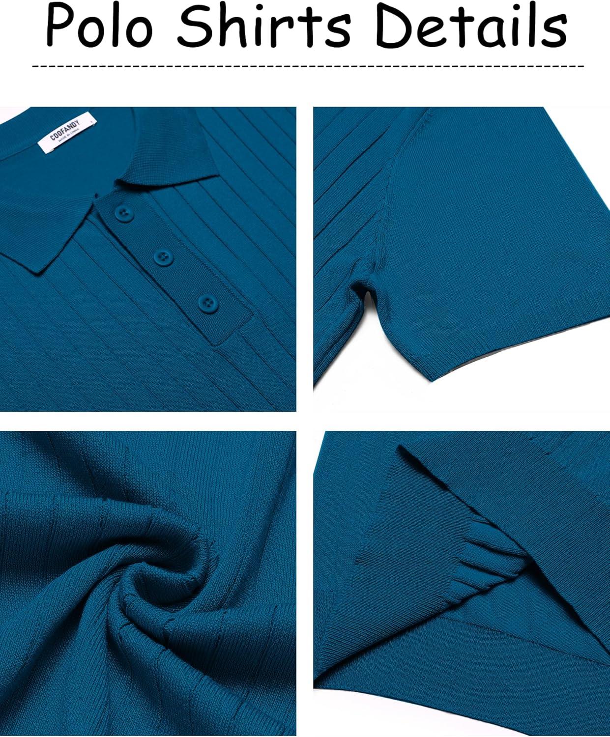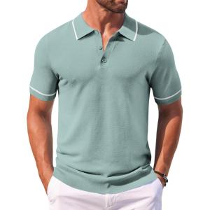 COOFANDY Men’s Zipper Polo Shirt Casual Knit Short Sleeve Polo T Shirt Classic Fit Shirts(Turquoise)