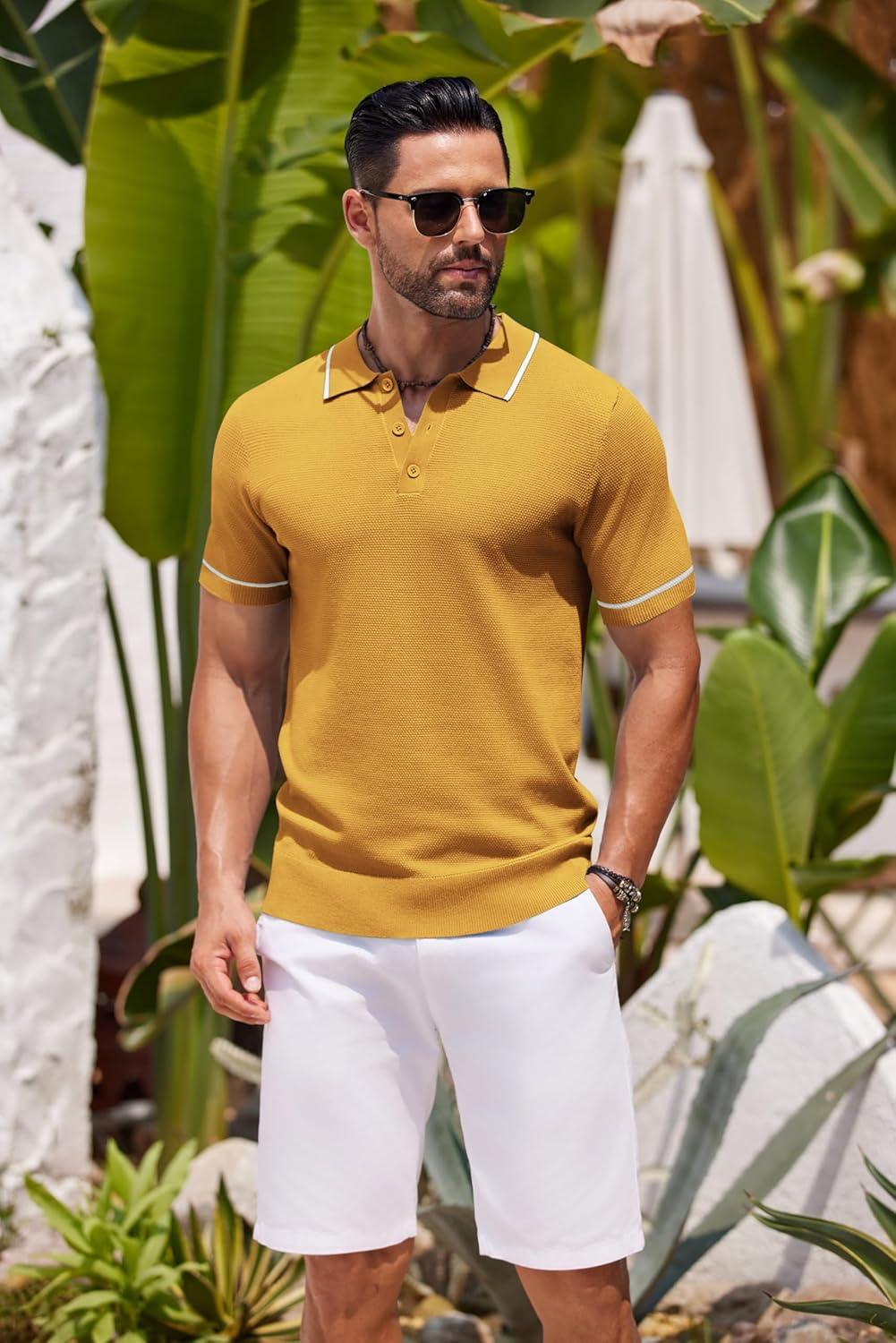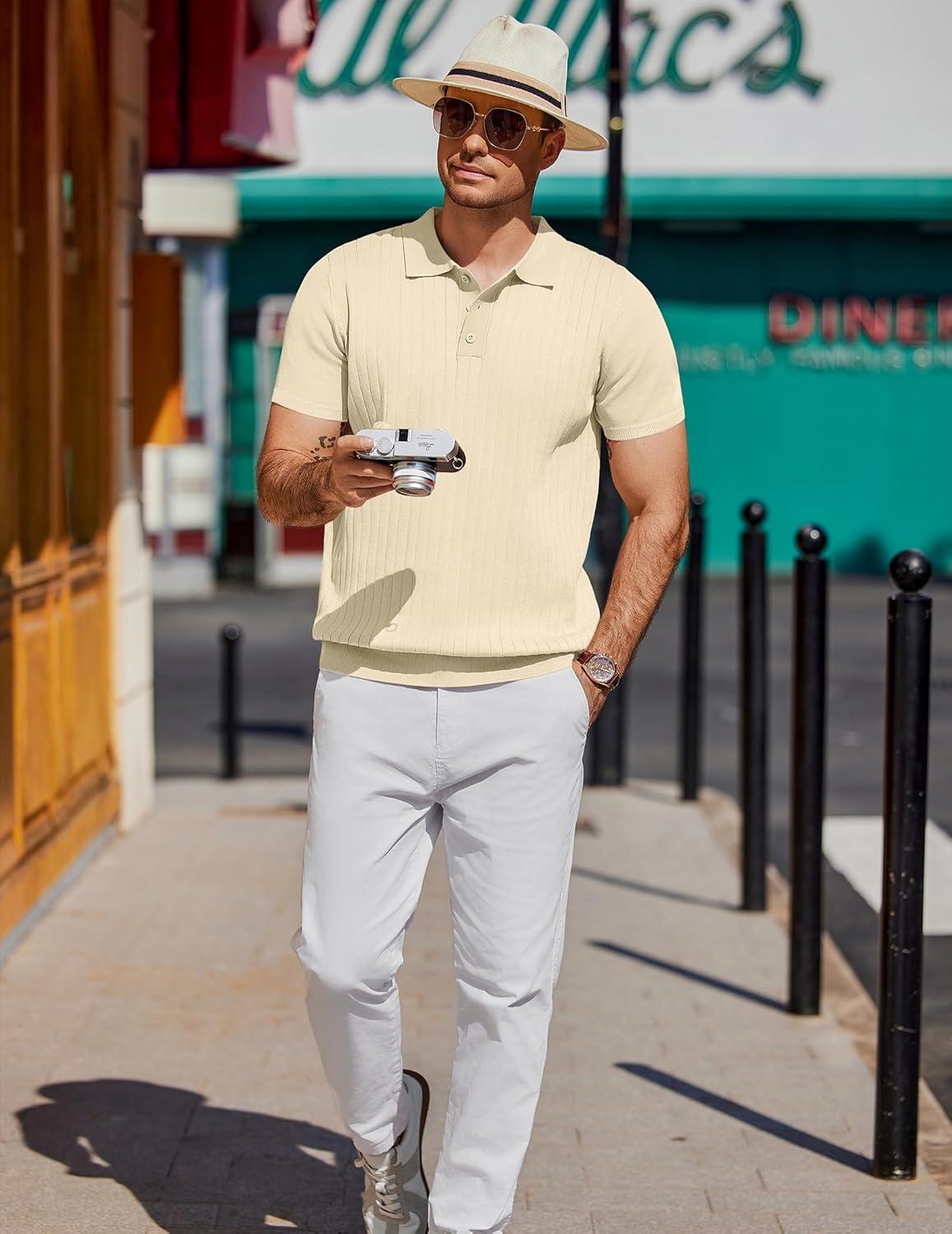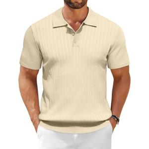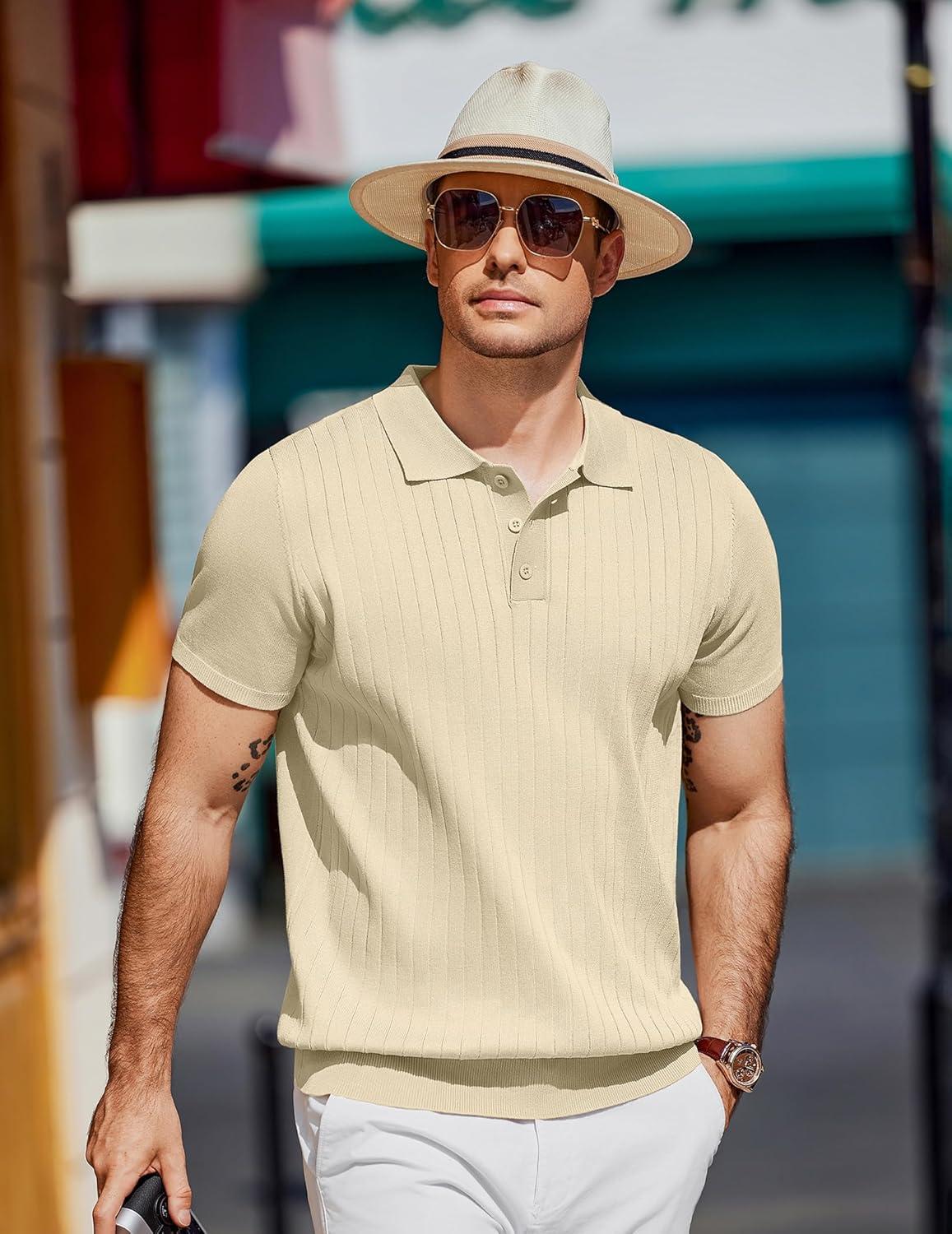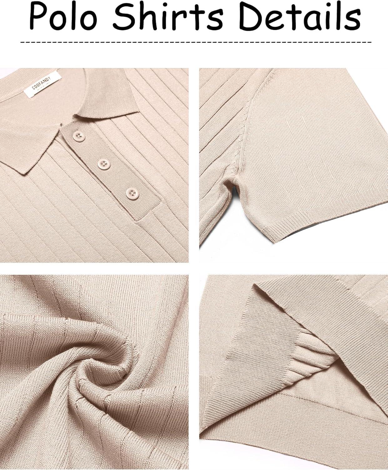 COOFANDY Men’s Zipper Polo Shirt Casual Knit Short Sleeve Polo T Shirt Classic Fit Shirts(Solid- Light Tan)