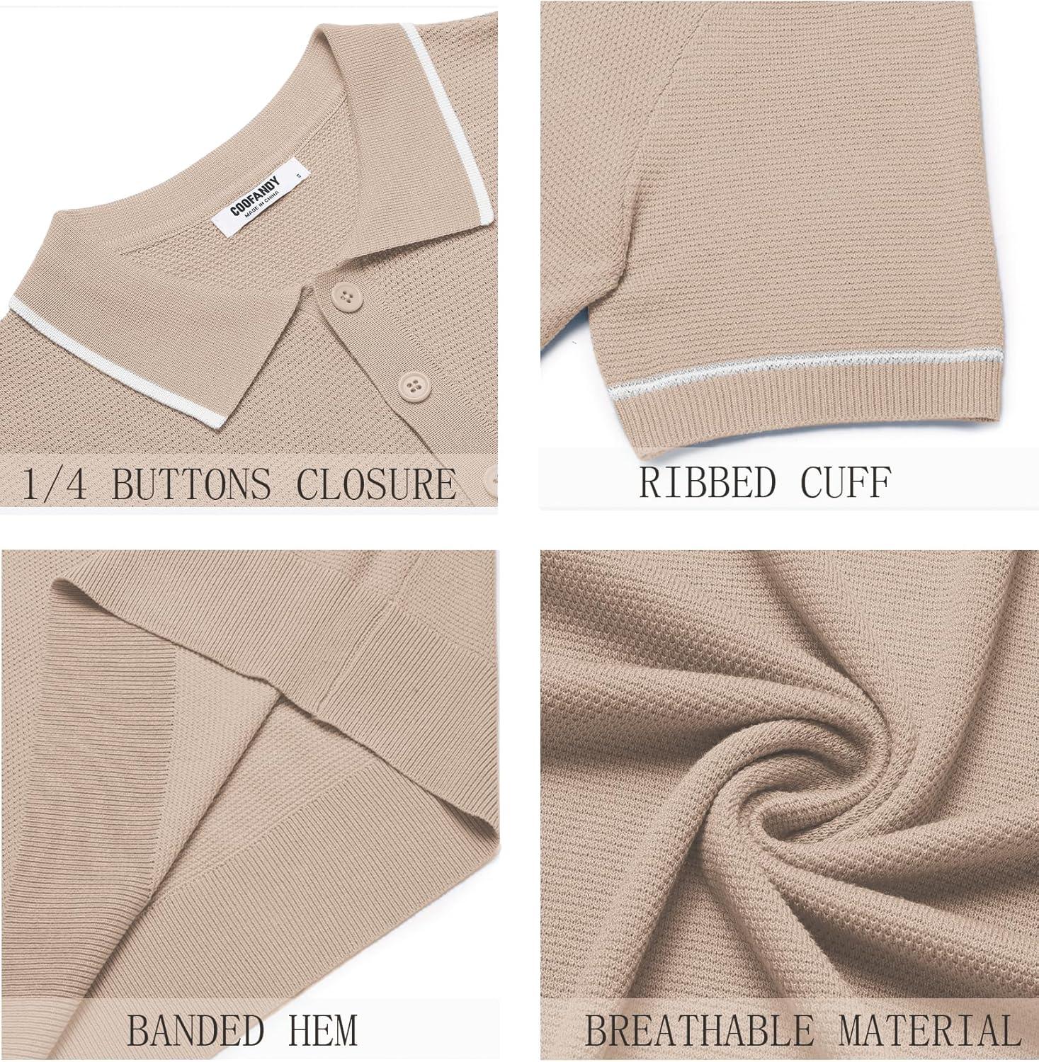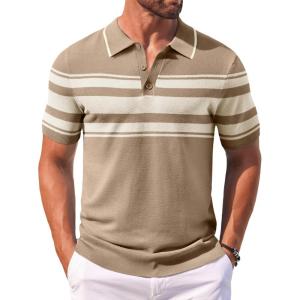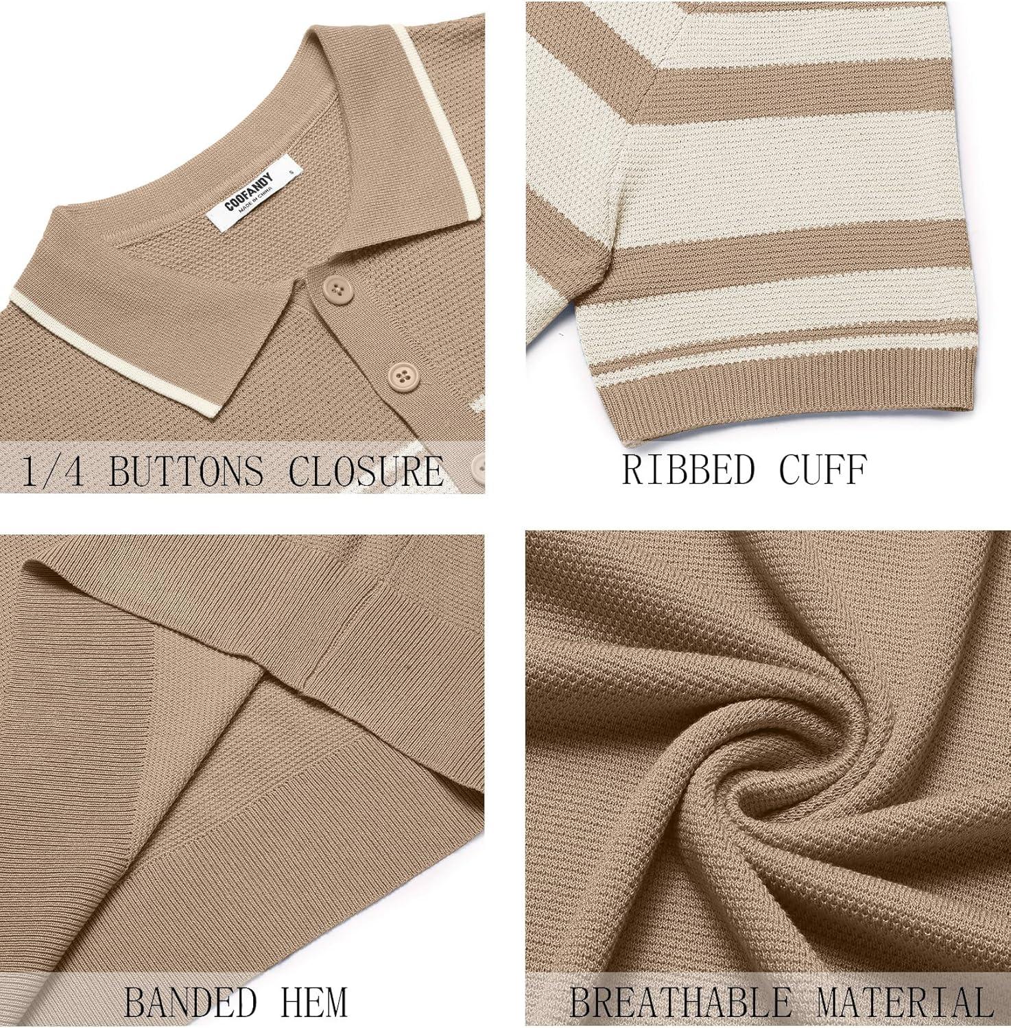 COOFANDY Men’s Zipper Polo Shirt Casual Knit Short Sleeve Polo T Shirt Classic Fit Shirts(Stripes – Black & Khaki)