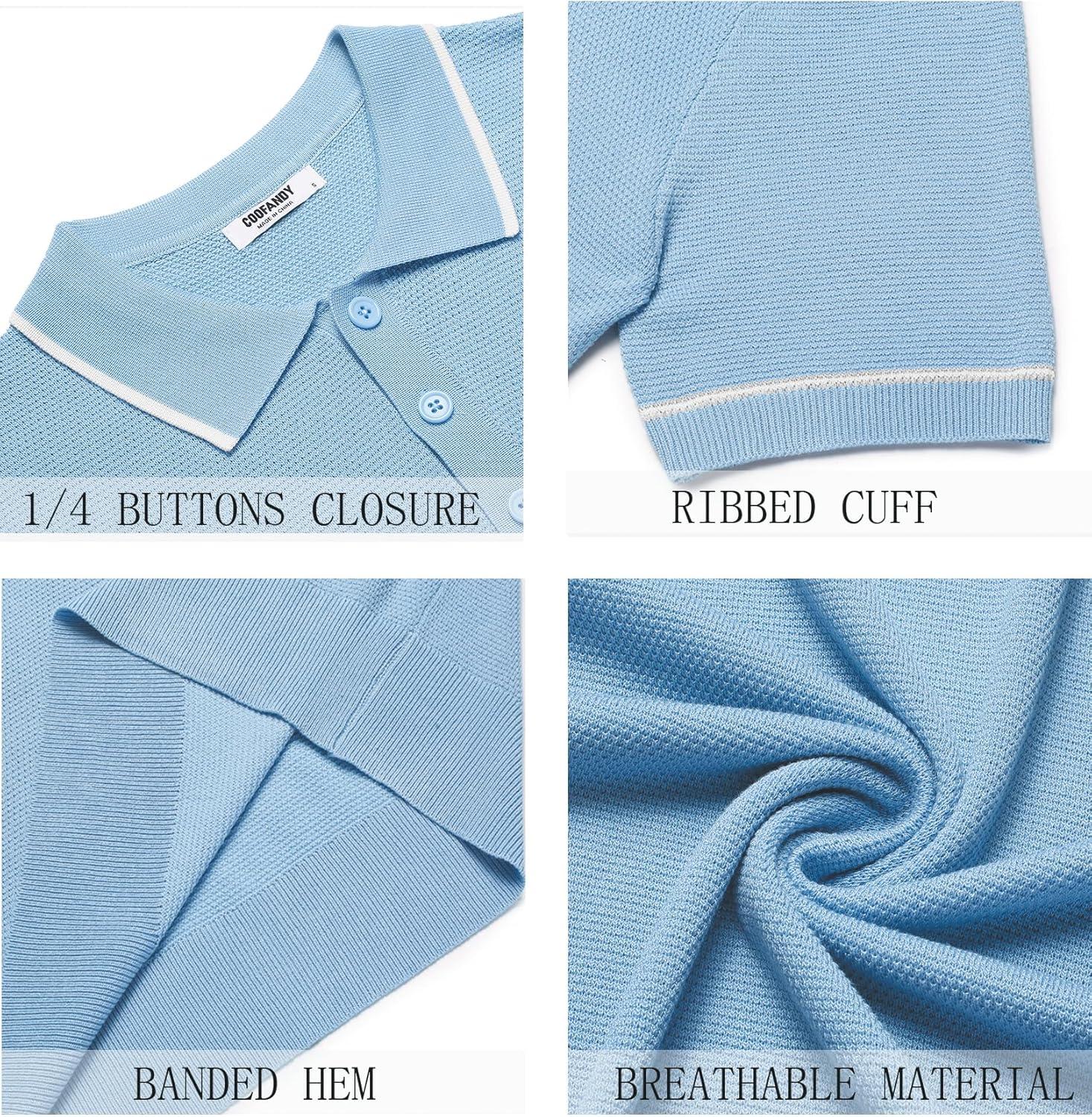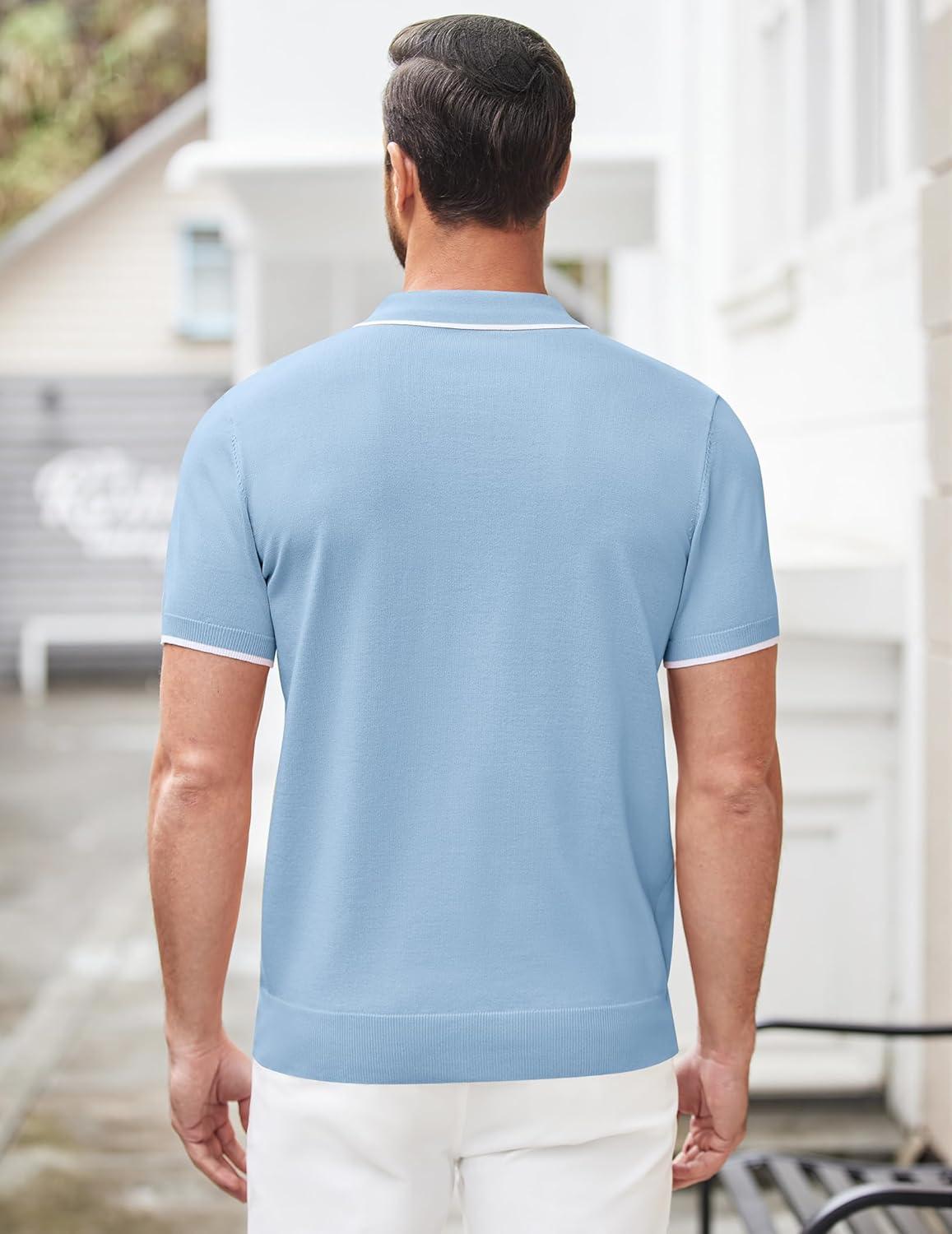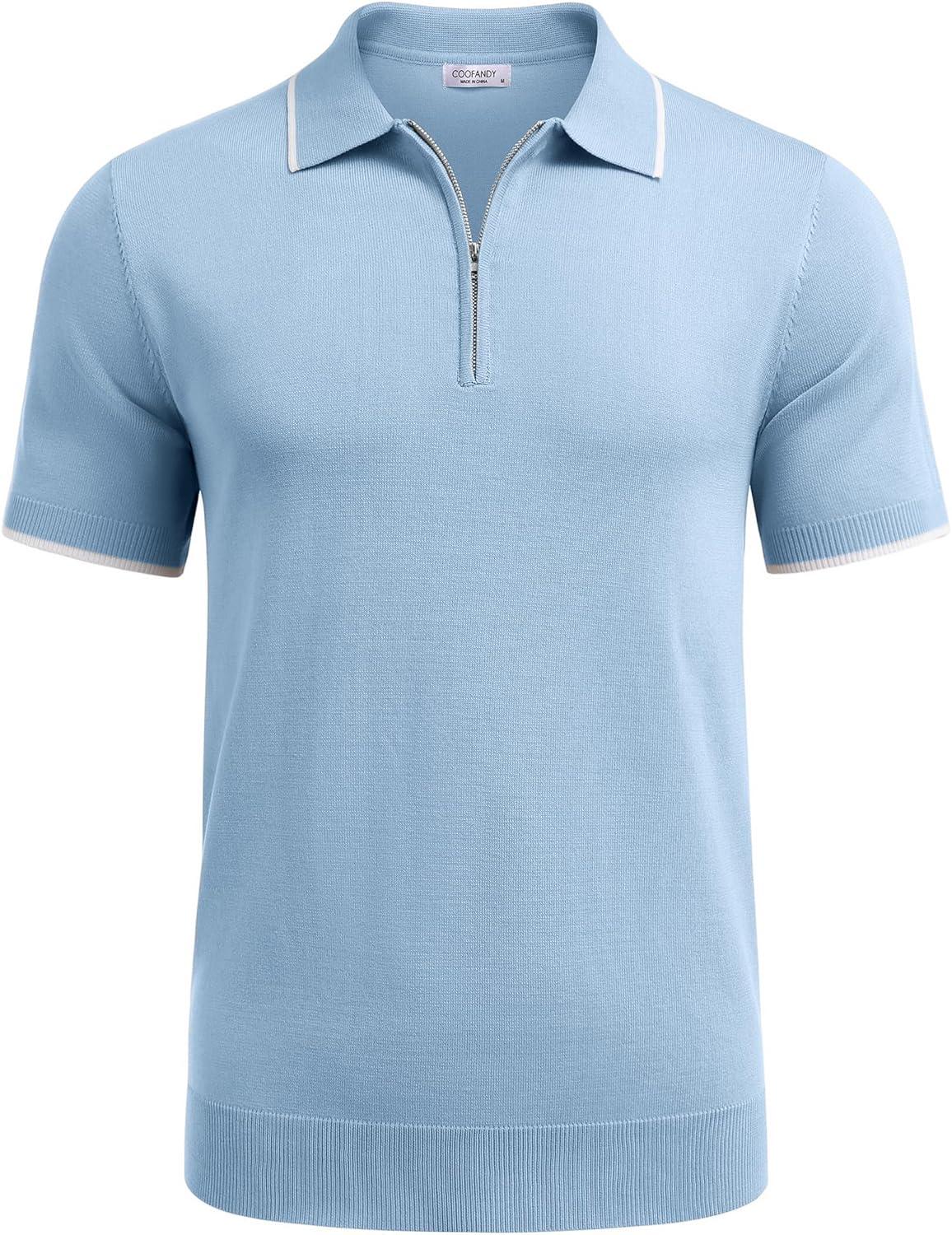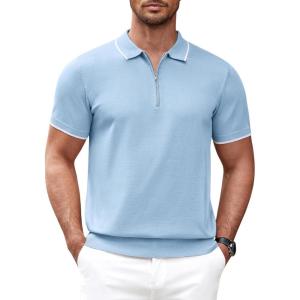 COOFANDY Men’s Zipper Polo Shirt Casual Knit Short Sleeve Polo T Shirt Classic Fit Shirts(Sky Blue)