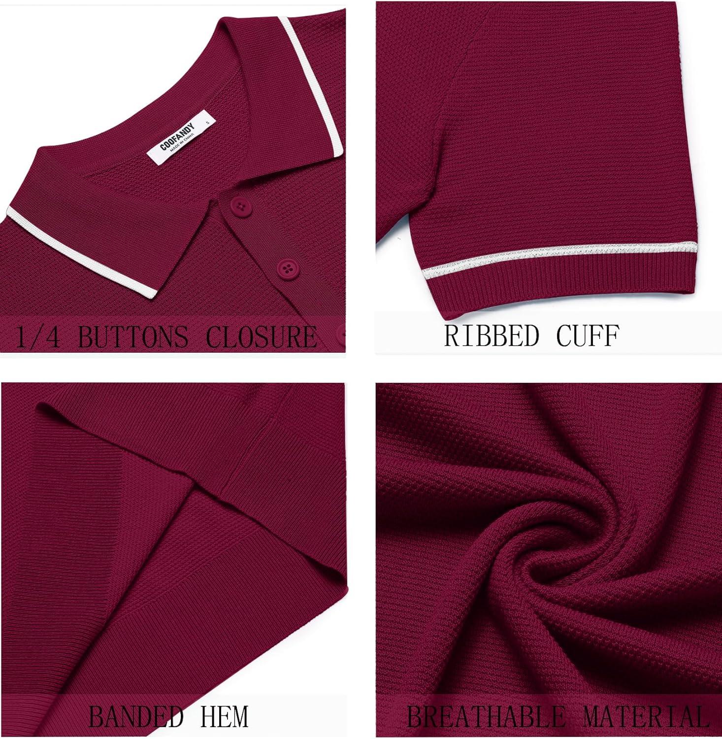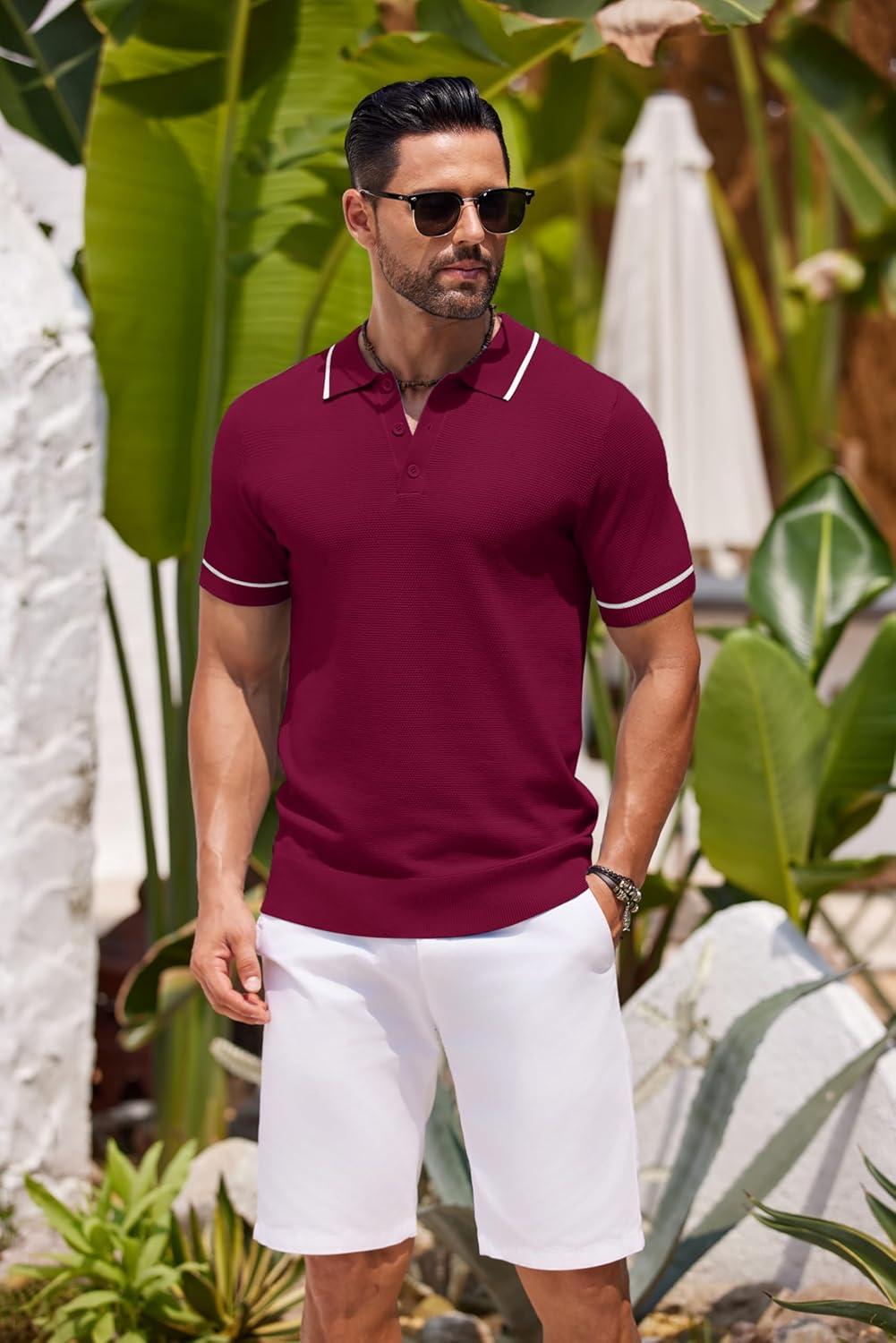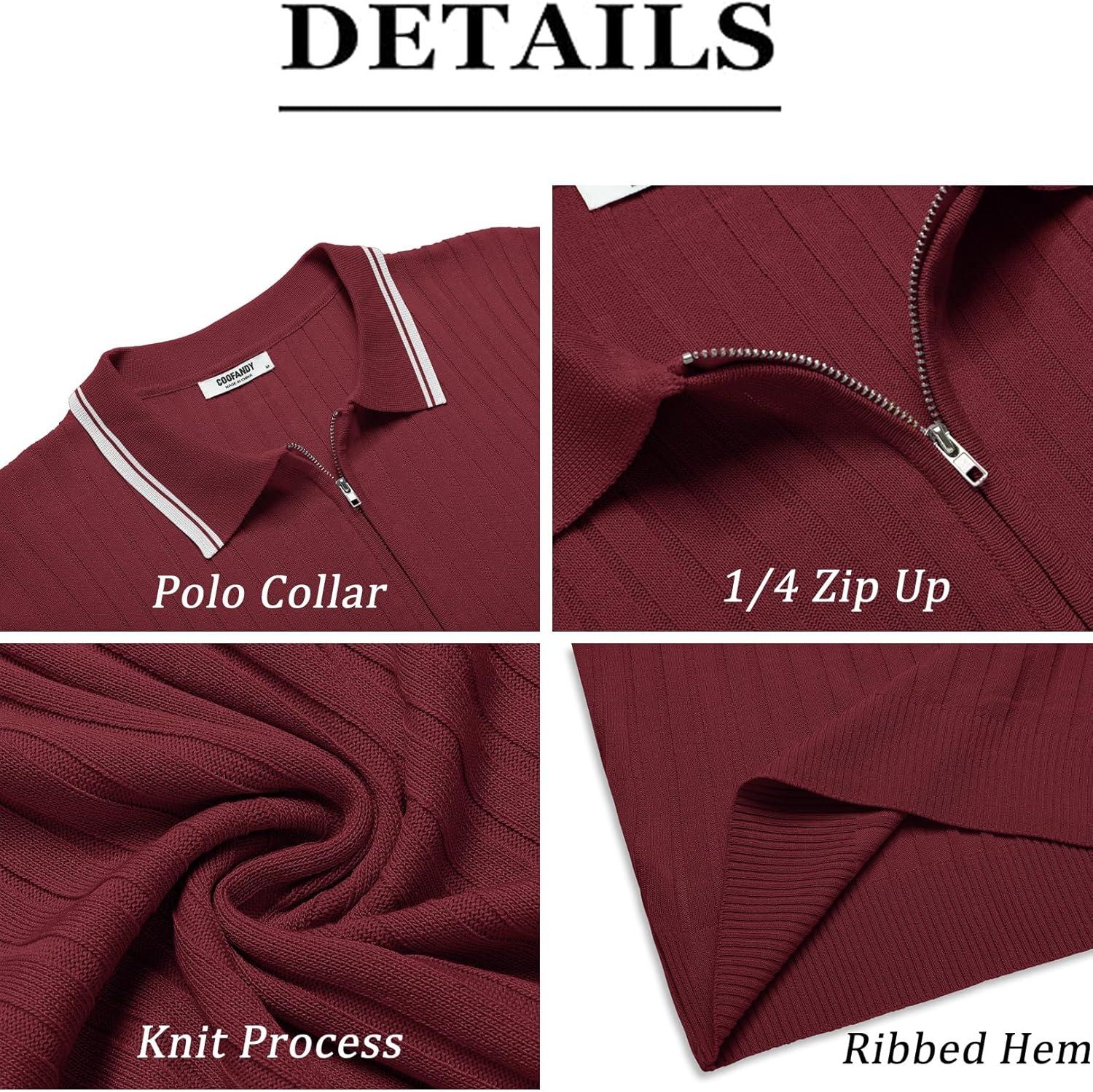 COOFANDY Men’s Zipper Polo Shirt Casual Knit Short Sleeve Polo T Shirt Classic Fit Shirts(Wine Red)