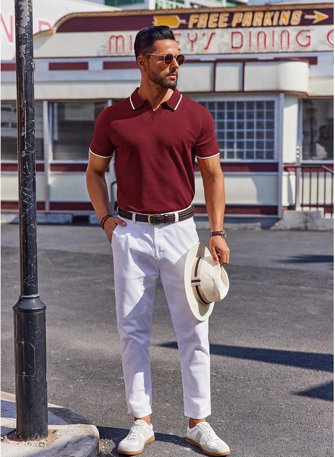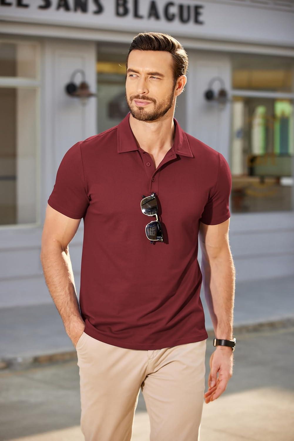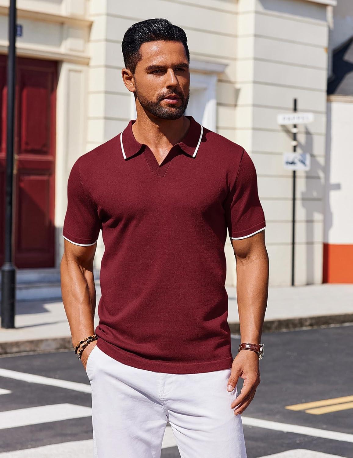 COOFANDY Men’s Zipper Polo Shirt Casual Knit Short Sleeve Polo T Shirt Classic Fit Shirts(Wine Red)