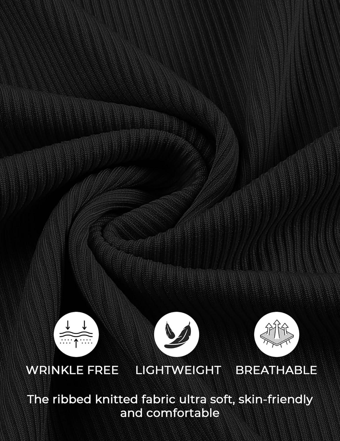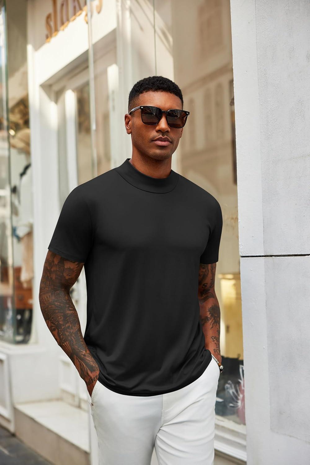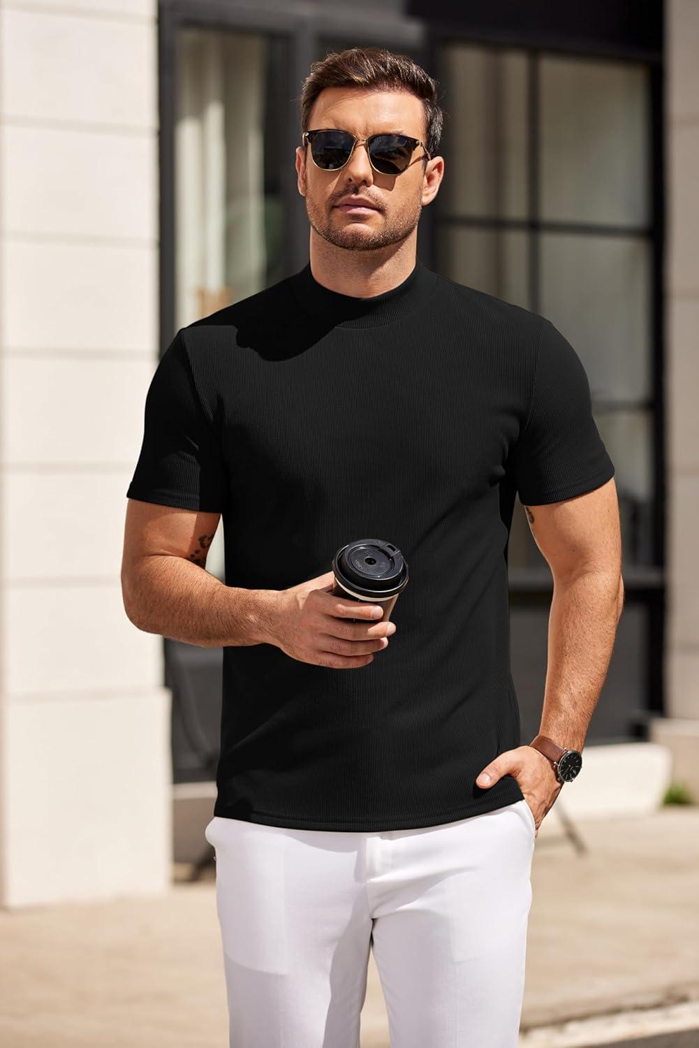 COOFANDY Mens Mock Turtleneck Shirts Short Sleeve Casual Basic T-Shirts Ribbed Solid Pullover Tops(Black)