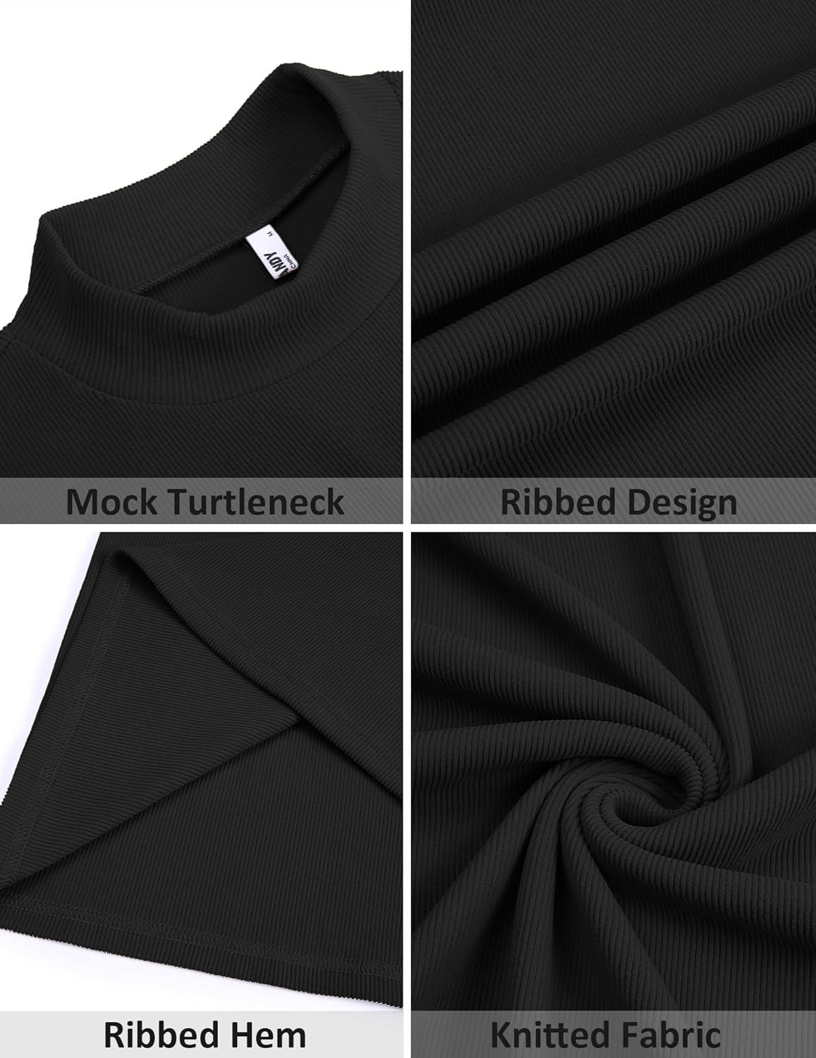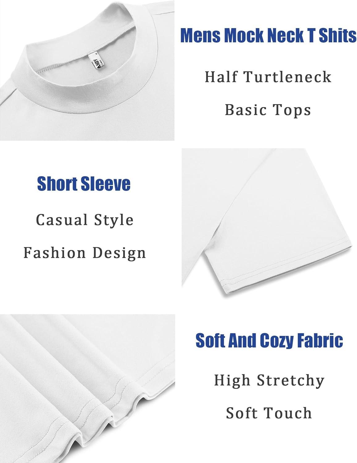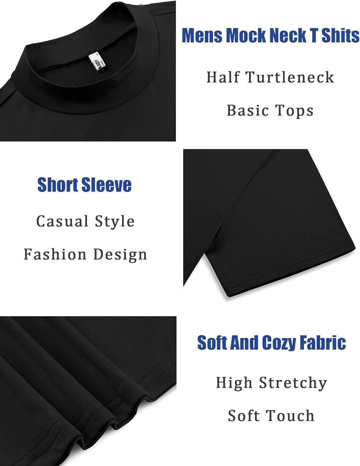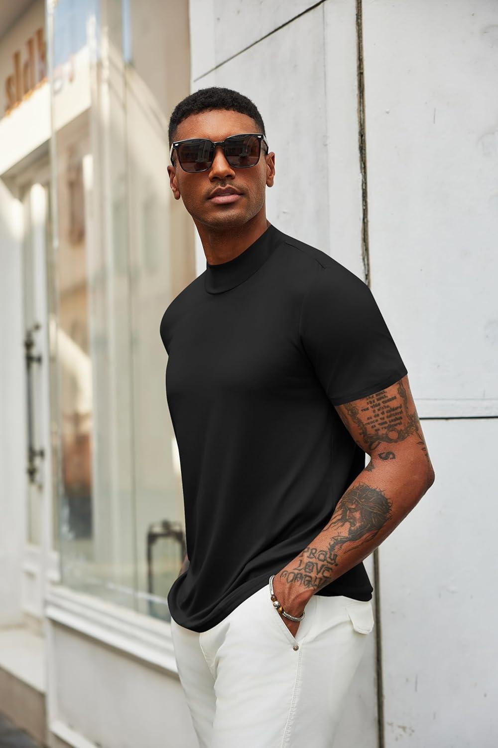 COOFANDY Mens Mock Turtleneck Shirts Short Sleeve Casual Basic T-Shirts Ribbed Solid Pullover Tops(A-black)