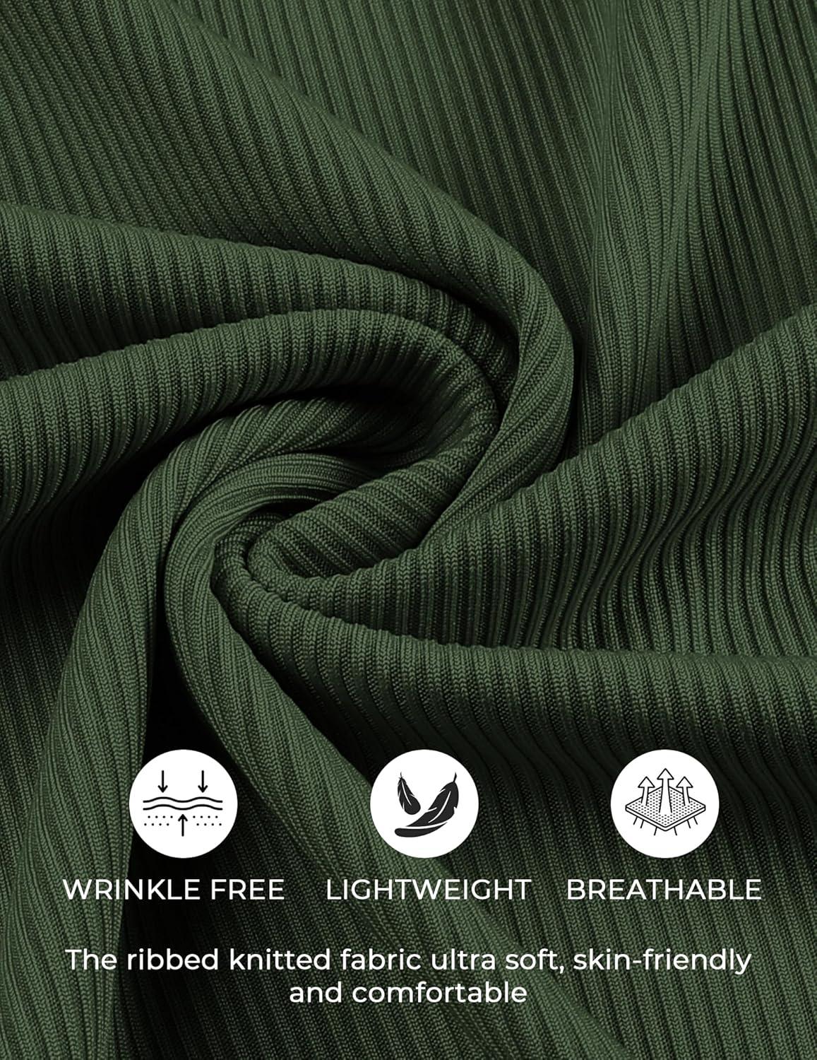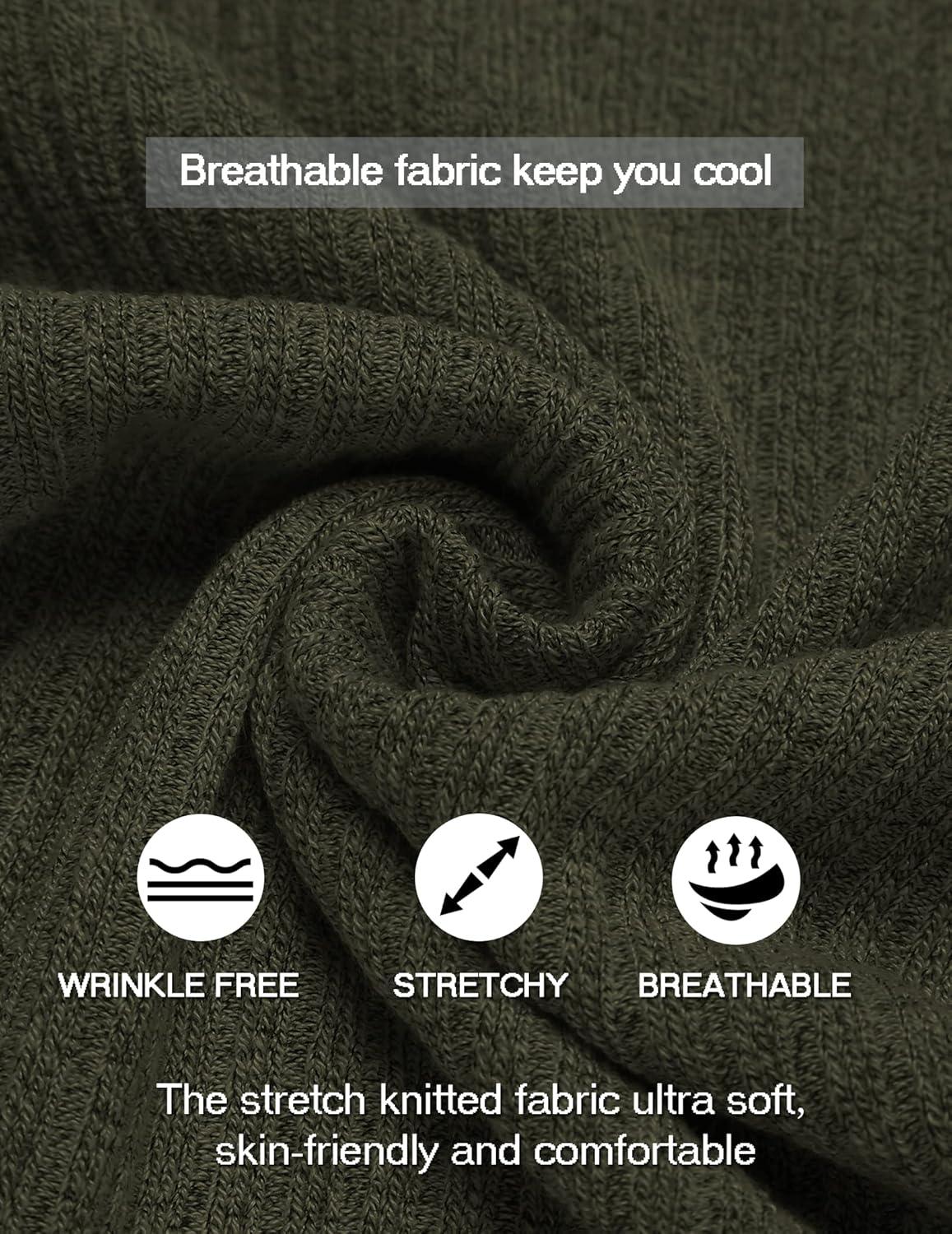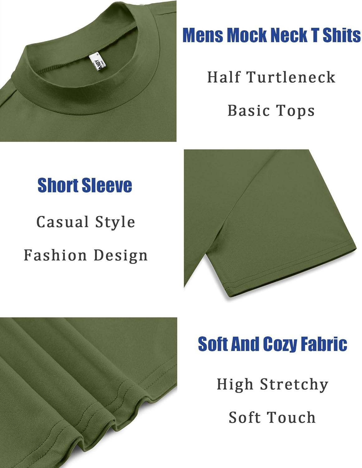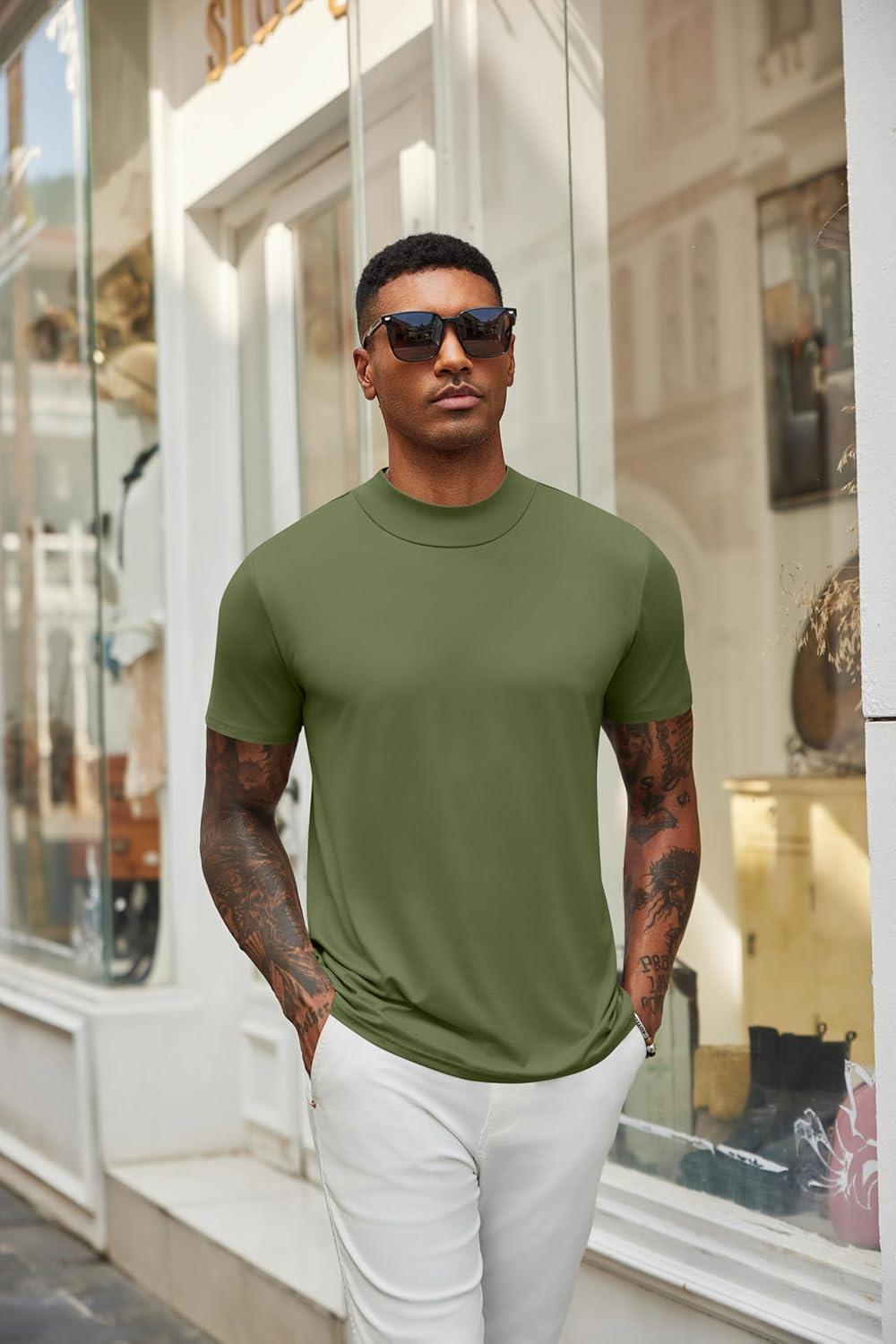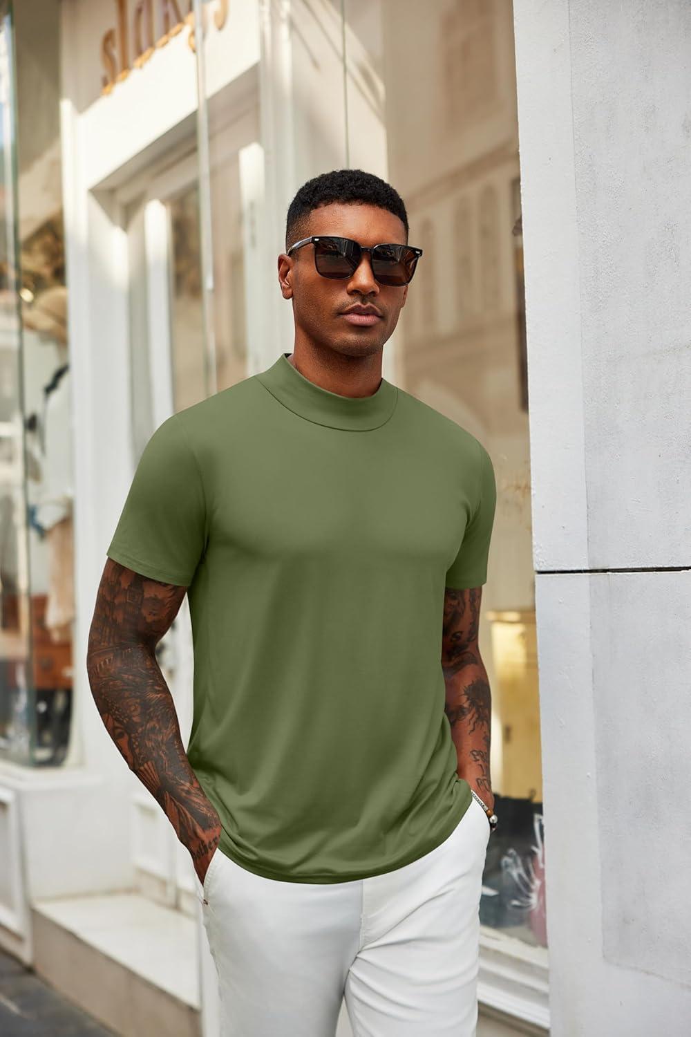 COOFANDY Mens Mock Turtleneck Shirts Short Sleeve Casual Basic T-Shirts Ribbed Solid Pullover Tops(Army Green)