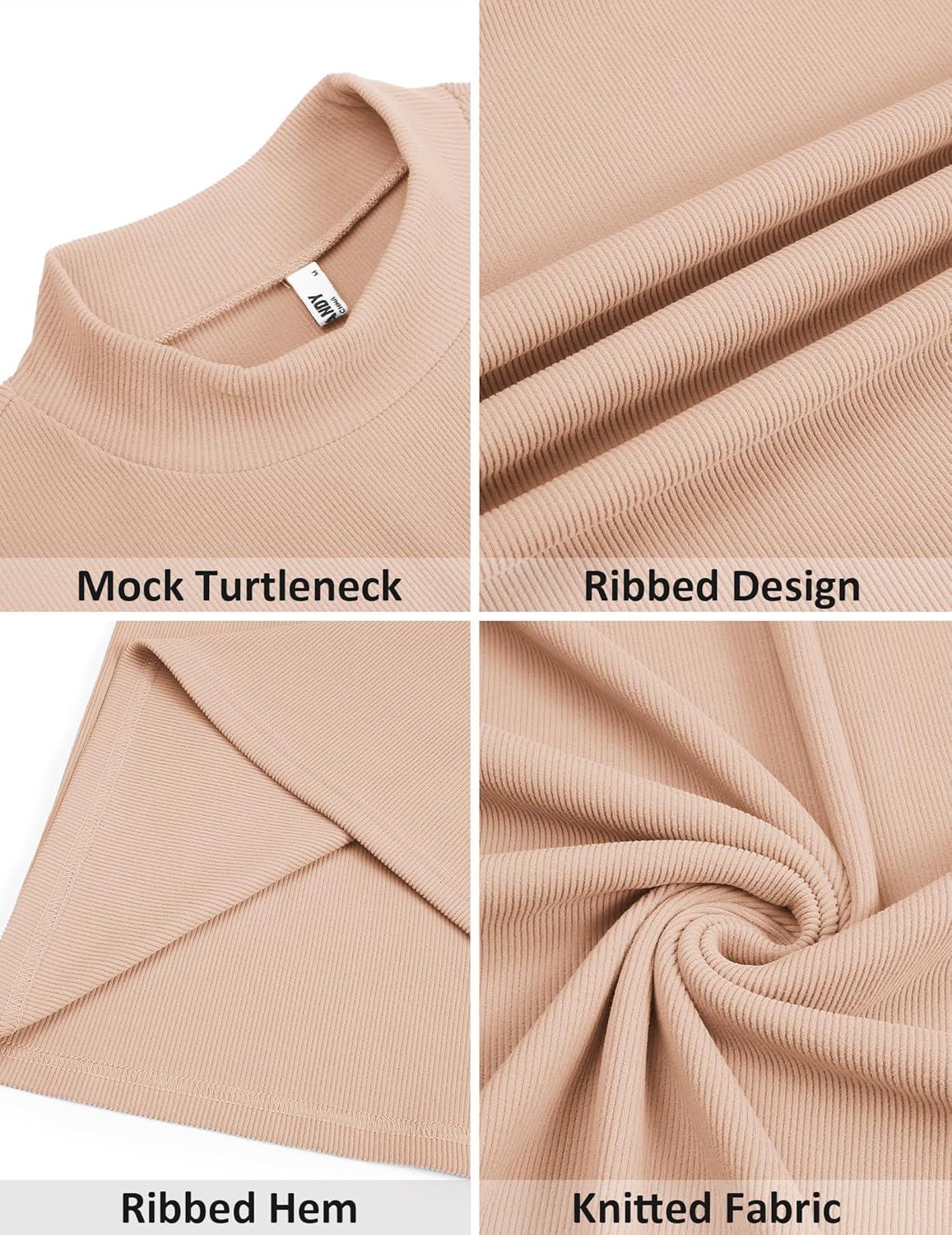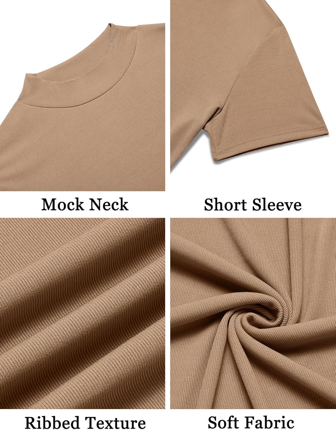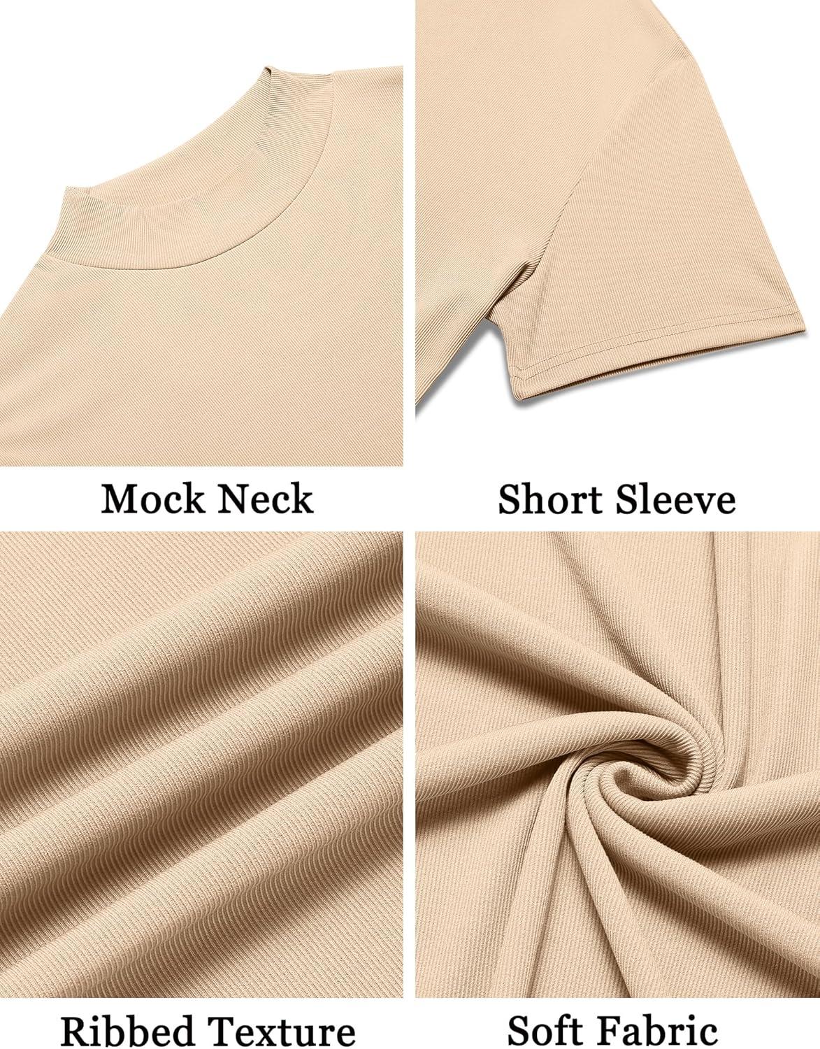 COOFANDY Mens Mock Turtleneck Shirts Short Sleeve Casual Basic T-Shirts Ribbed Solid Pullover Tops(A-khaki)
