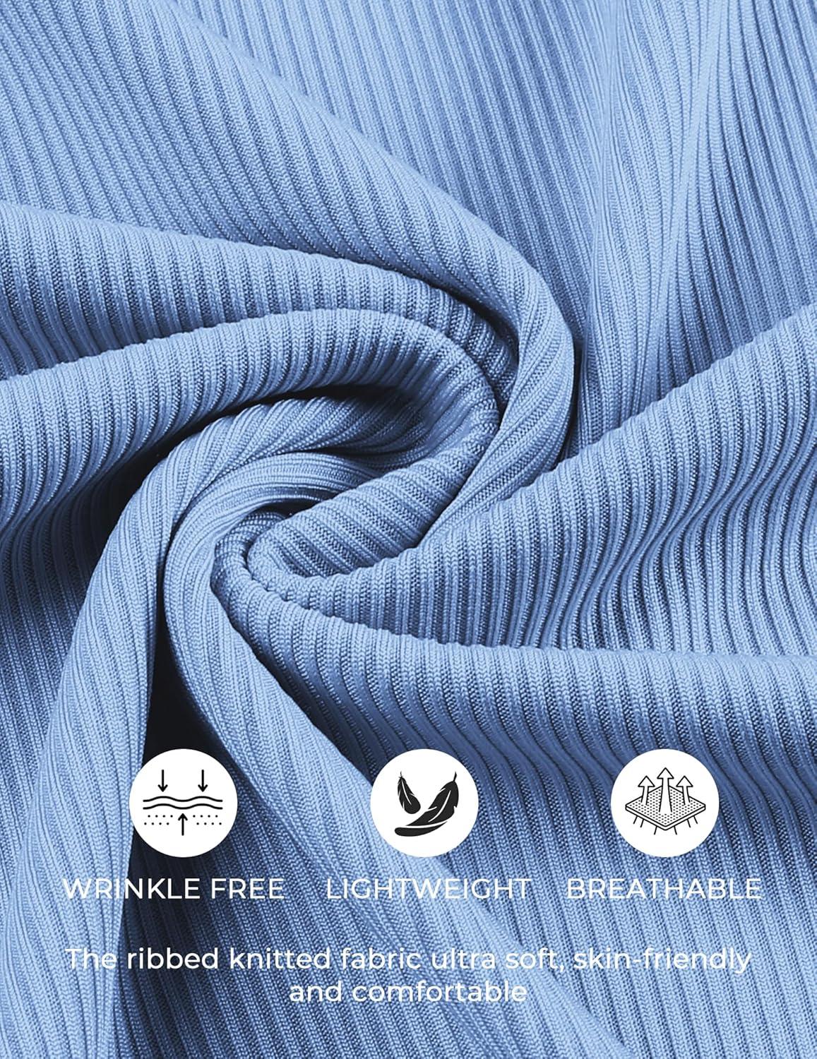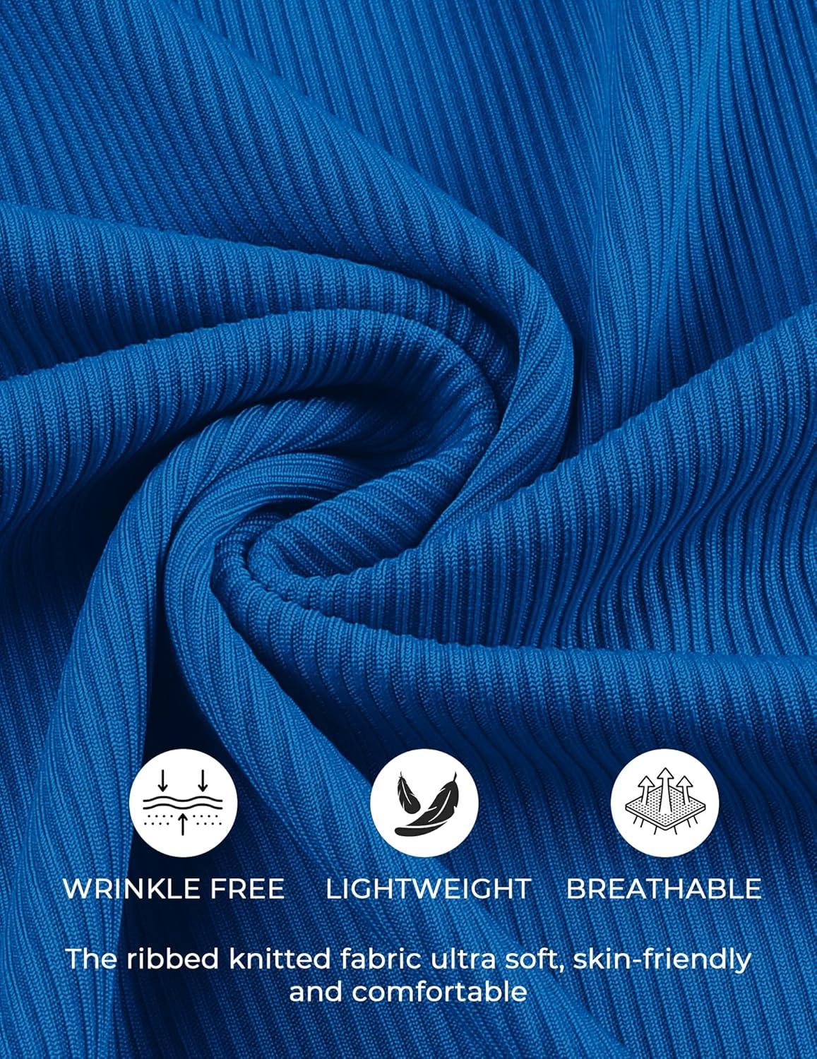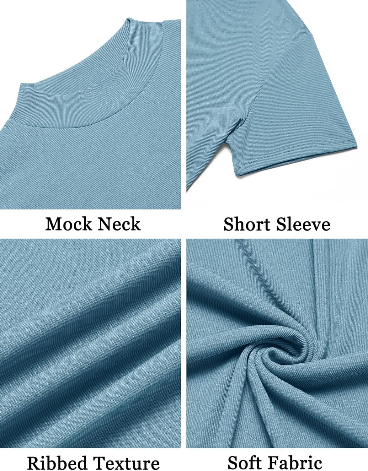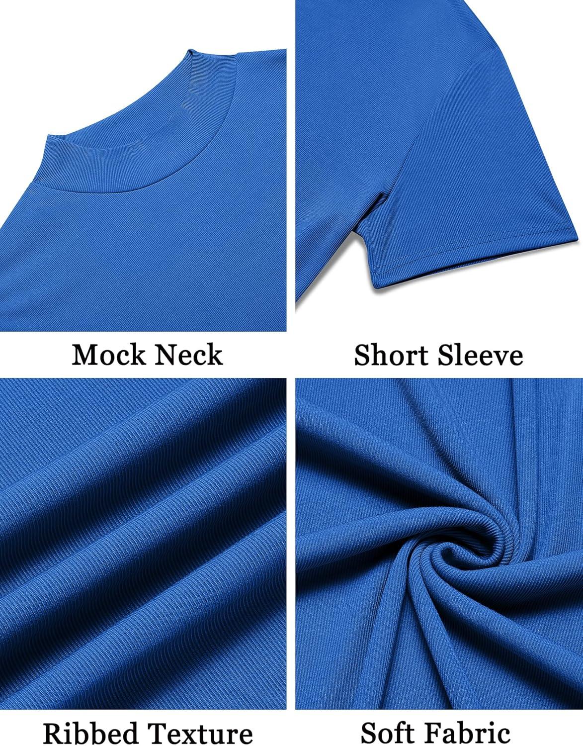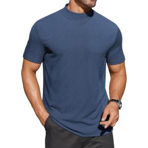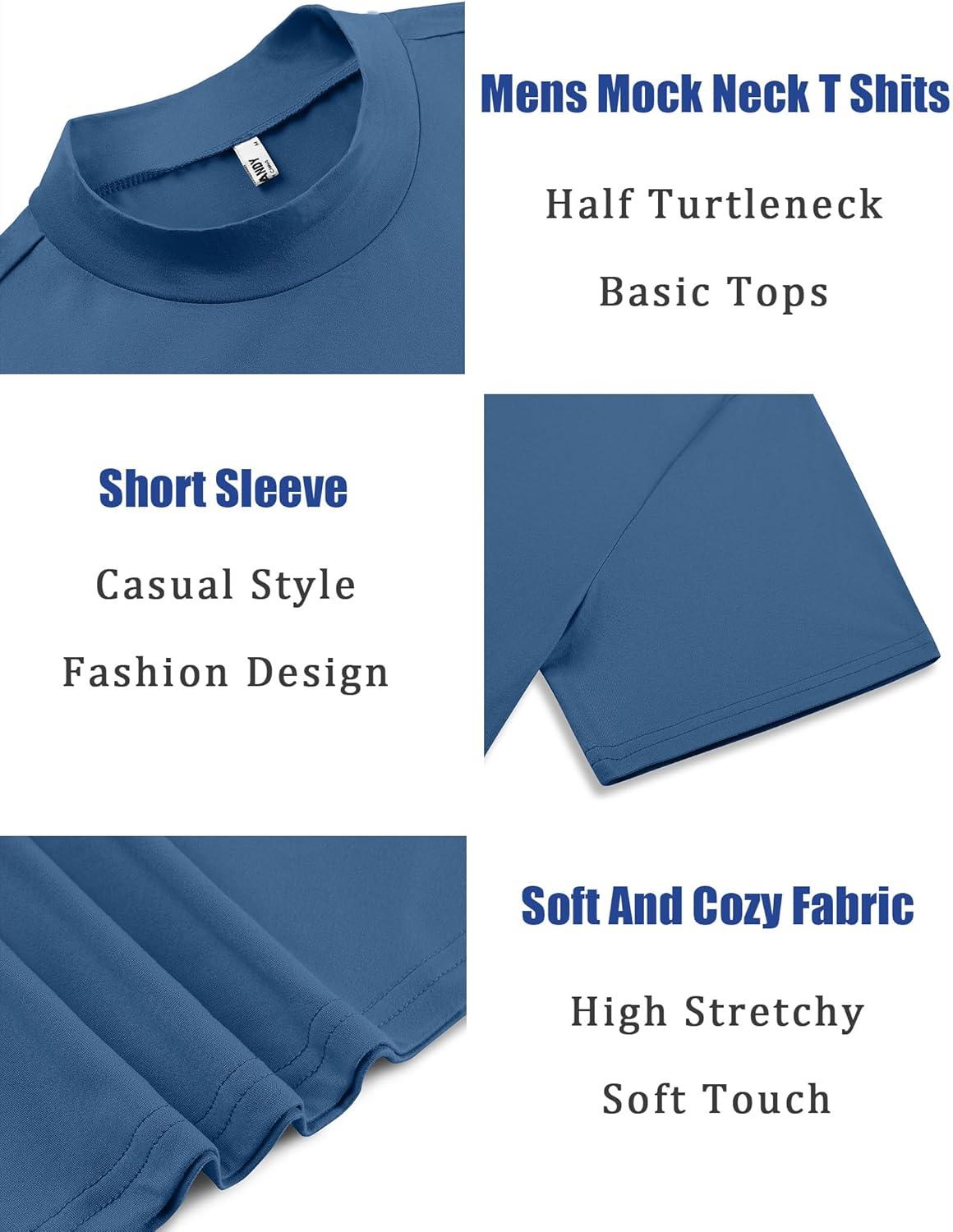 COOFANDY Mens Mock Turtleneck Shirts Short Sleeve Casual Basic T-Shirts Ribbed Solid Pullover Tops(Blue)