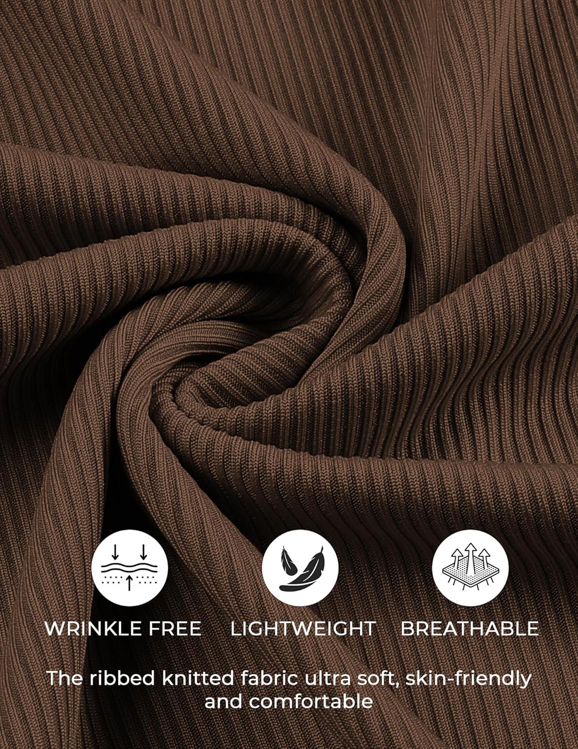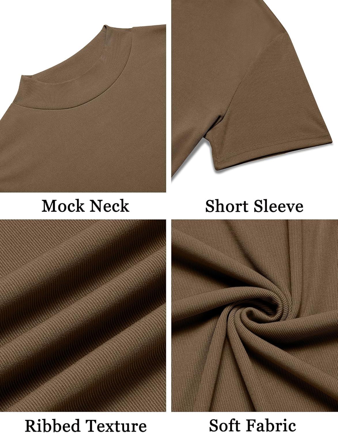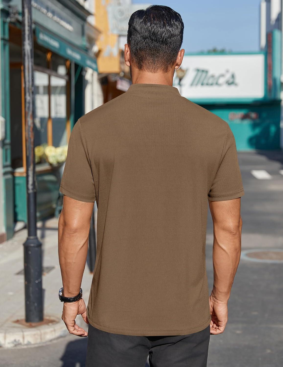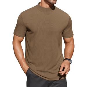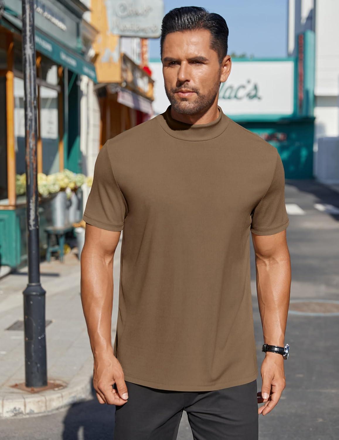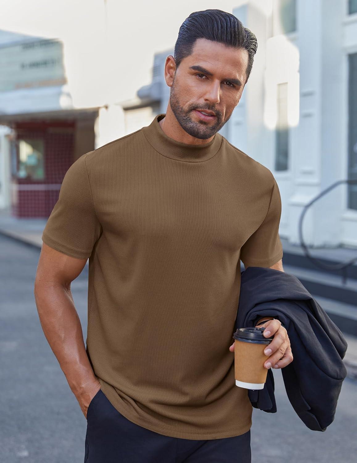COOFANDY Mens Mock Turtleneck Shirts Short Sleeve Casual Basic T-Shirts Ribbed Solid Pullover Tops(Brown)