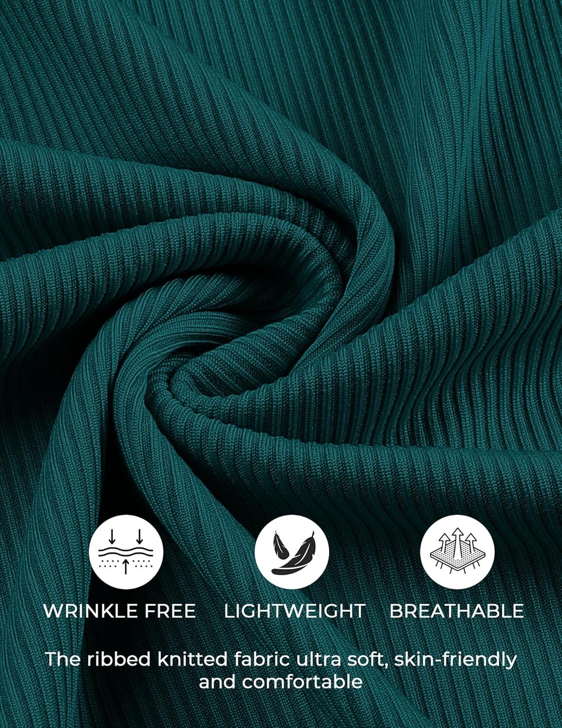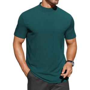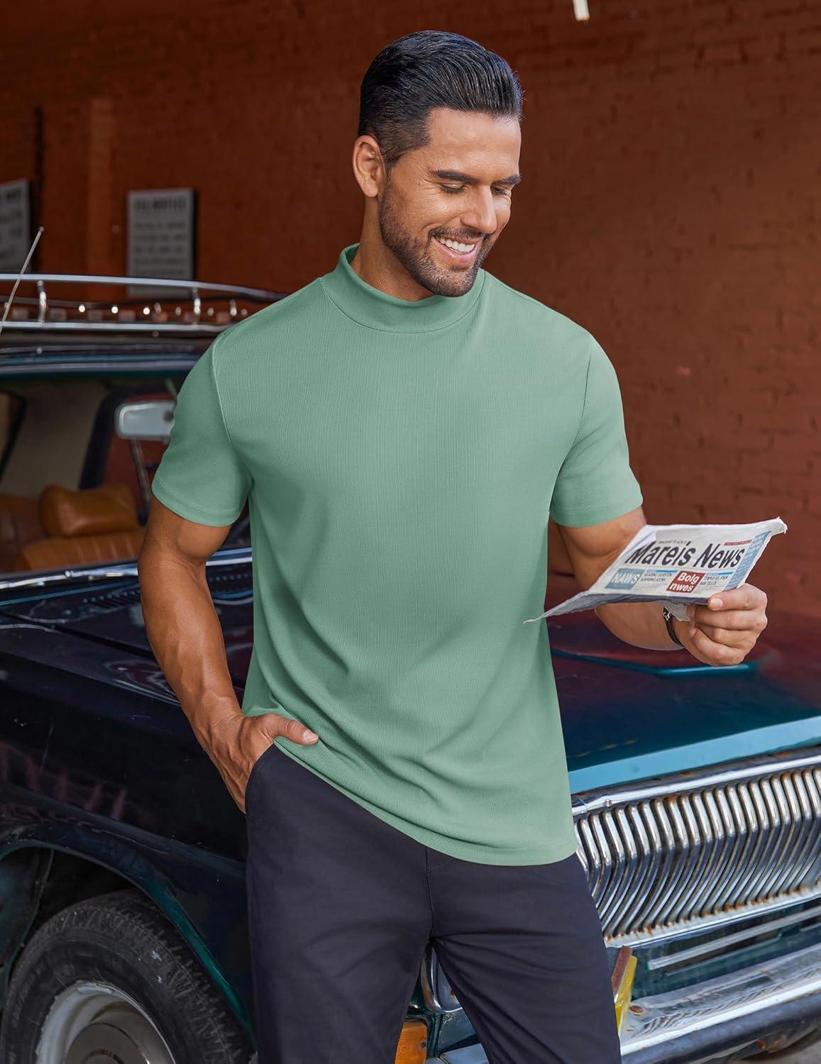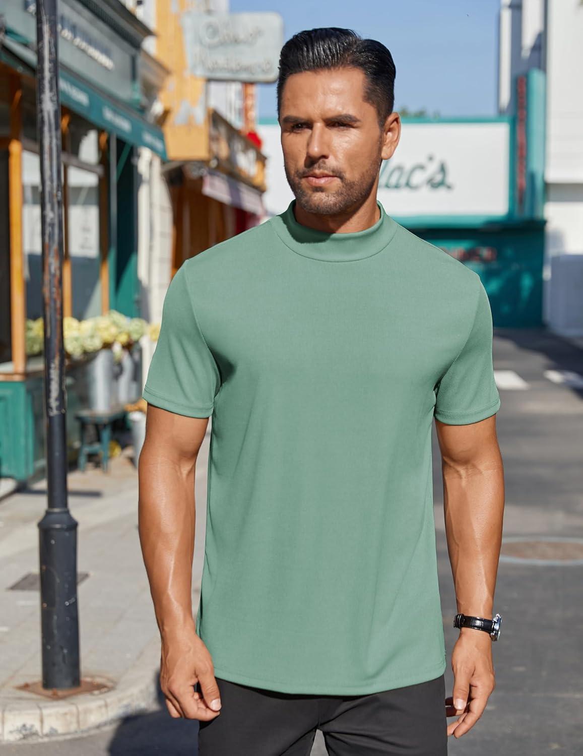 COOFANDY Mens Mock Turtleneck Shirts Short Sleeve Casual Basic T-Shirts Ribbed Solid Pullover Tops(Lake Green)