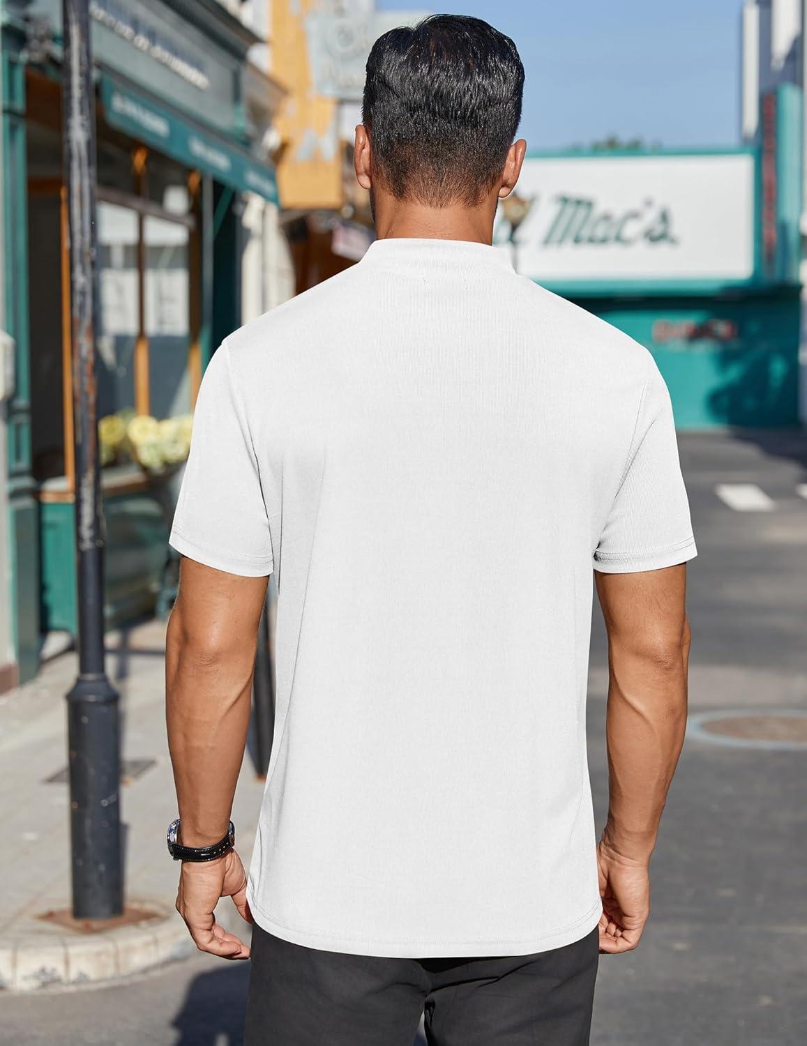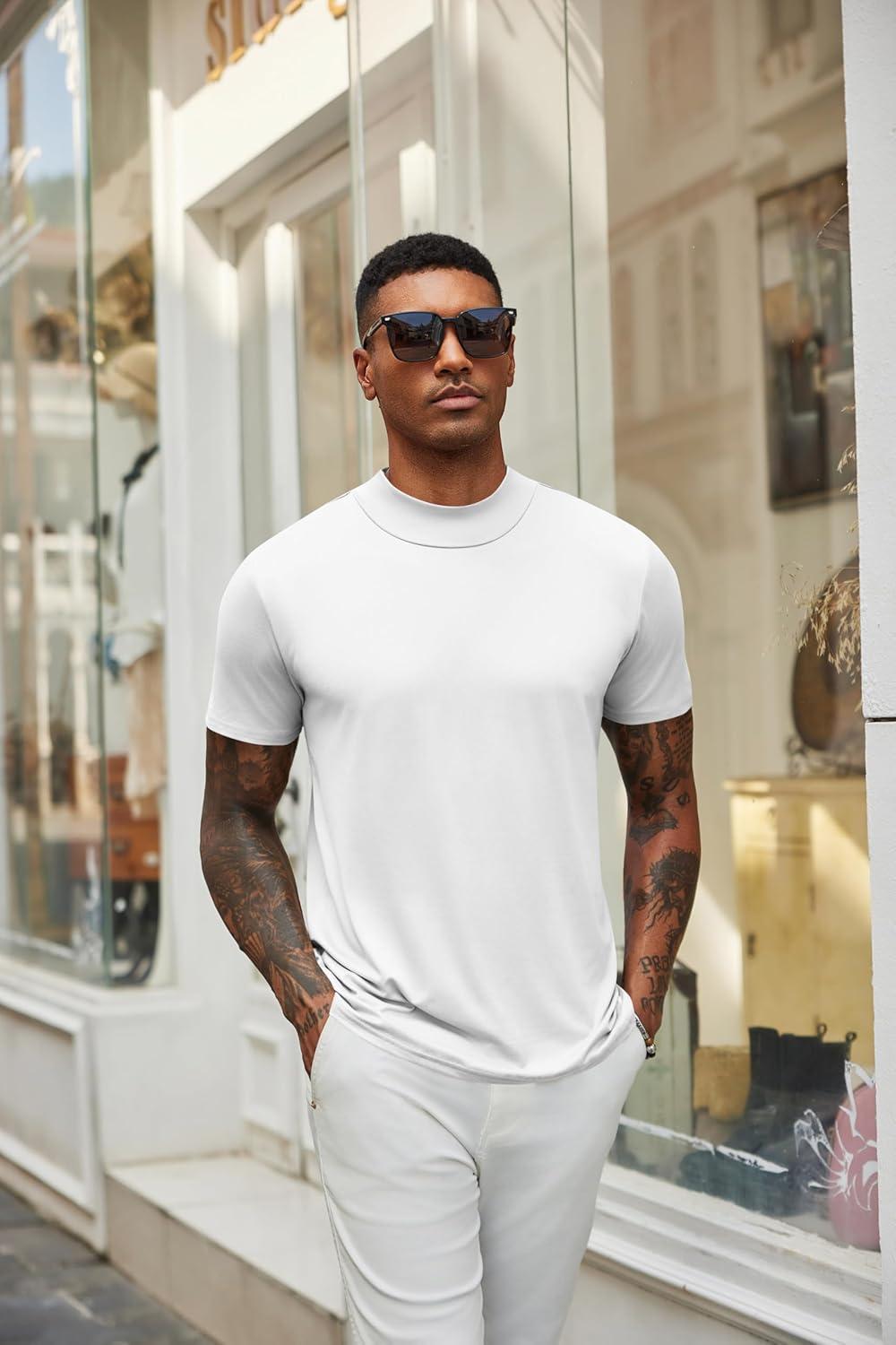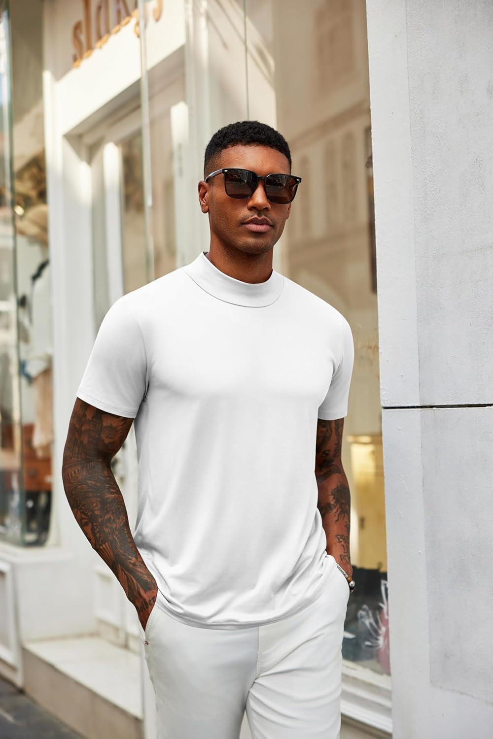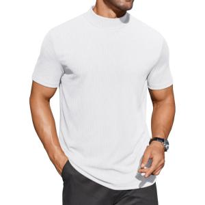 COOFANDY Mens Mock Turtleneck Shirts Short Sleeve Casual Basic T-Shirts Ribbed Solid Pullover Tops(White)