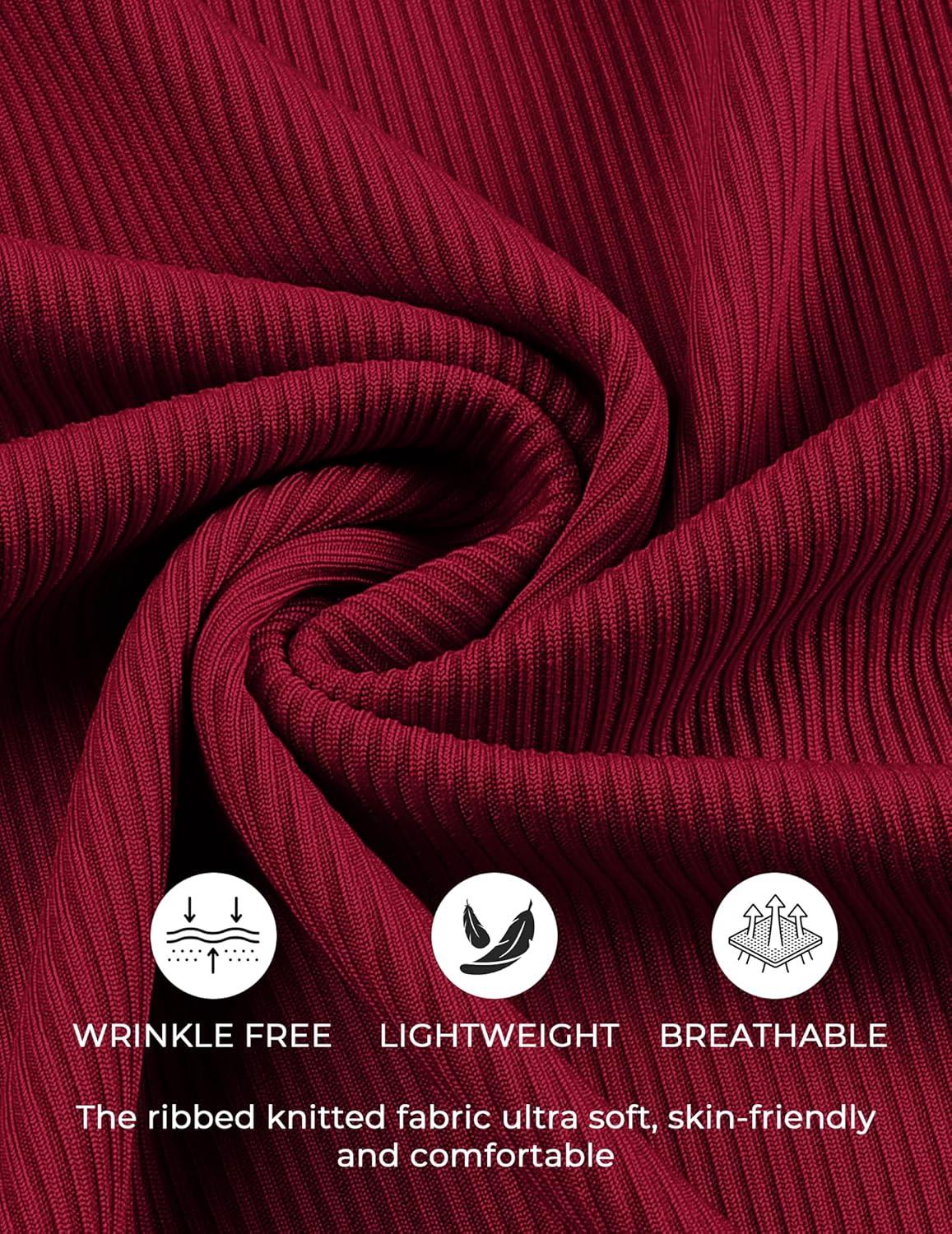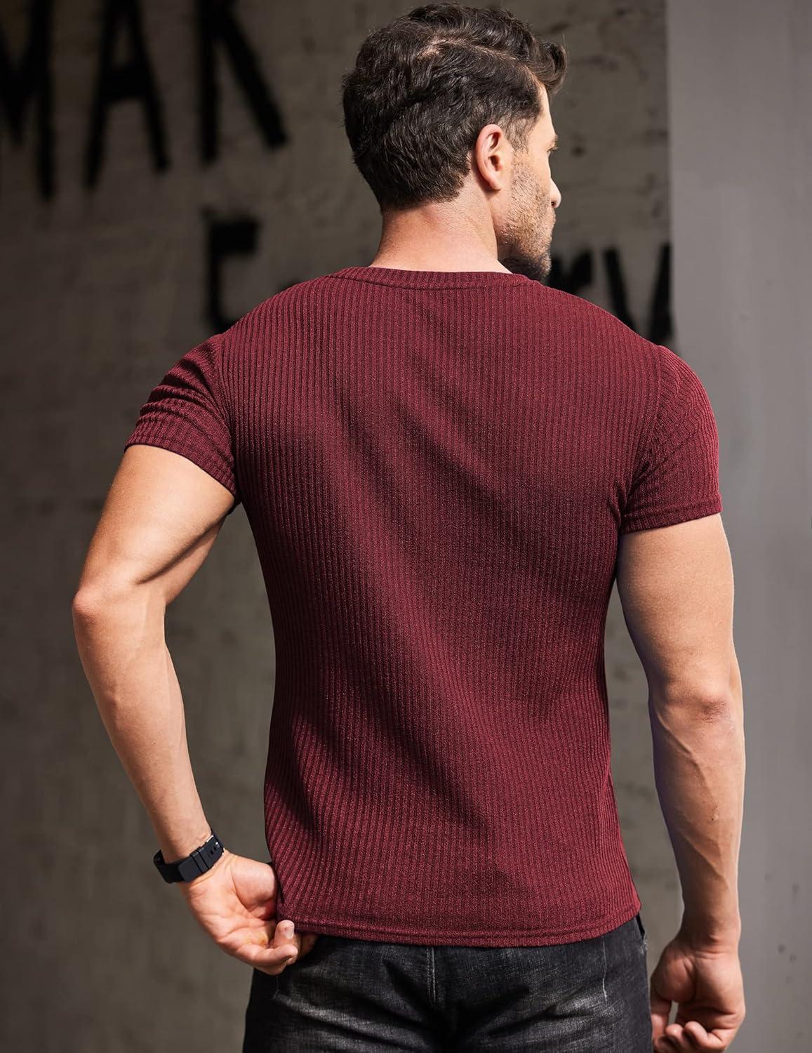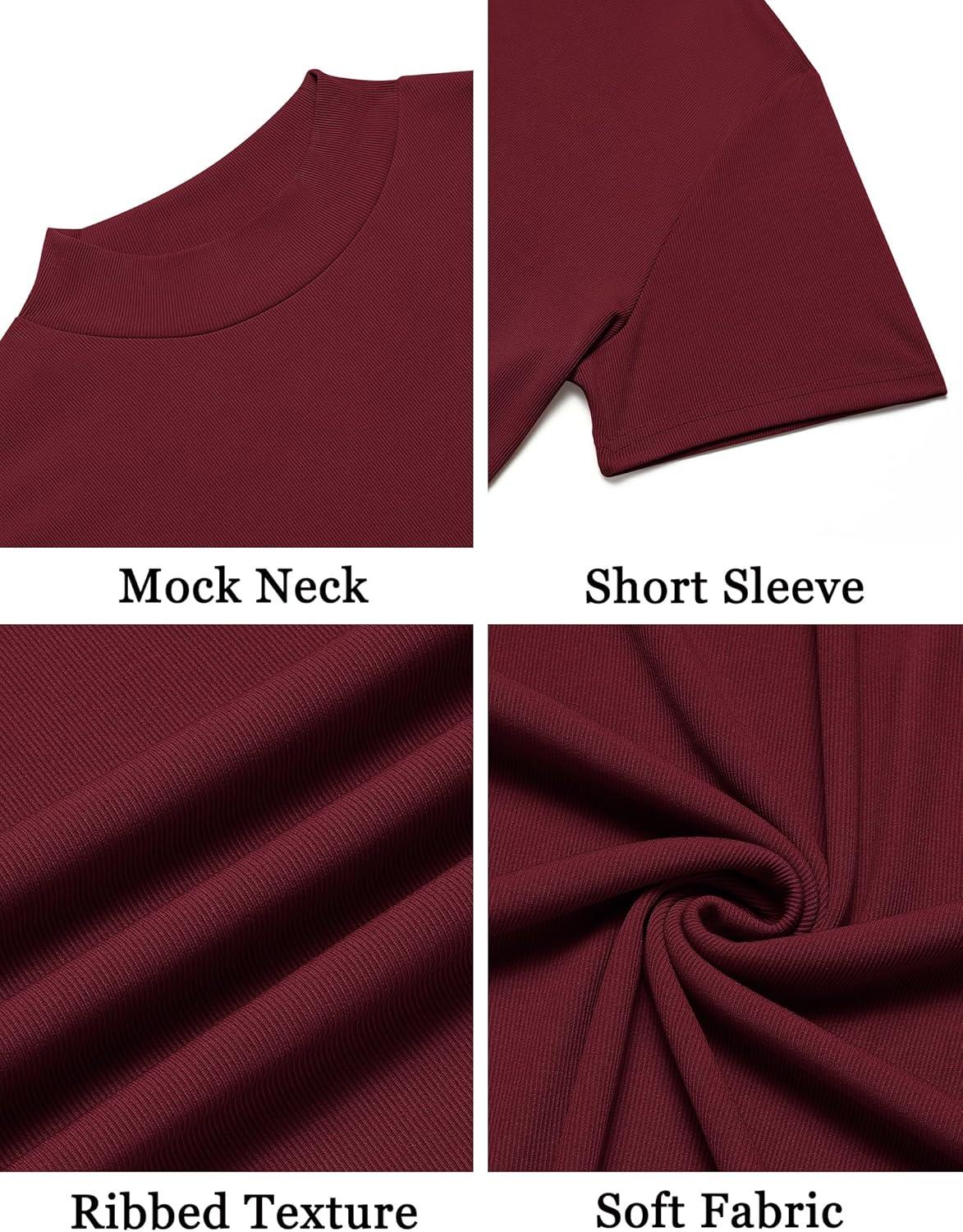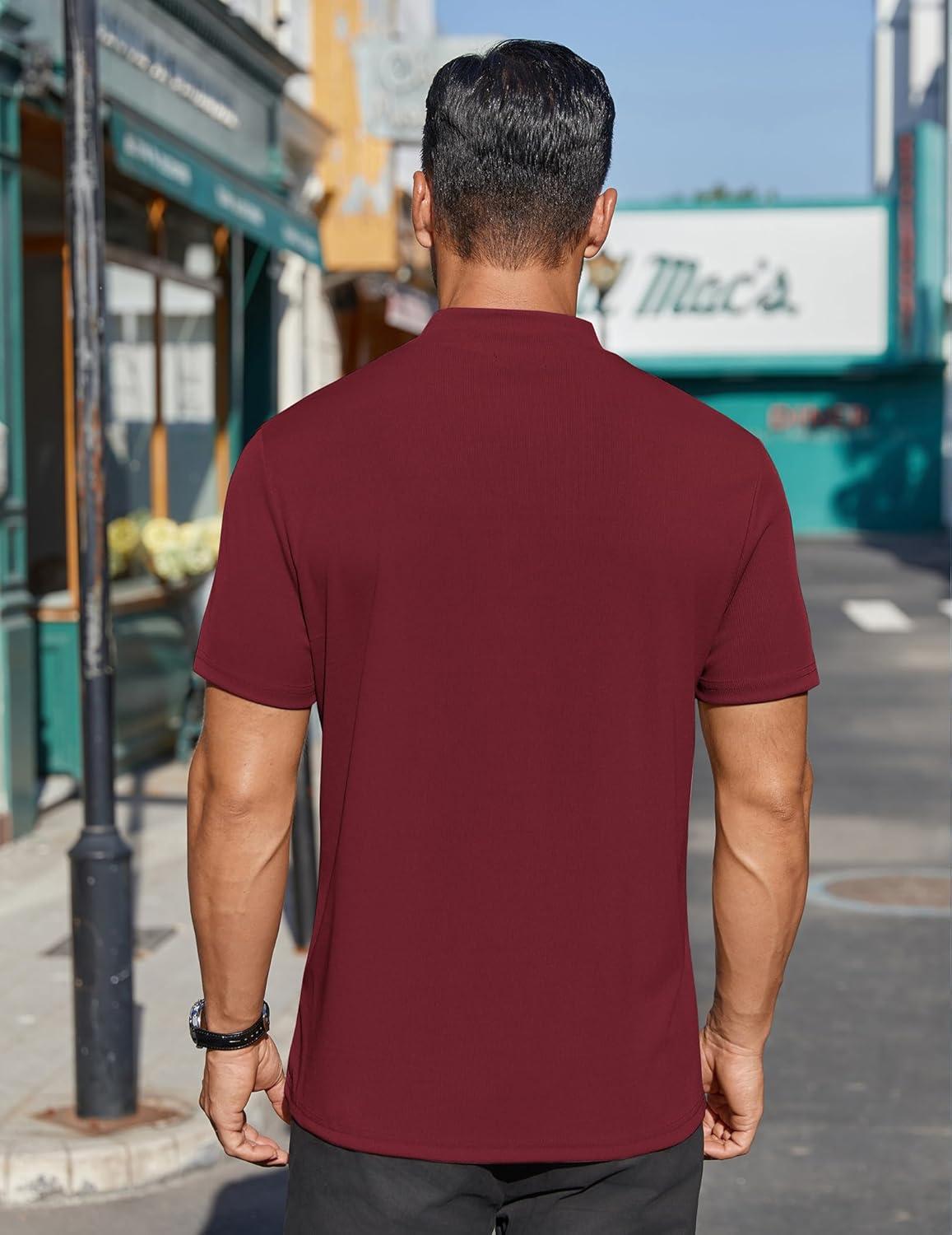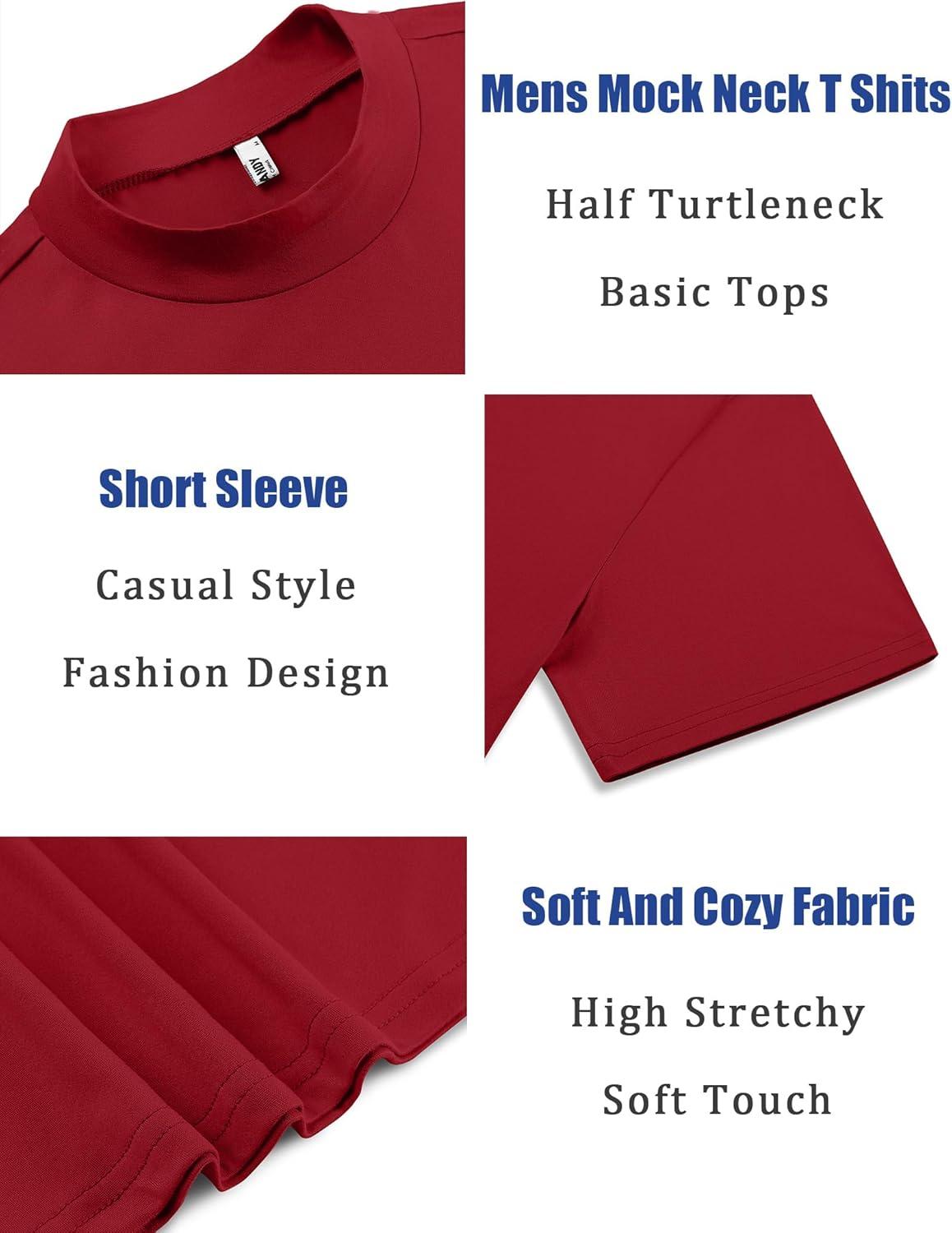COOFANDY Mens Mock Turtleneck Shirts Short Sleeve Casual Basic T-Shirts Ribbed Solid Pullover Tops(Wine Red)
