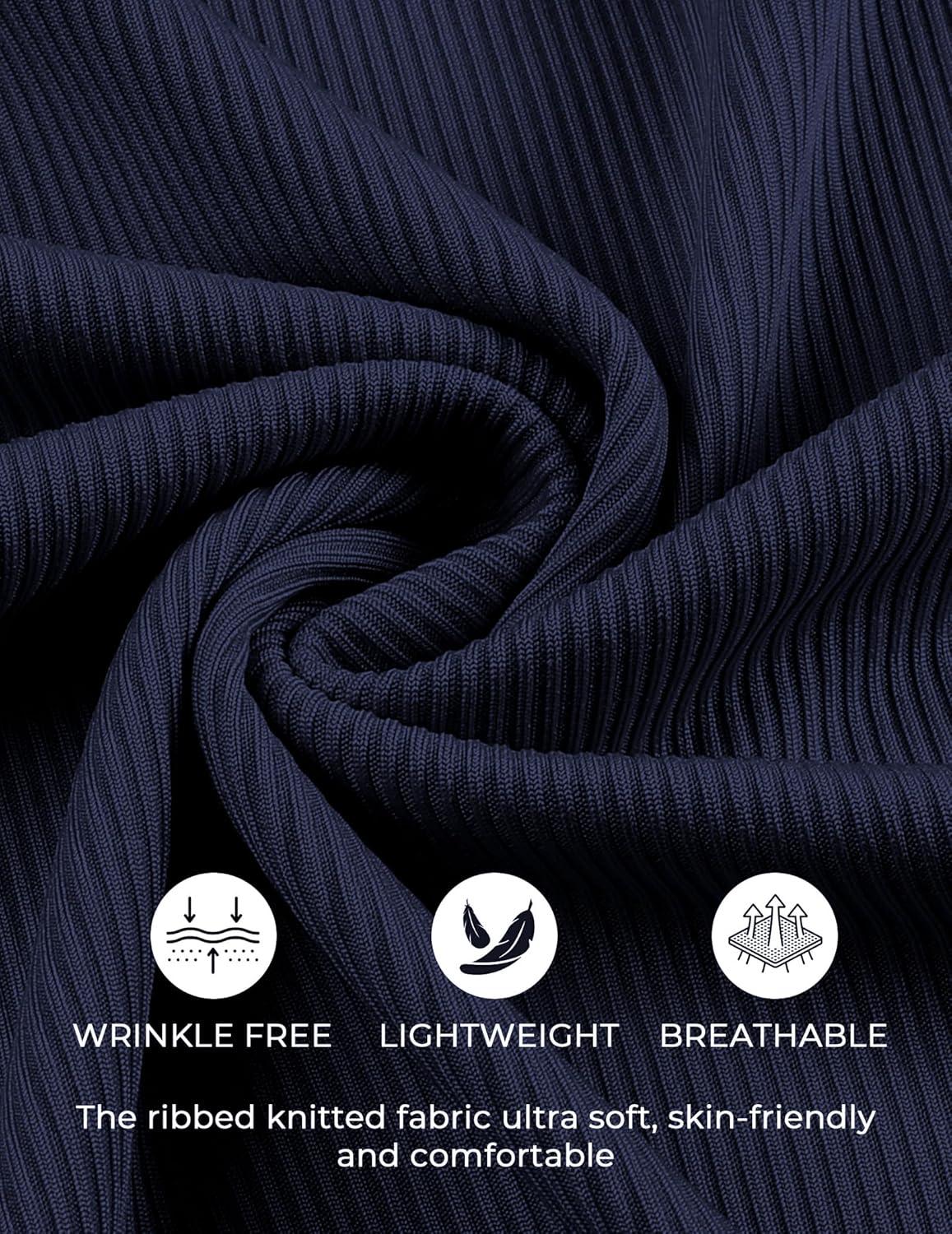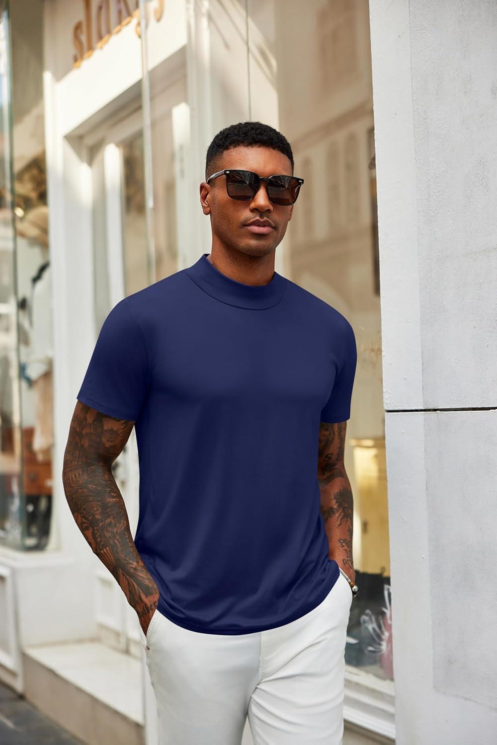 COOFANDY Mens Mock Turtleneck Shirts Short Sleeve Casual Basic T-Shirts Ribbed Solid Pullover Tops(Navy Blue)