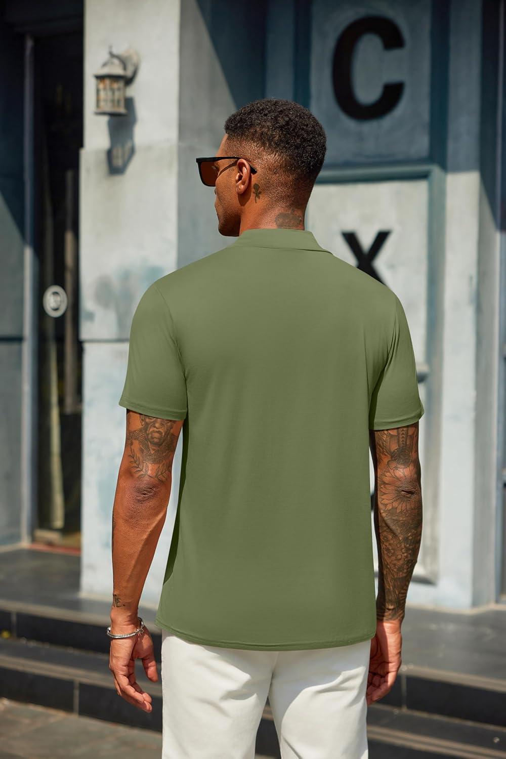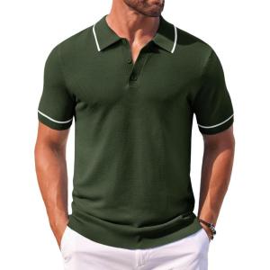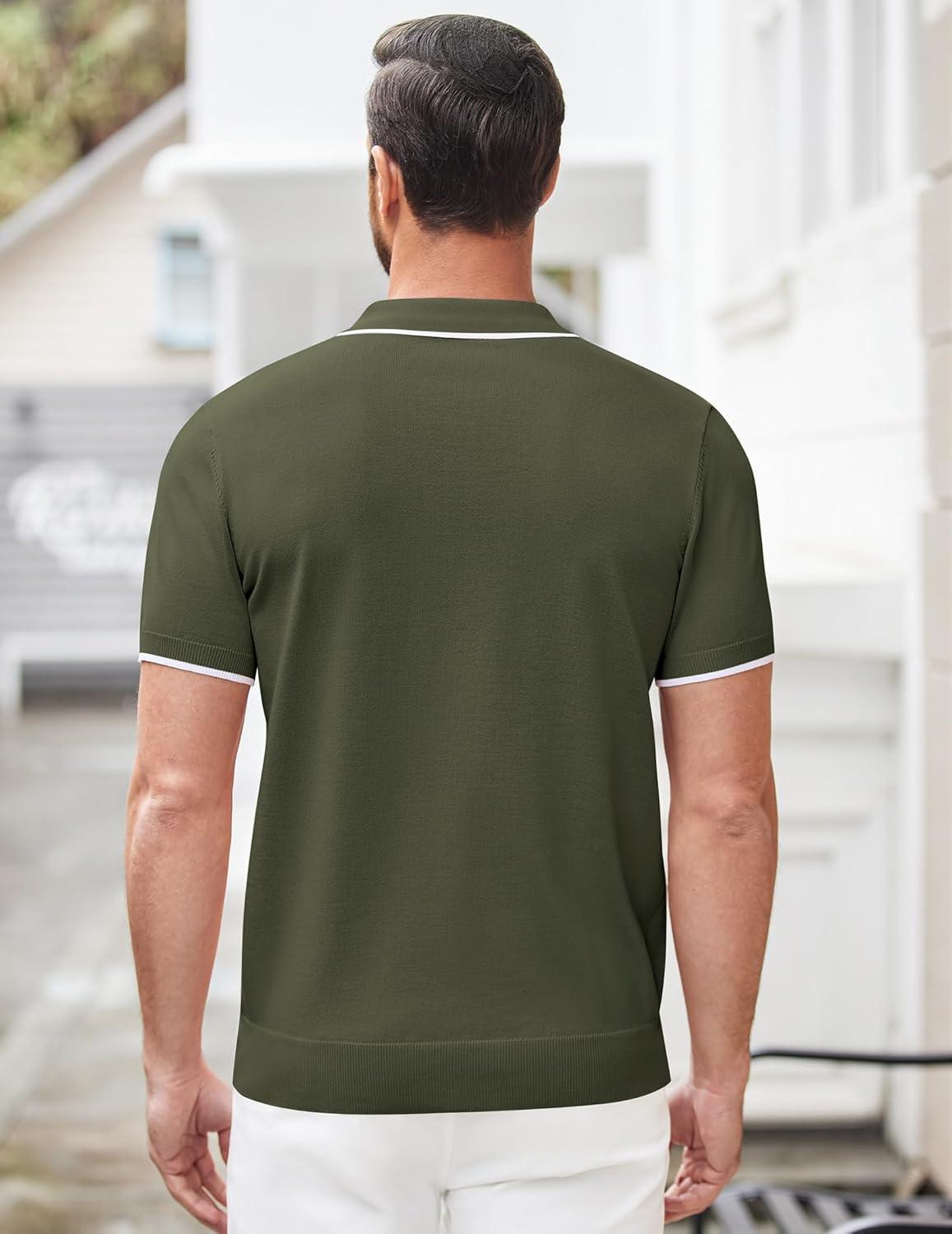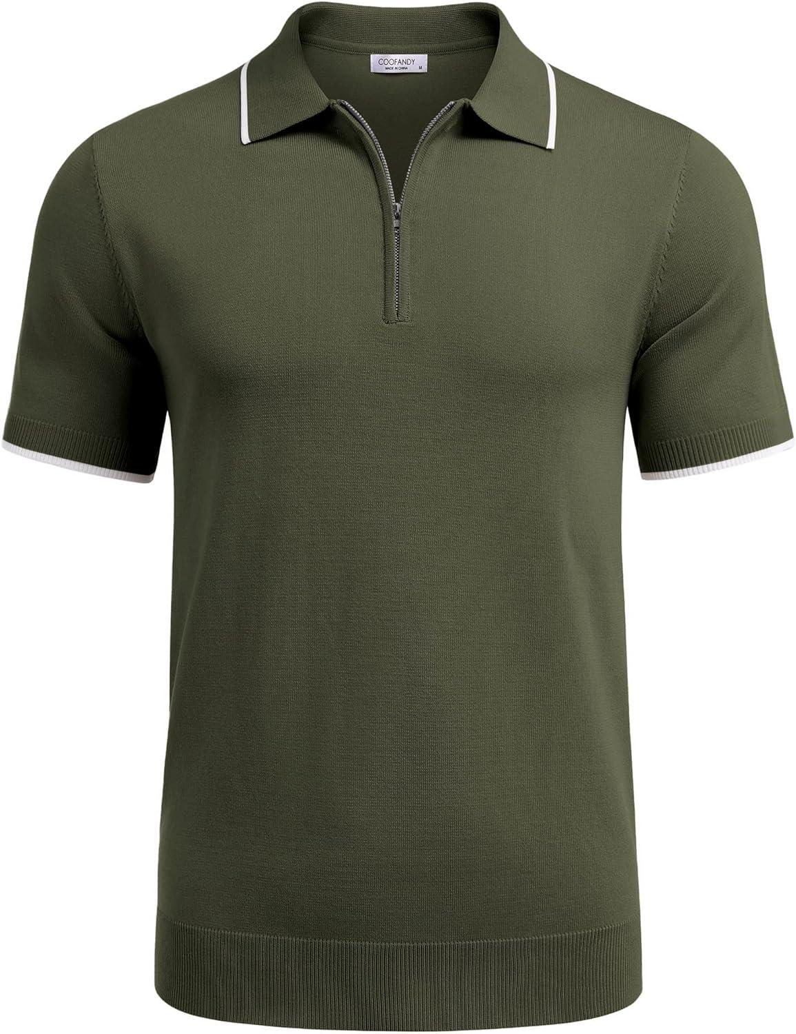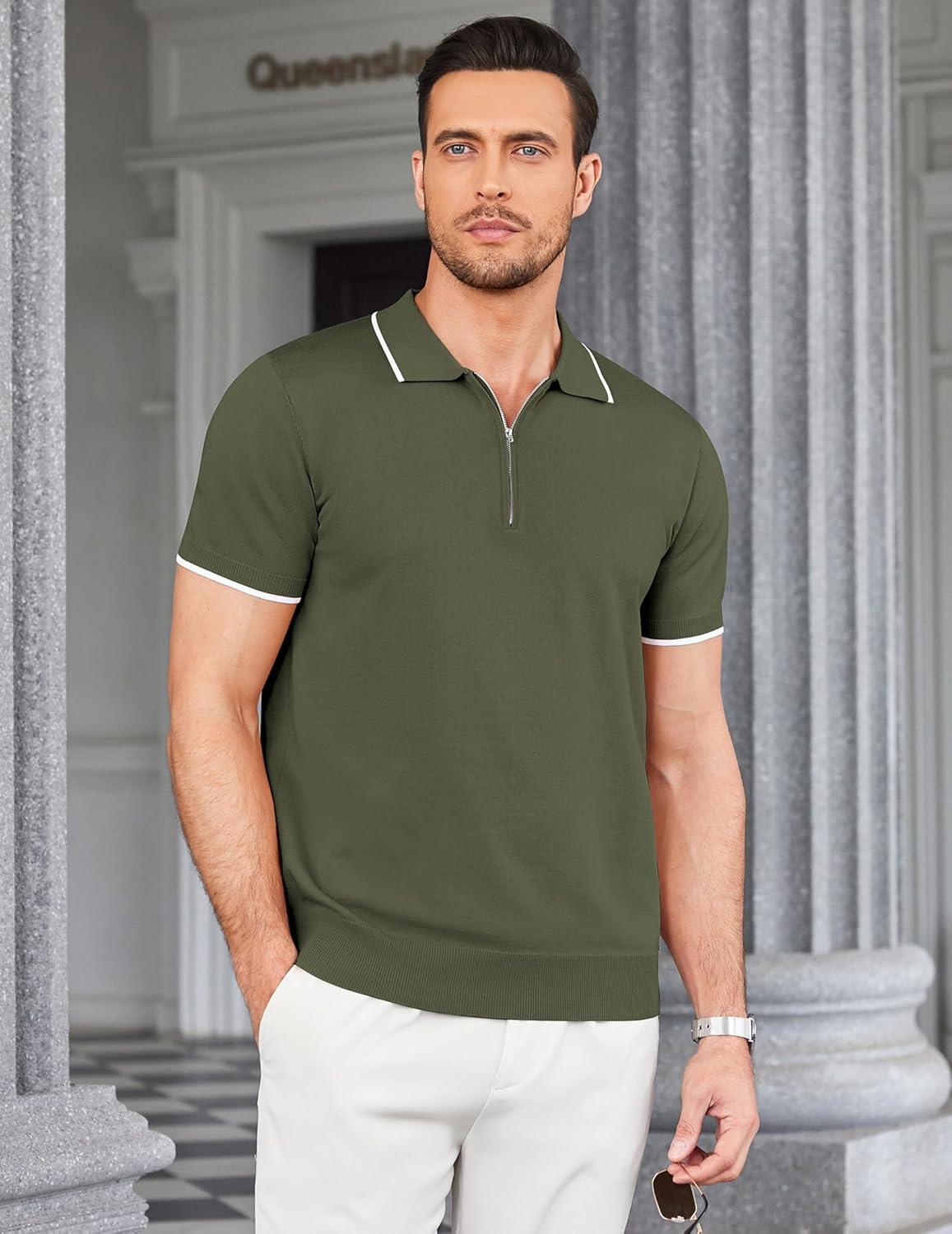 COOFANDY Men’s Zipper Polo Shirt Casual Knit Short Sleeve Polo T Shirt Classic Fit Shirts(Olive Green)