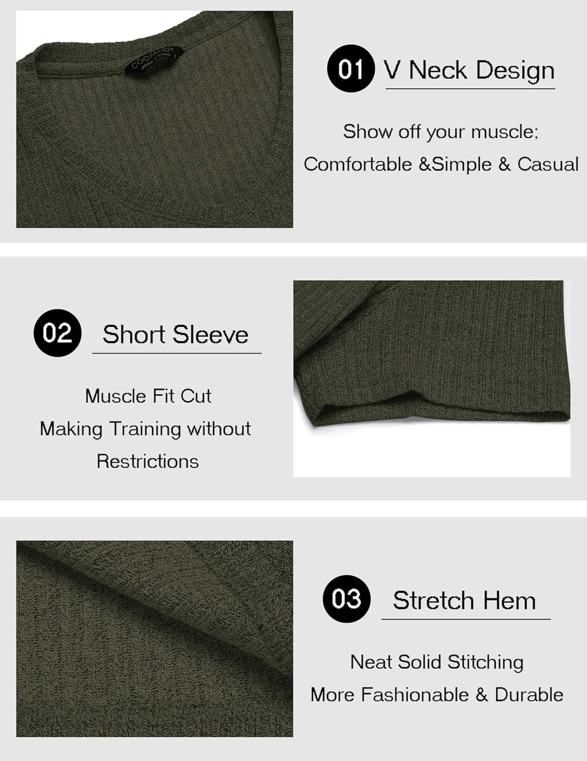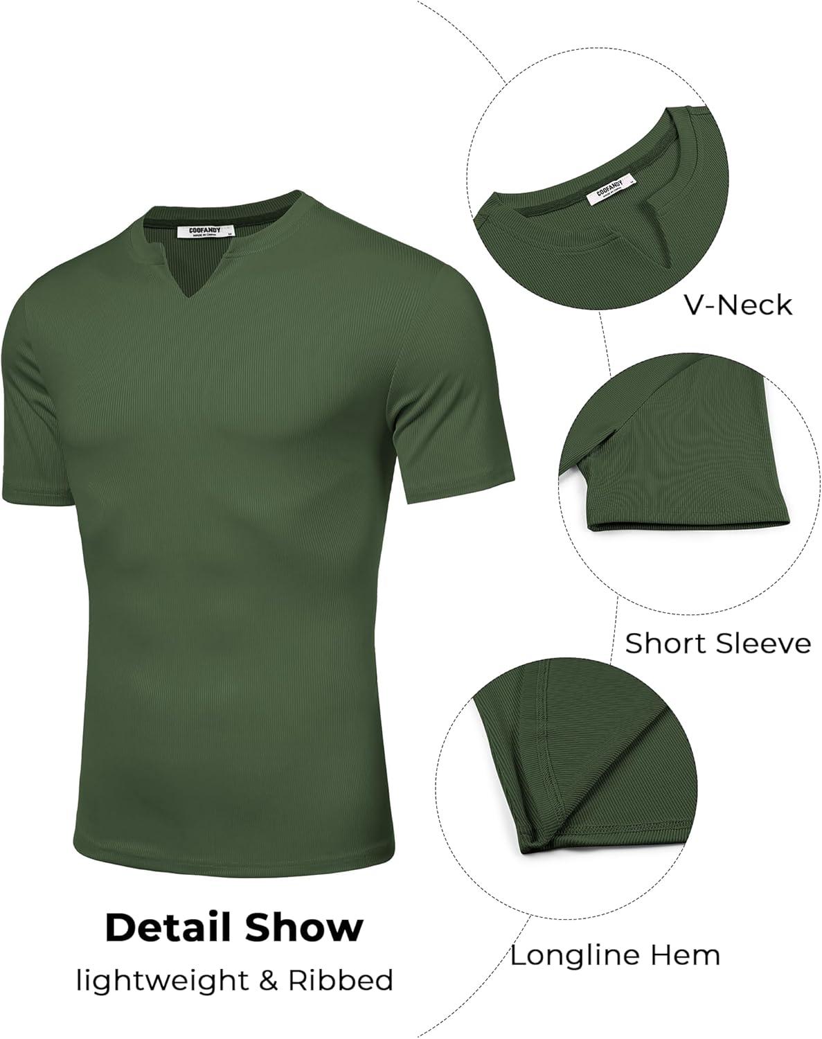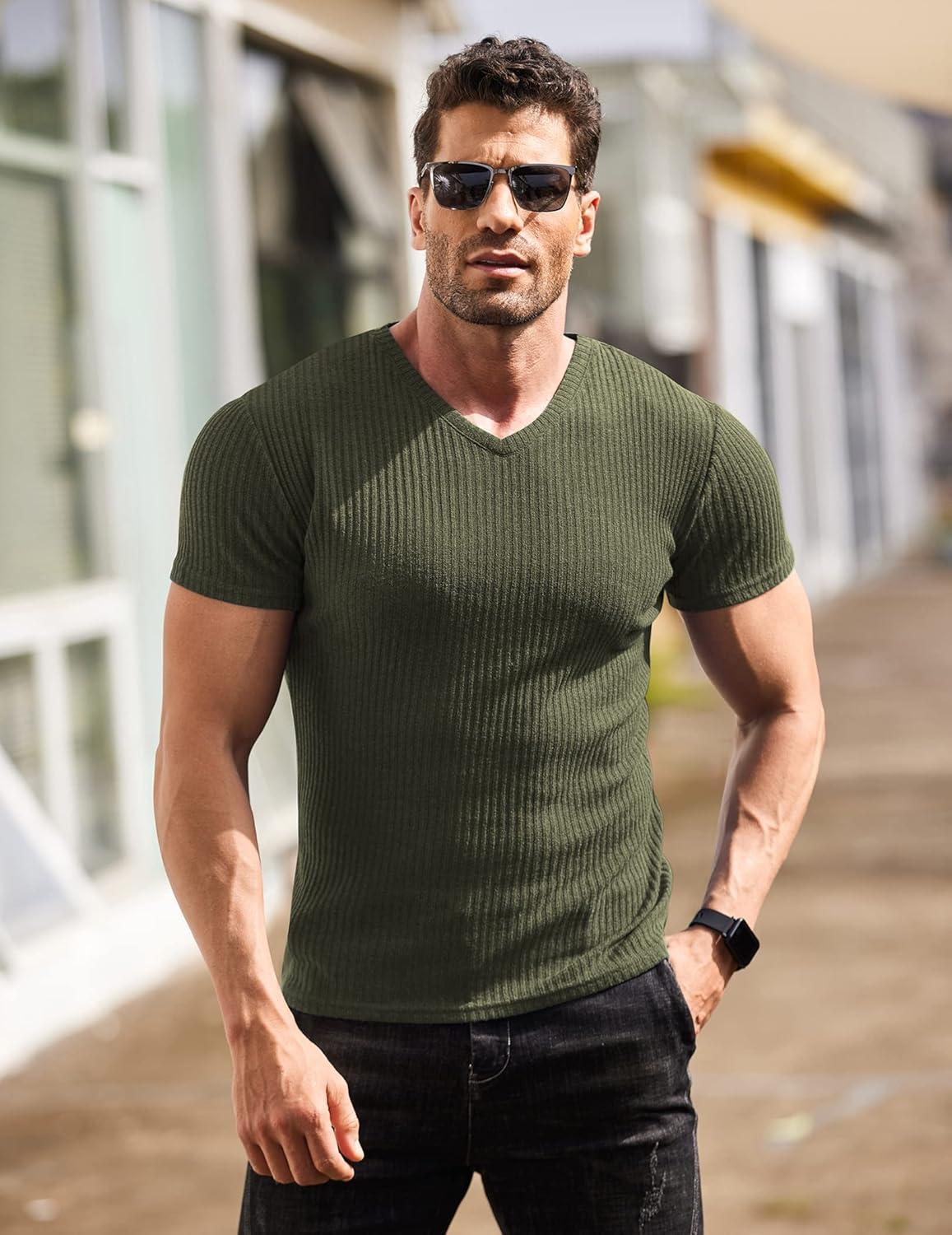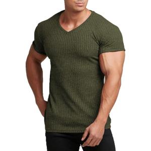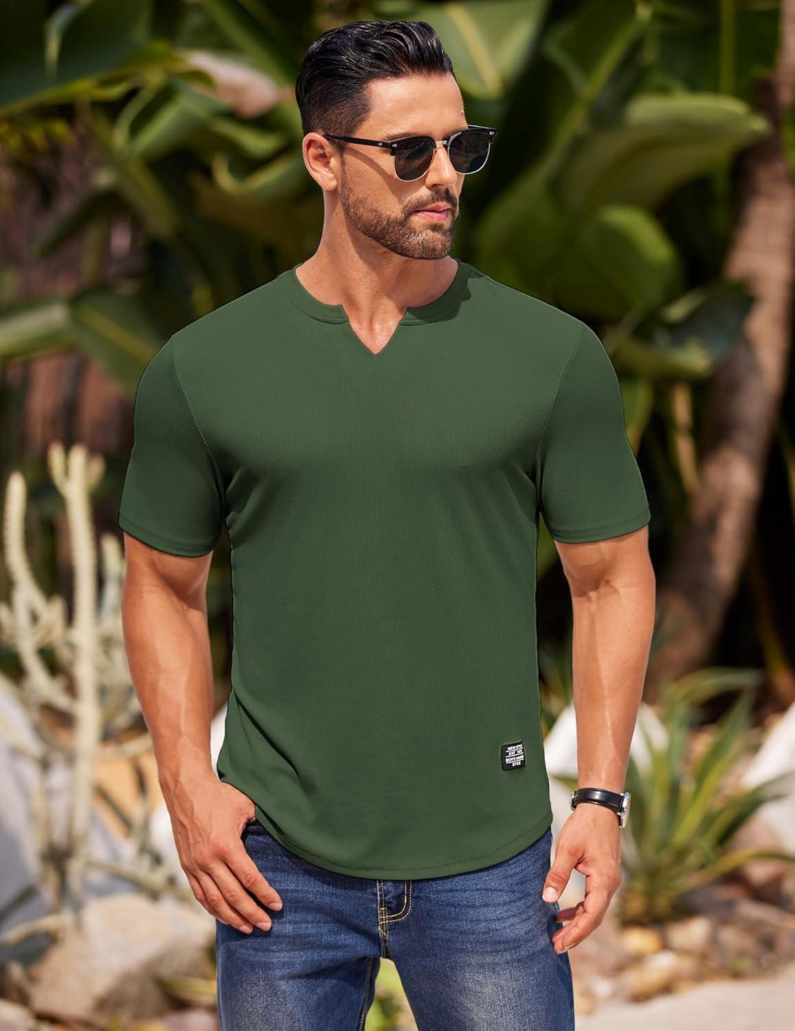 COOFANDY Mens Muscle T-Shirts V-Neck Slim Fit Workout Shirt Short Sleeve Longline Gym Athletic Tee Shirts(Army Green)