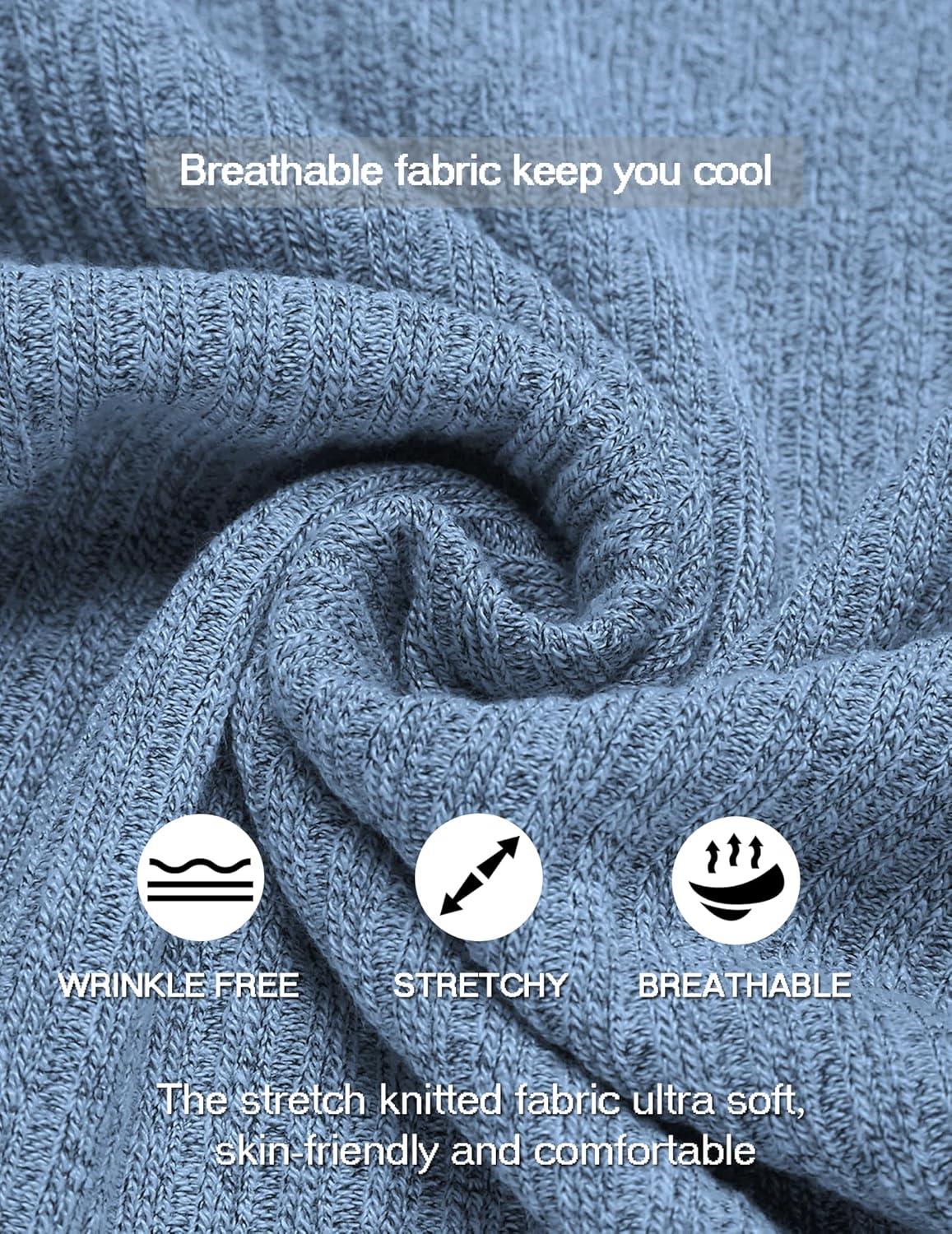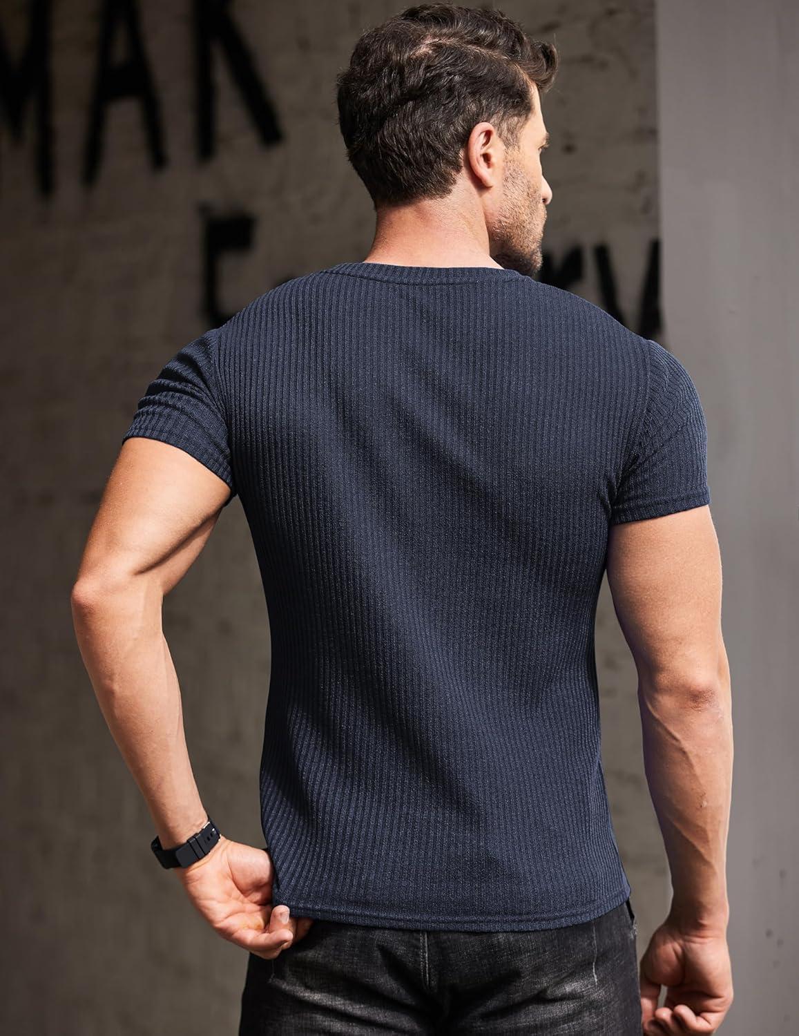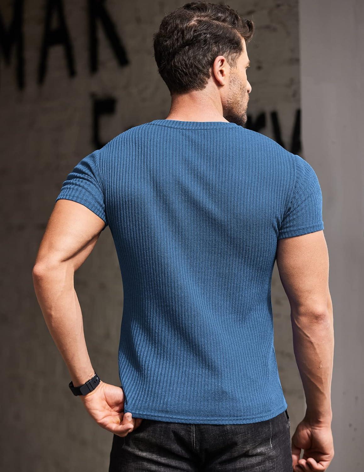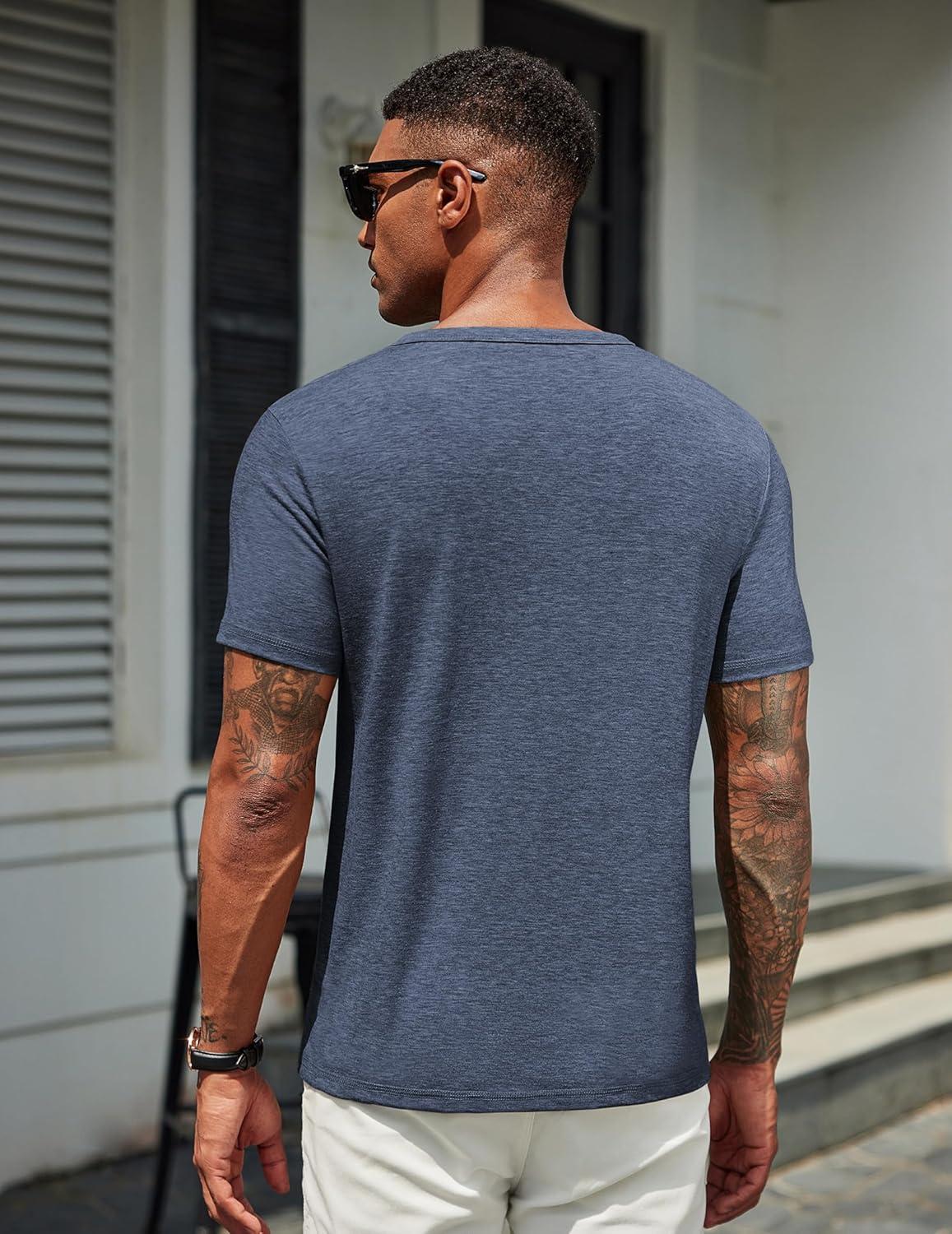 COOFANDY Mens Henley Shirts Short Sleeve Tshirt Basic Button Tees Summer Ribbed Pocket T Shirt Casual Stretch Tops(Light Blue)