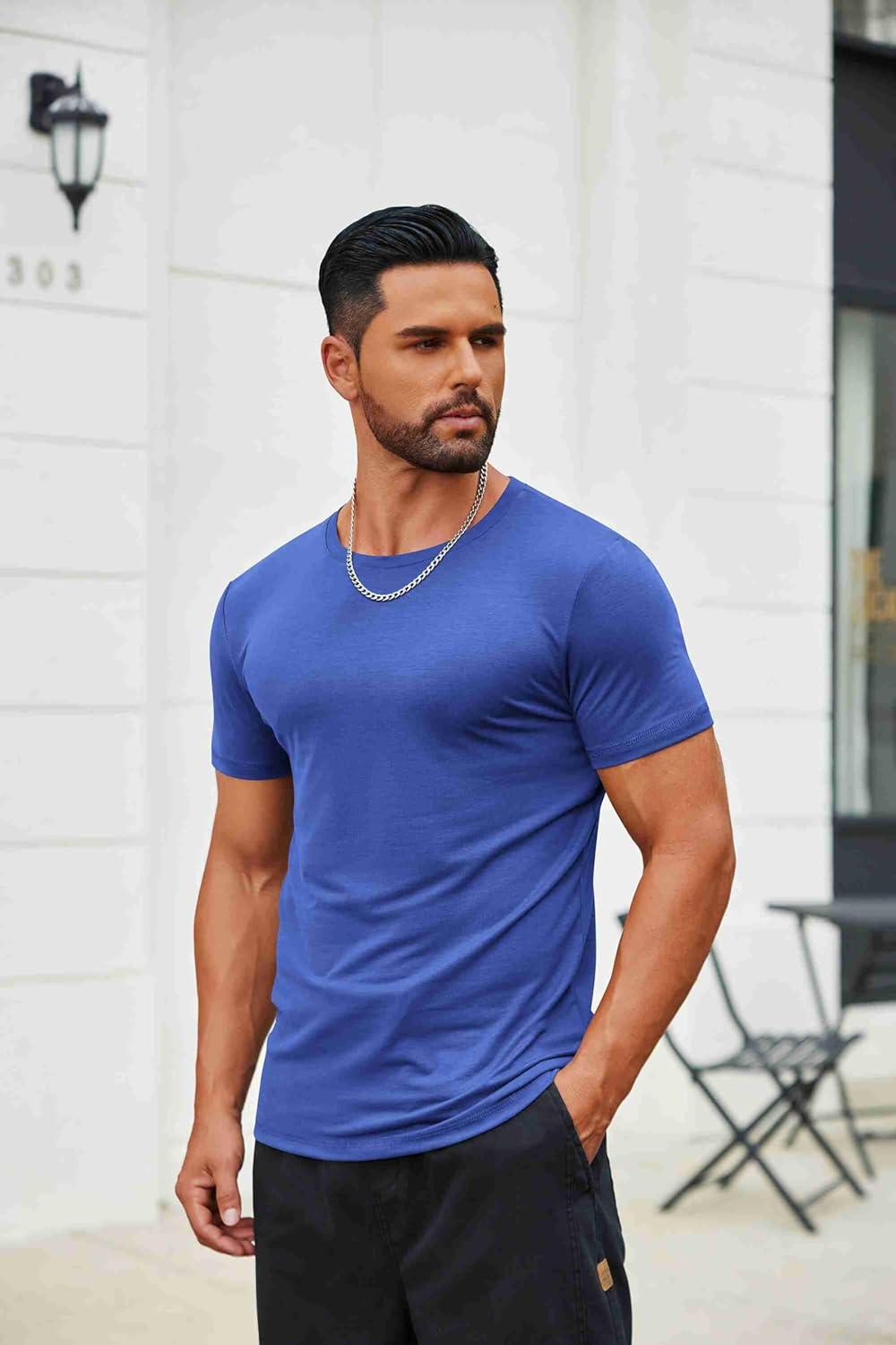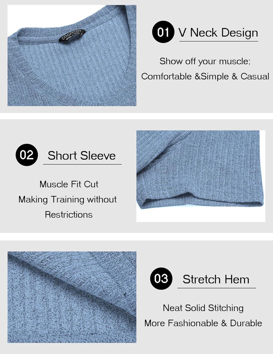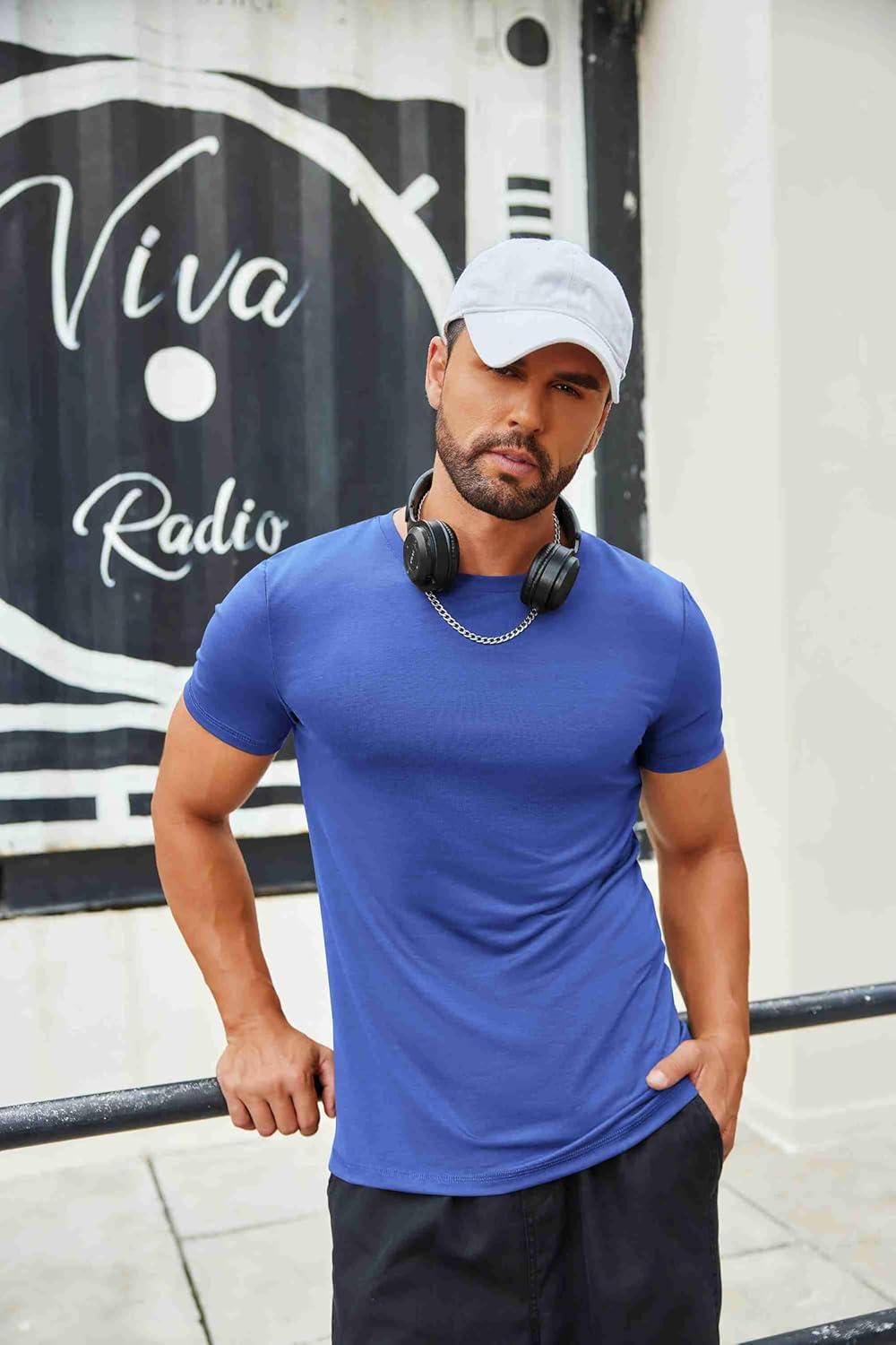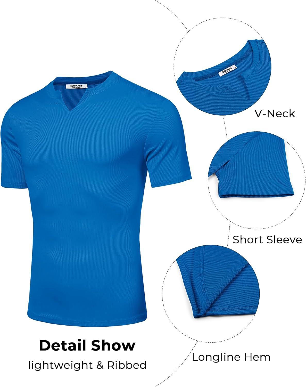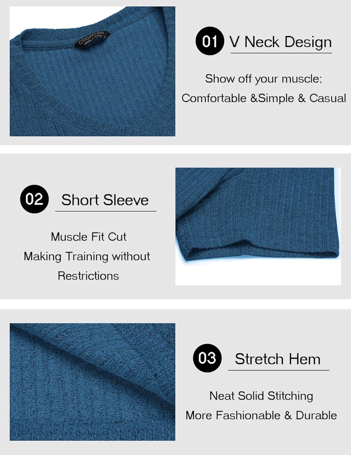 COOFANDY Mens Muscle T-Shirts V-Neck Slim Fit Workout Shirt Short Sleeve Longline Gym Athletic Tee Shirts(Blue)