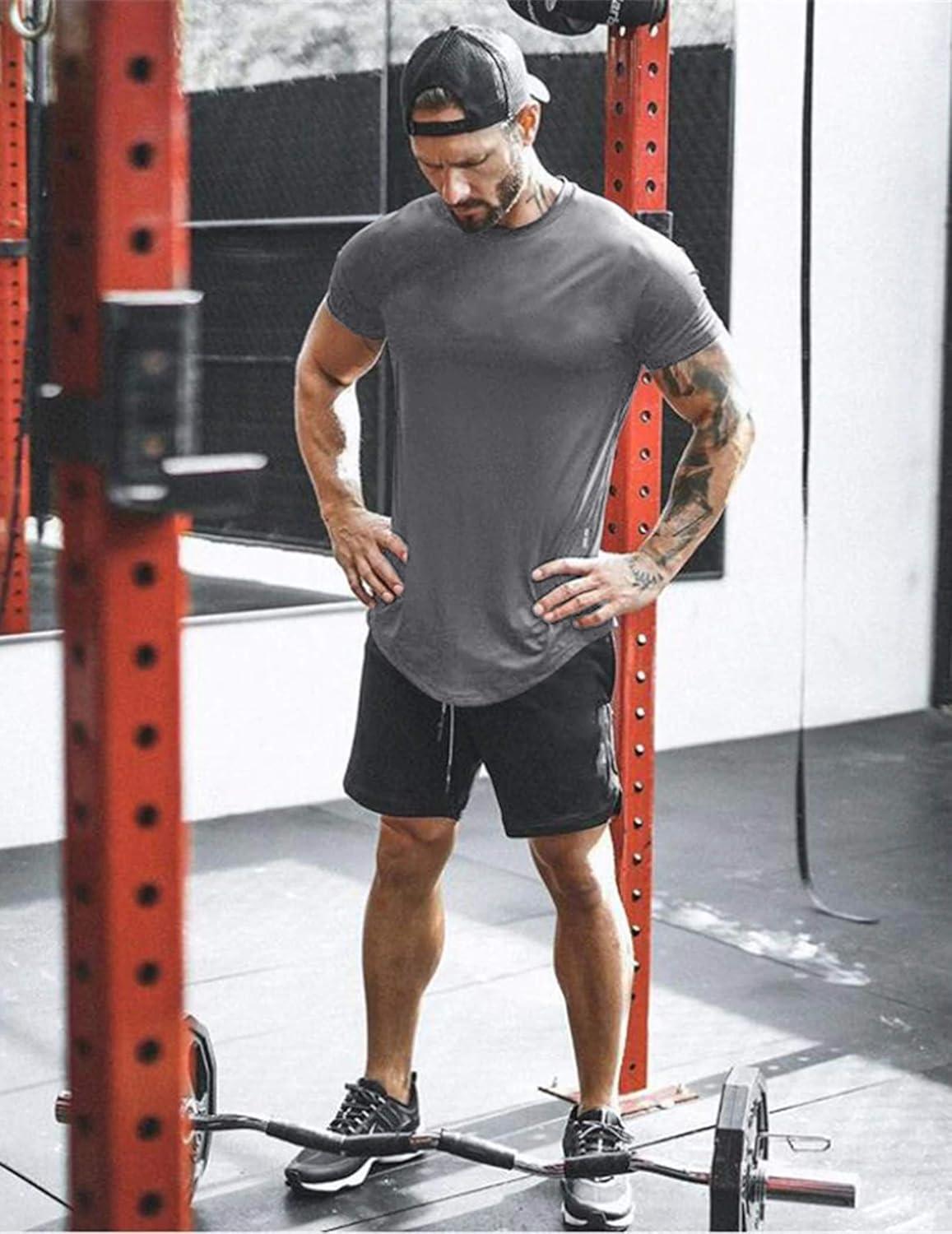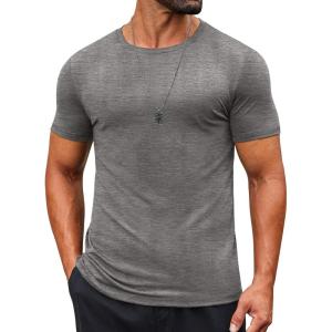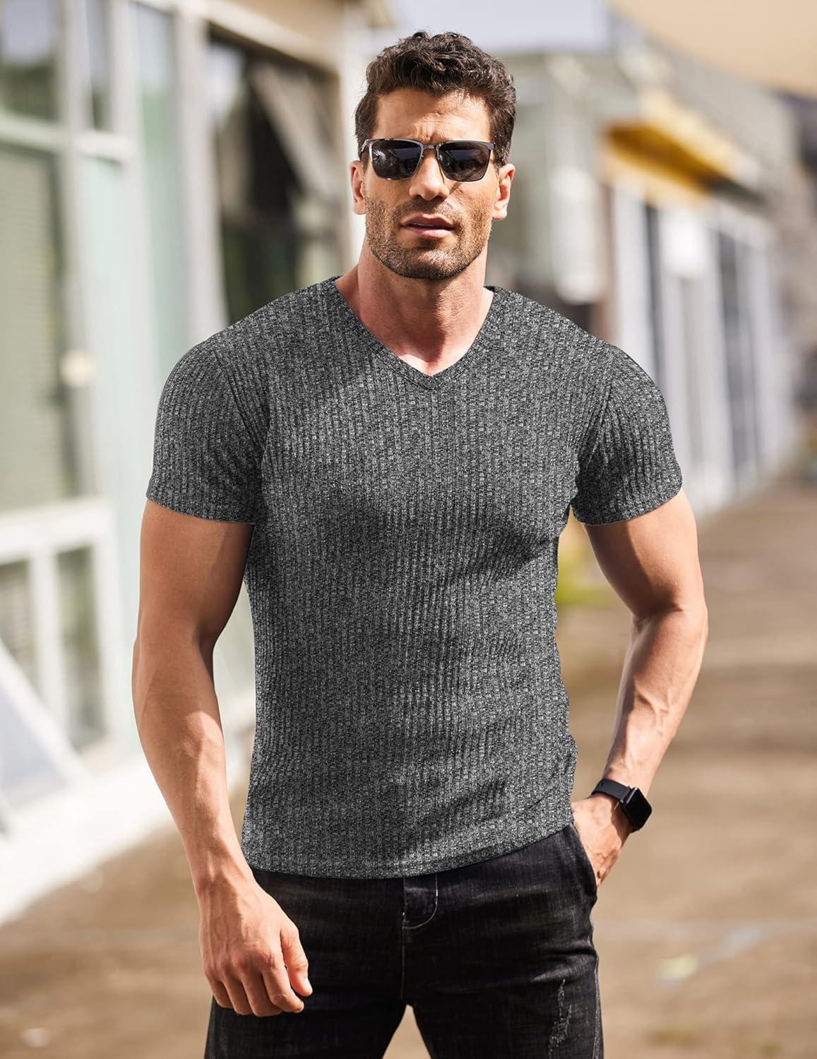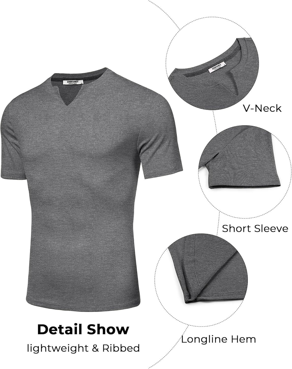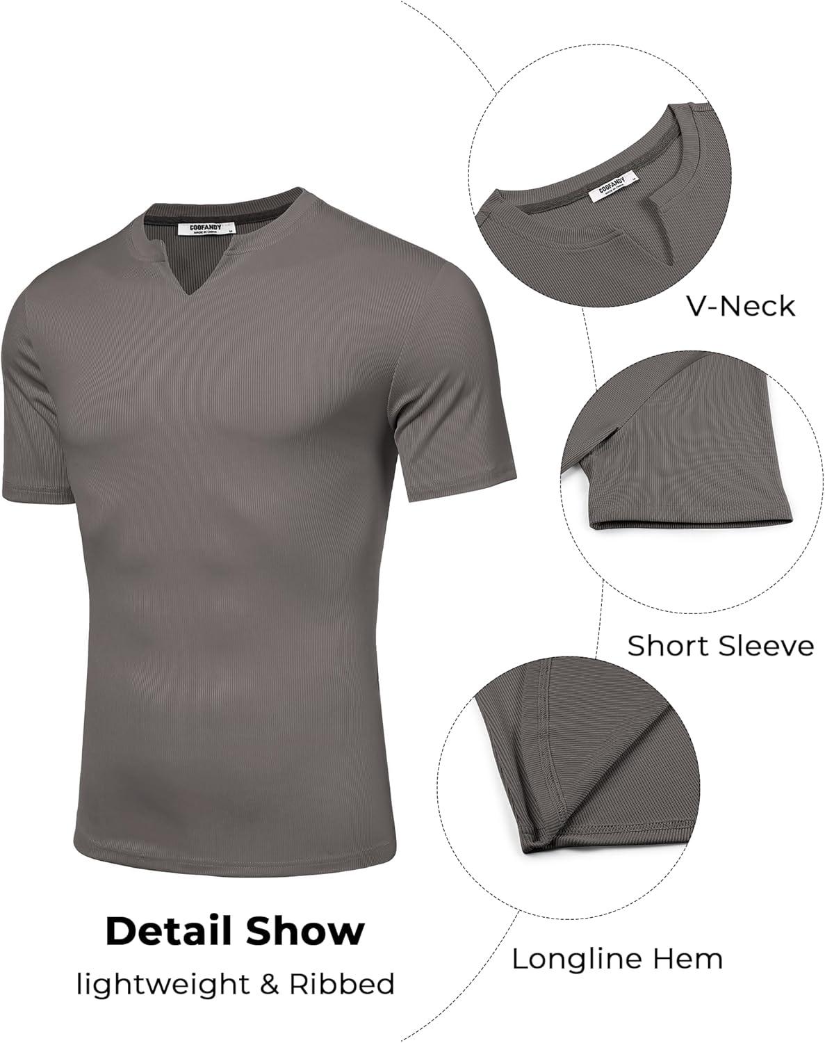 COOFANDY Mens Muscle T-Shirts V-Neck Slim Fit Workout Shirt Short Sleeve Longline Gym Athletic Tee Shirts(Dark Grey)