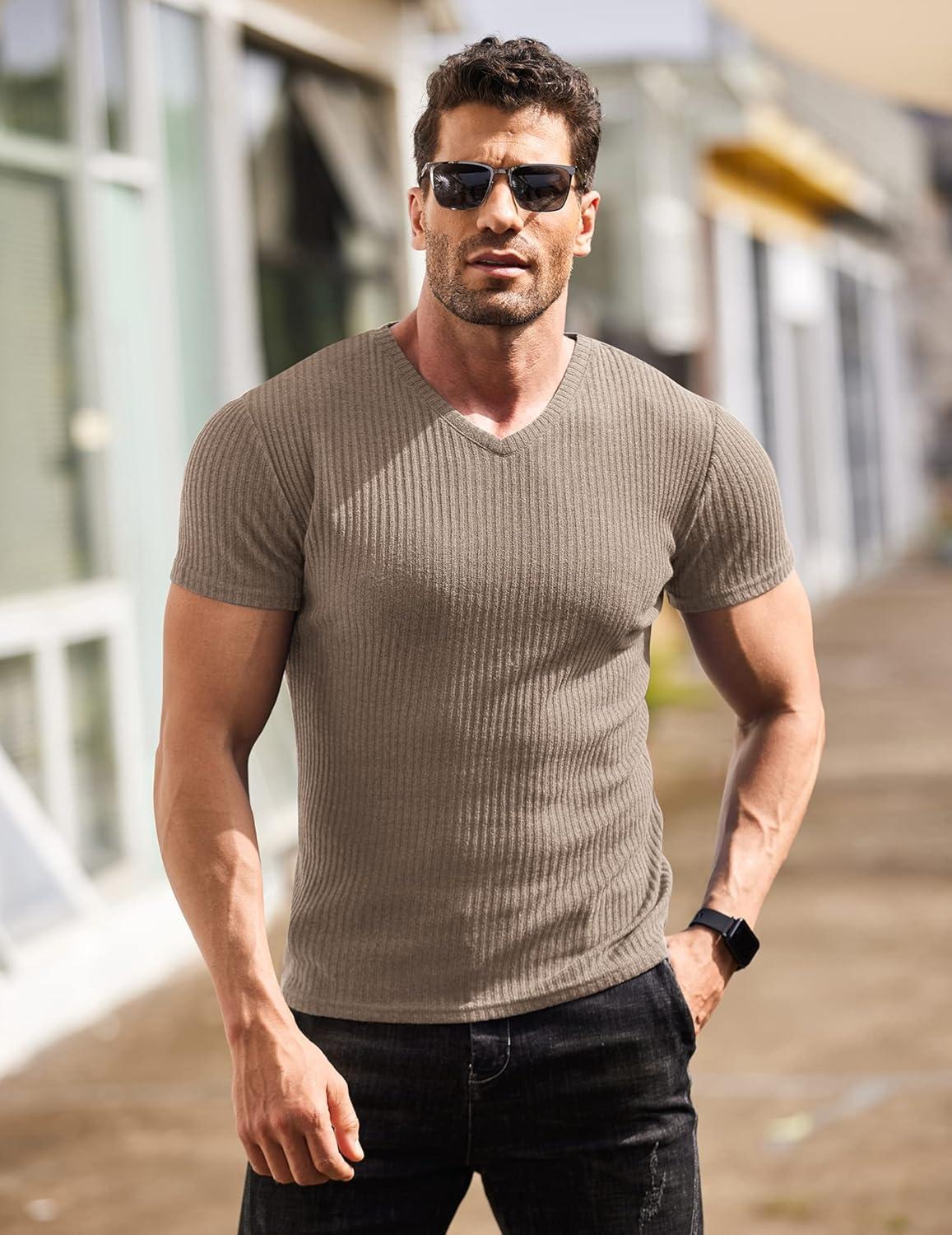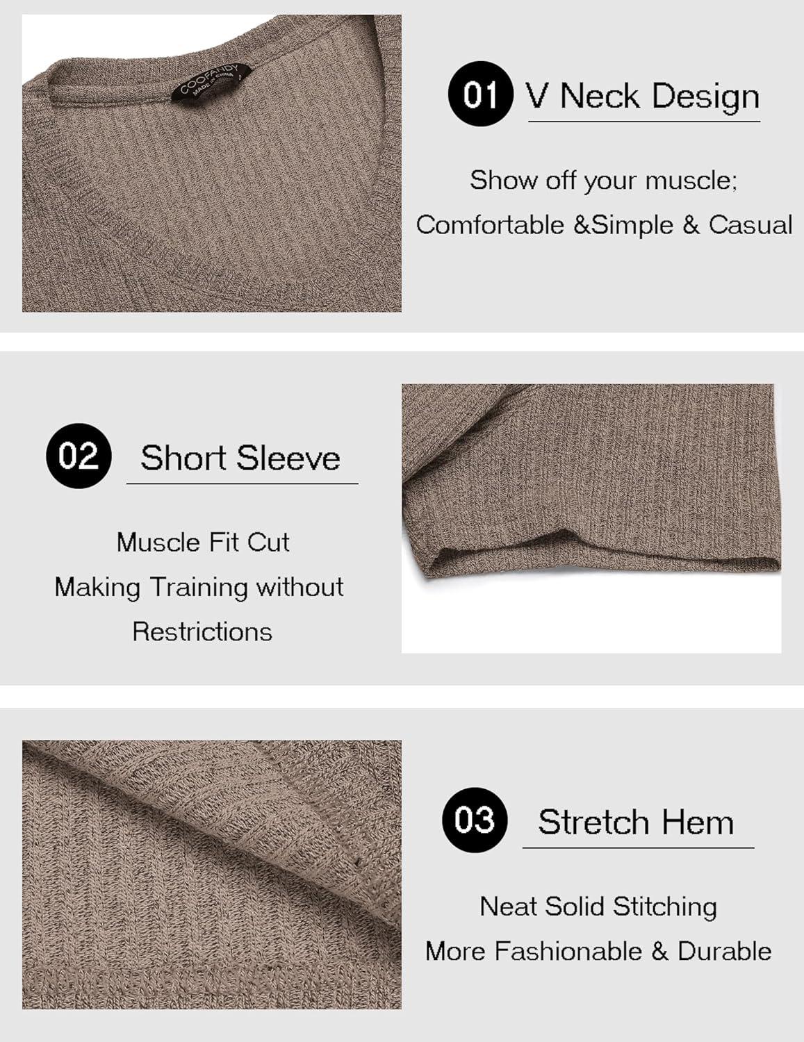 COOFANDY Mens Muscle T-Shirts V-Neck Slim Fit Workout Shirt Short Sleeve Longline Gym Athletic Tee Shirts(Khaki)