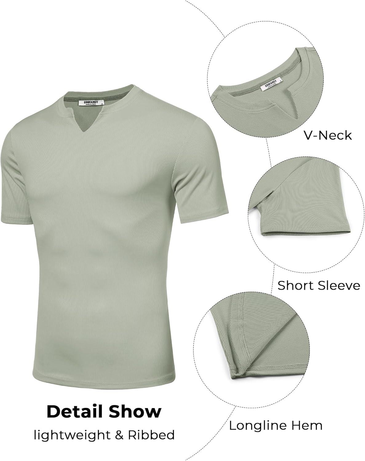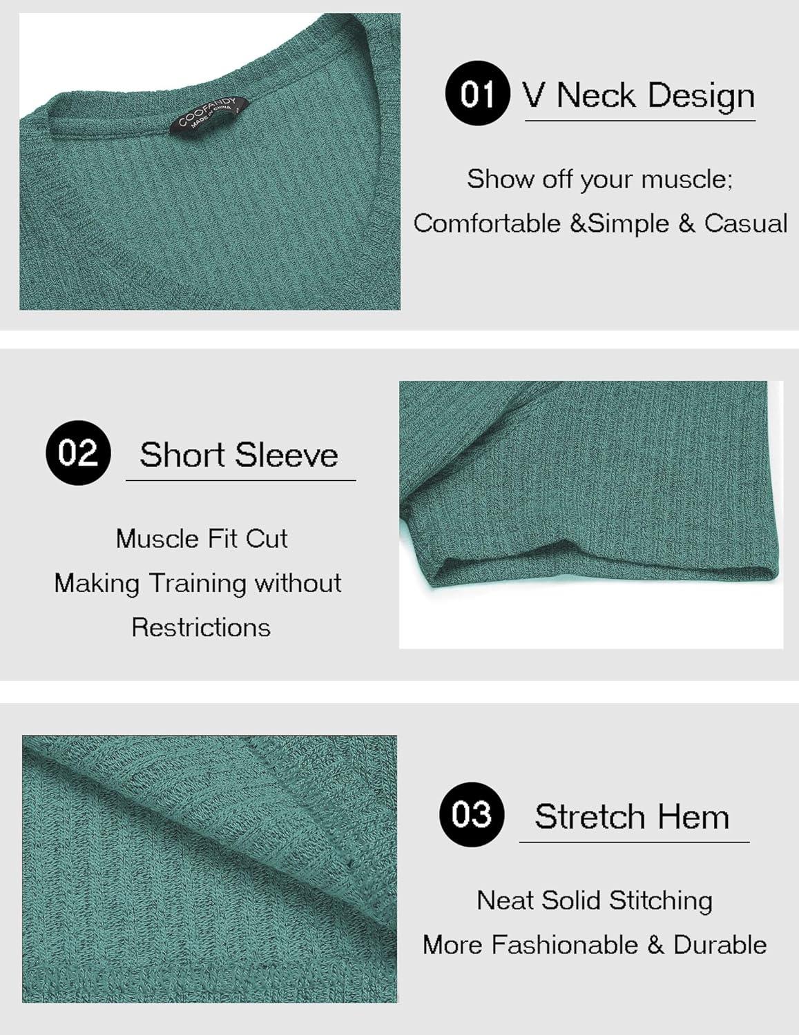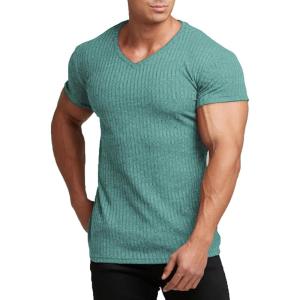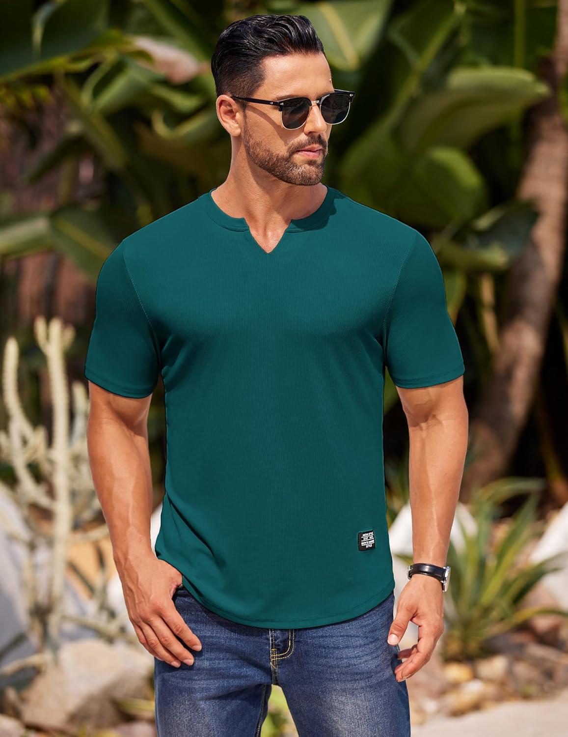 COOFANDY Mens Muscle T-Shirts V-Neck Slim Fit Workout Shirt Short Sleeve Longline Gym Athletic Tee Shirts(Green)