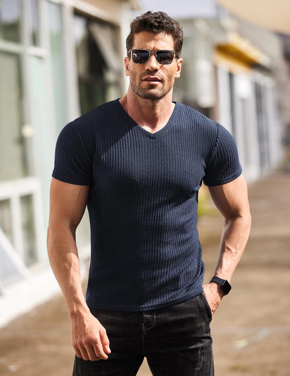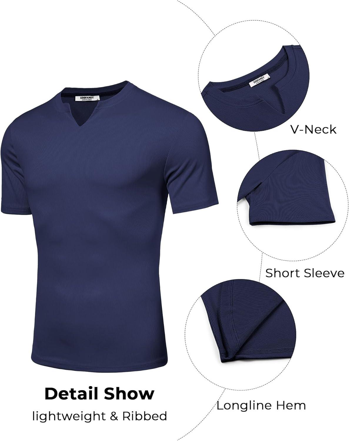 COOFANDY Mens Muscle T-Shirts V-Neck Slim Fit Workout Shirt Short Sleeve Longline Gym Athletic Tee Shirts(Navy Blue)
