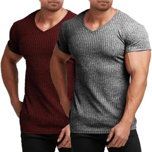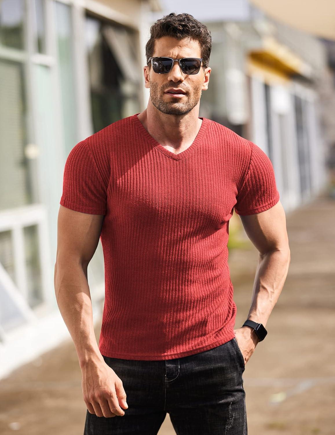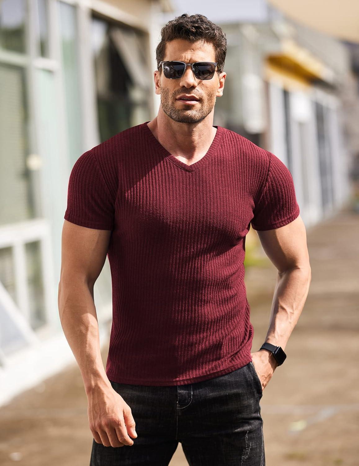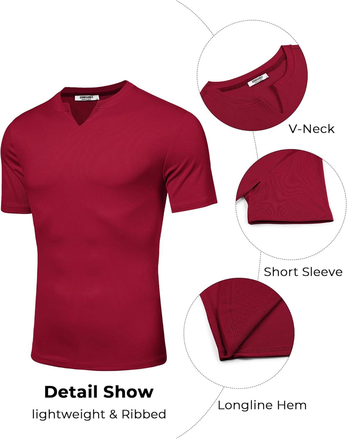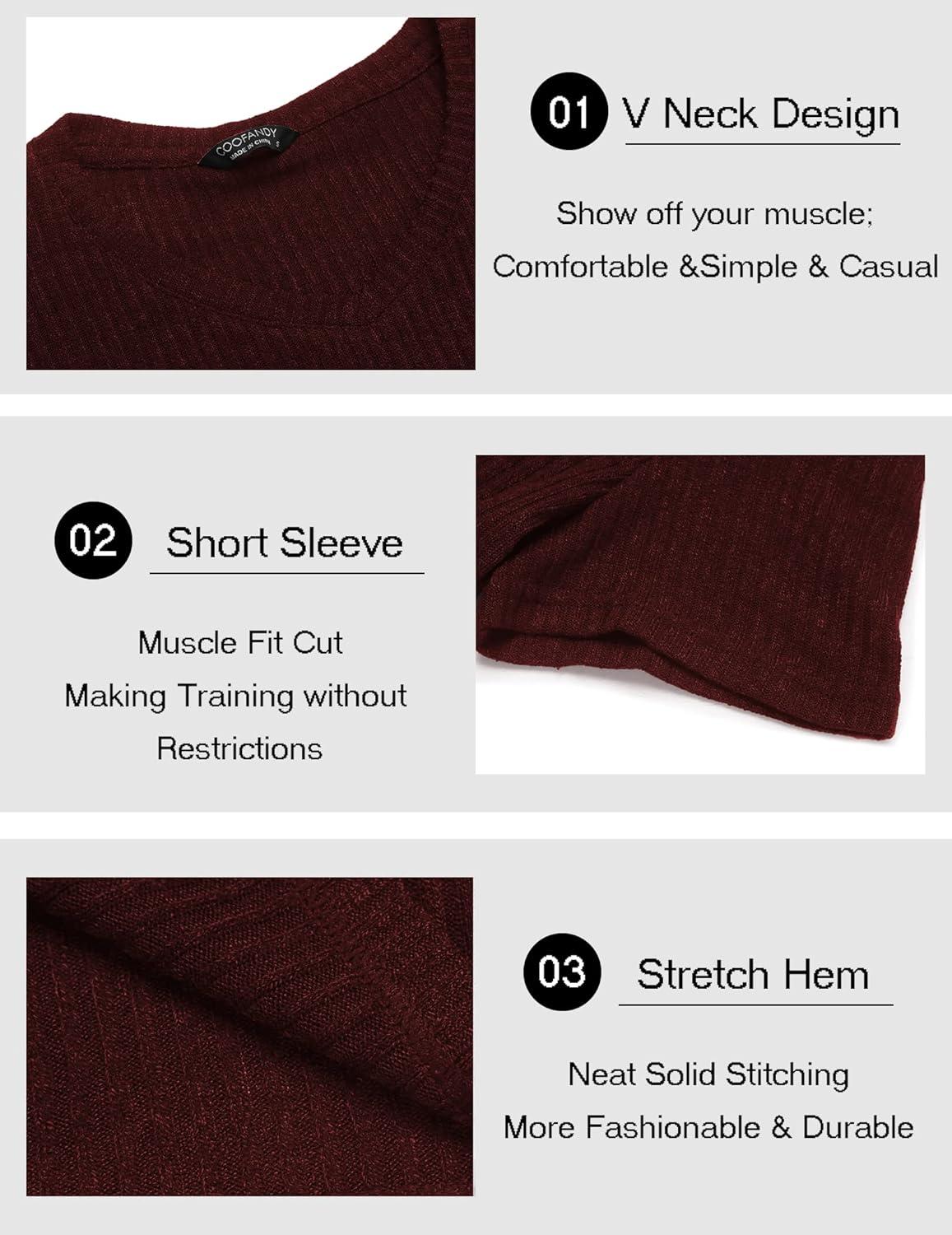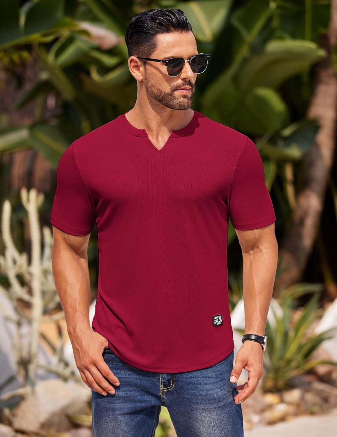 COOFANDY Mens Muscle T-Shirts V-Neck Slim Fit Workout Shirt Short Sleeve Longline Gym Athletic Tee Shirts(Wine Red)