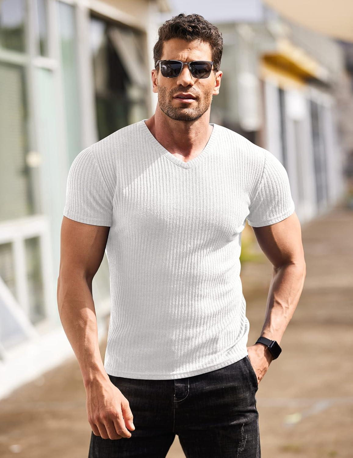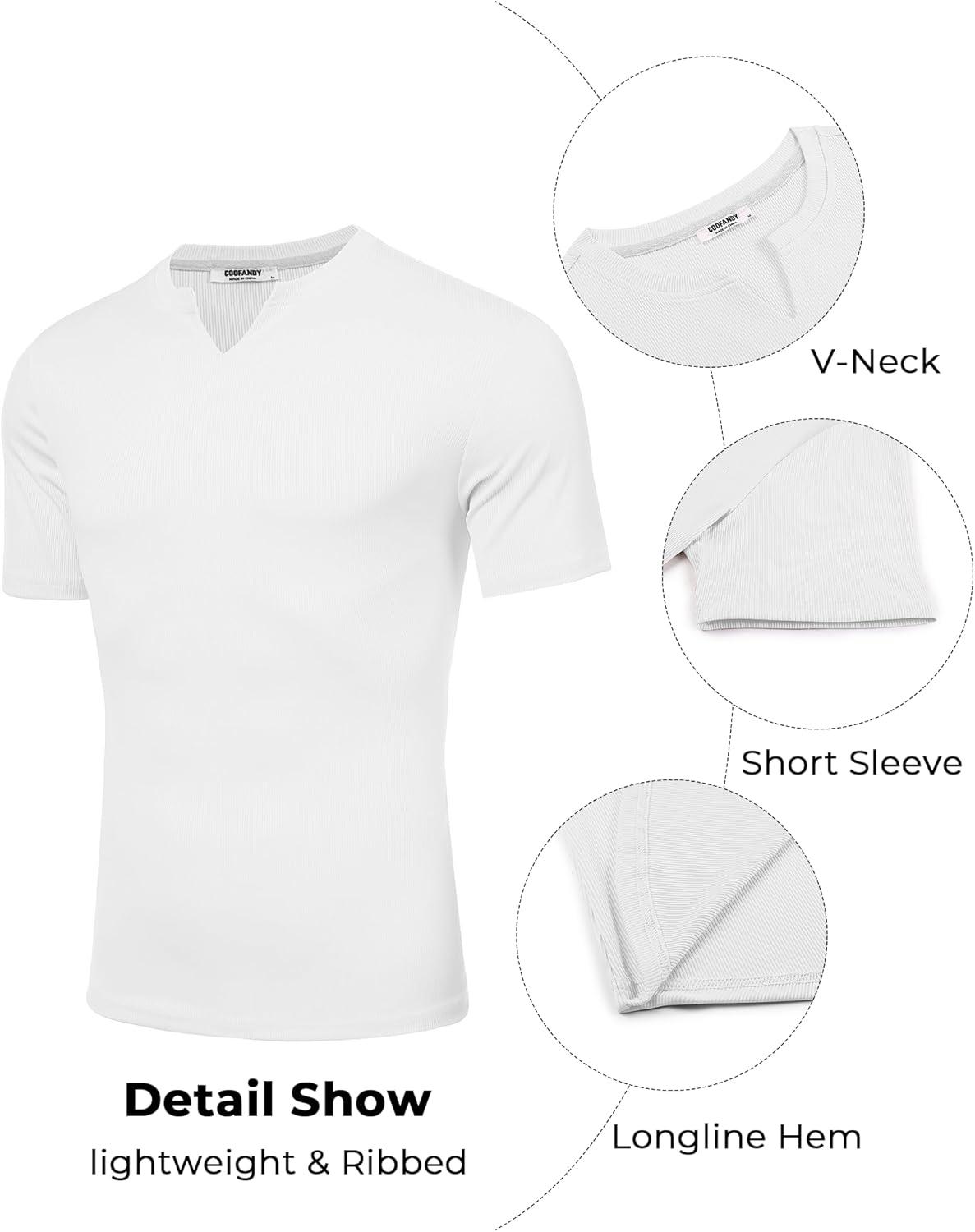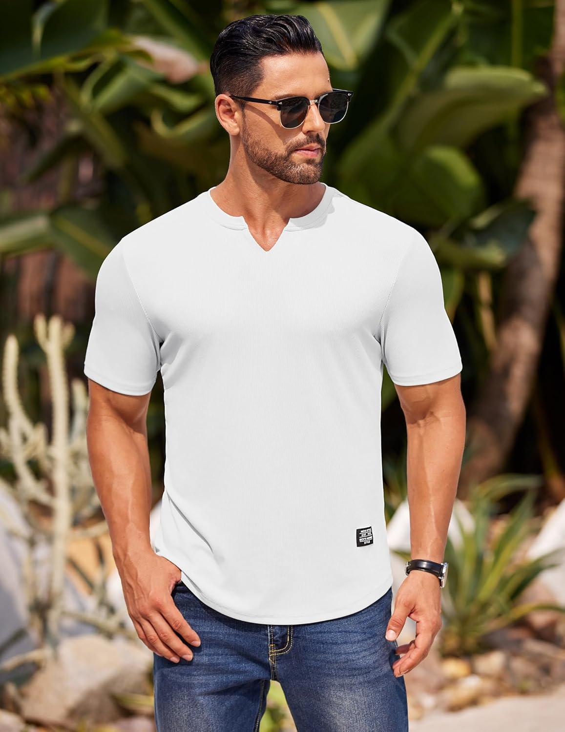 COOFANDY Mens Muscle T-Shirts V-Neck Slim Fit Workout Shirt Short Sleeve Longline Gym Athletic Tee Shirts(A-white)