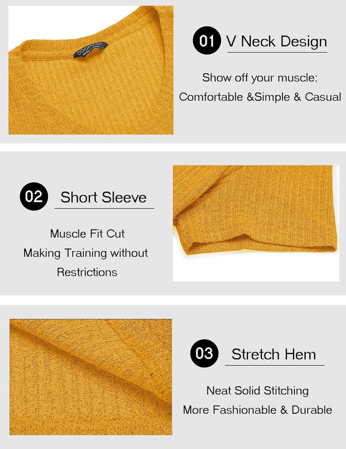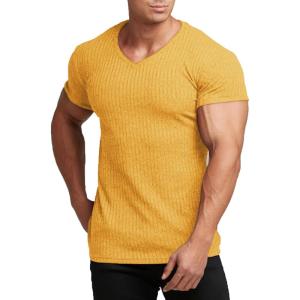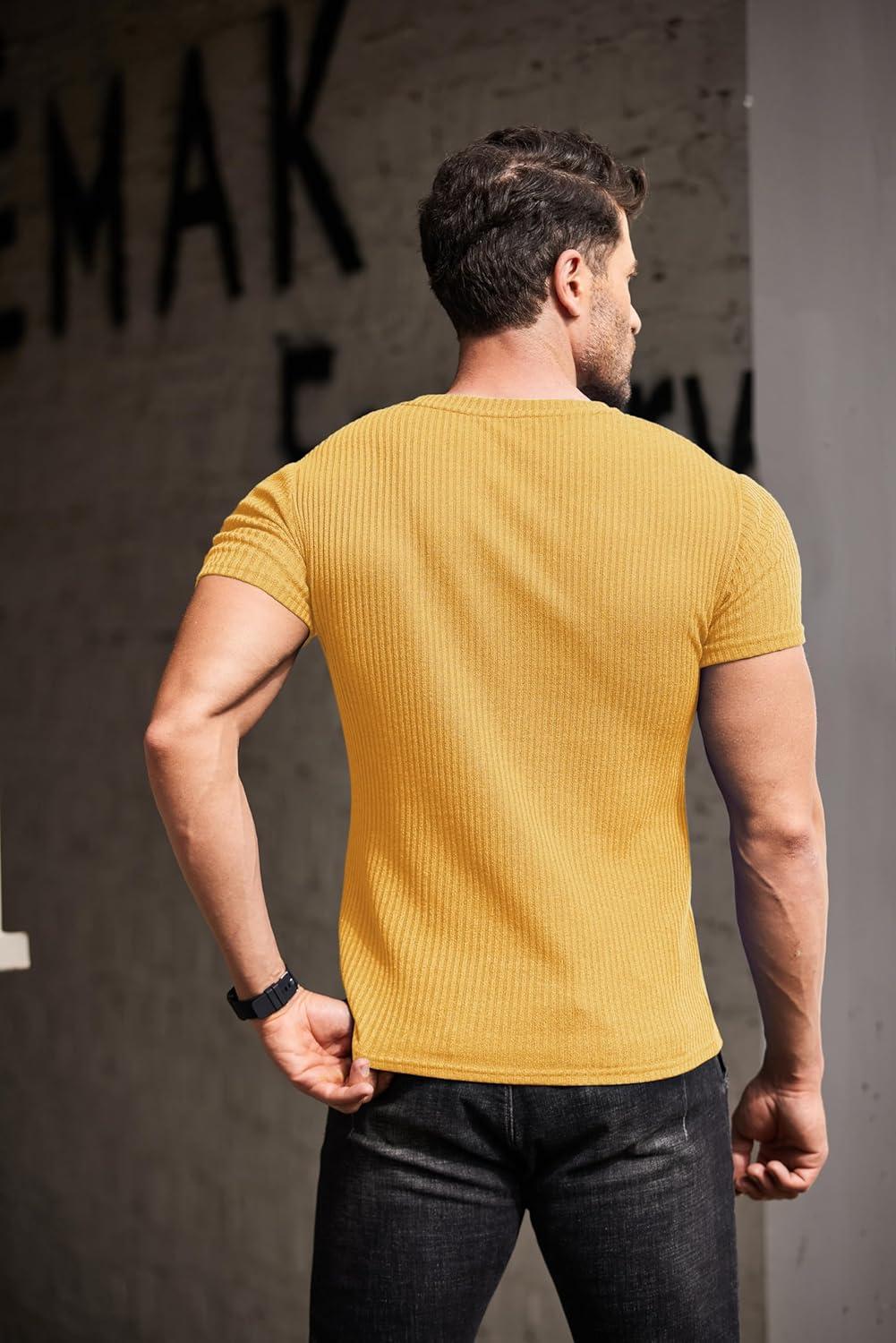 COOFANDY Mens Mock Turtleneck Shirts Short Sleeve Casual Basic T-Shirts Ribbed Solid Pullover Tops(Yellow)