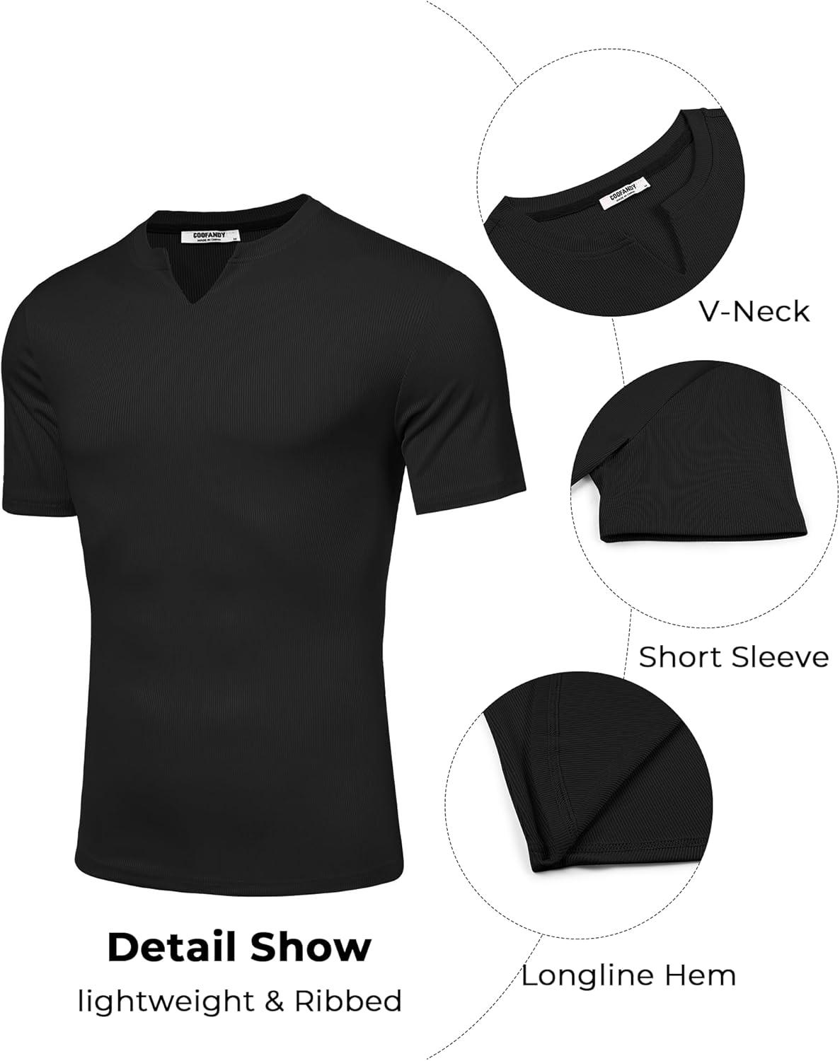 COOFANDY Mens Muscle T-Shirts V-Neck Slim Fit Workout Shirt Short Sleeve Longline Gym Athletic Tee Shirts(A-black)