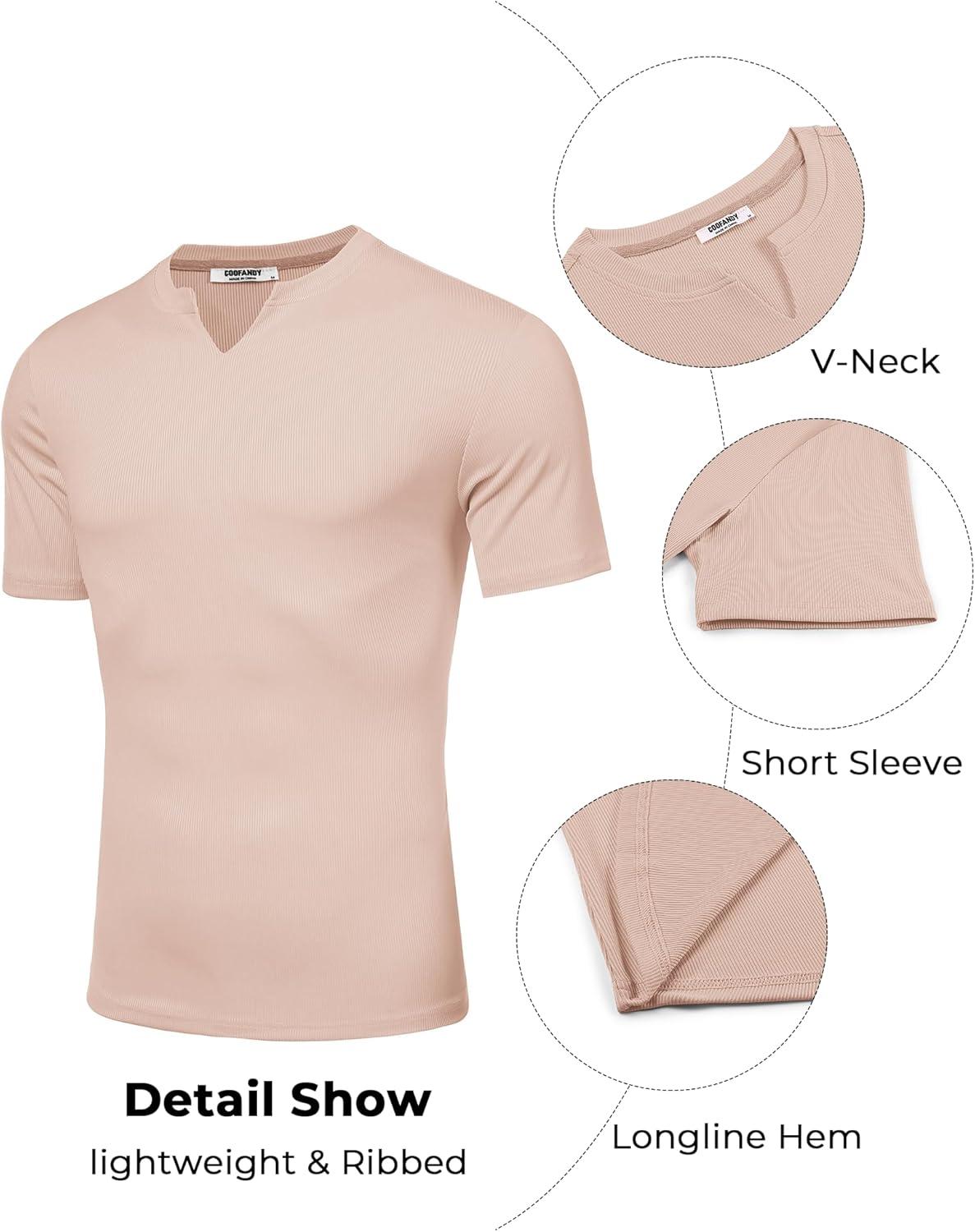 COOFANDY Mens Cotton Henley T-Shirts Short Sleeve Button Casual Basic Tees Work Shirts with Split Side(Apricot)