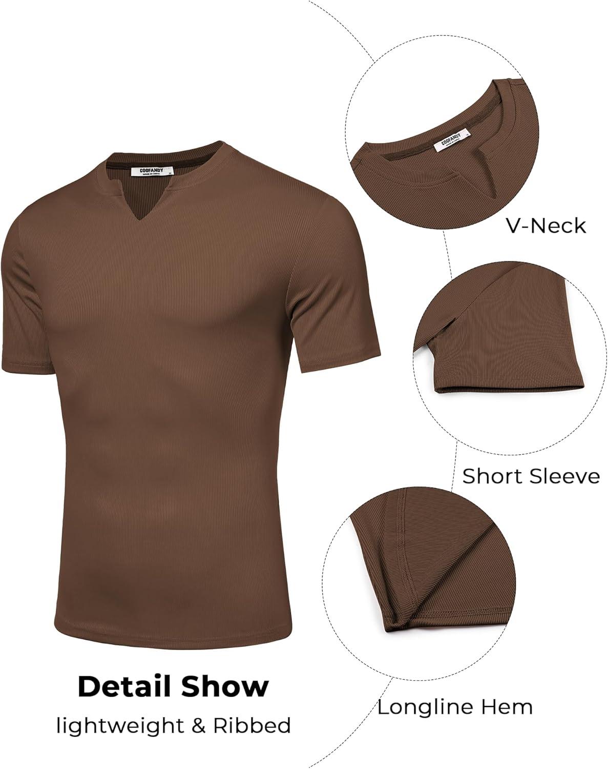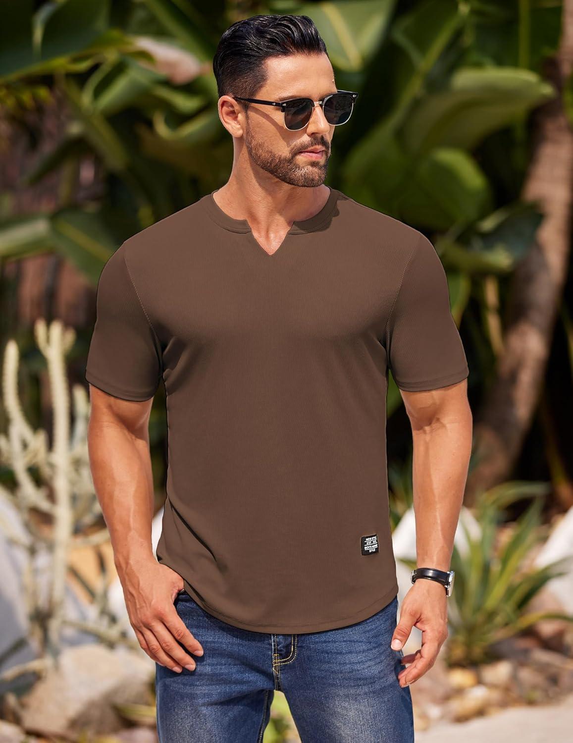 COOFANDY Mens Muscle T-Shirts V-Neck Slim Fit Workout Shirt Short Sleeve Longline Gym Athletic Tee Shirts(Brown)