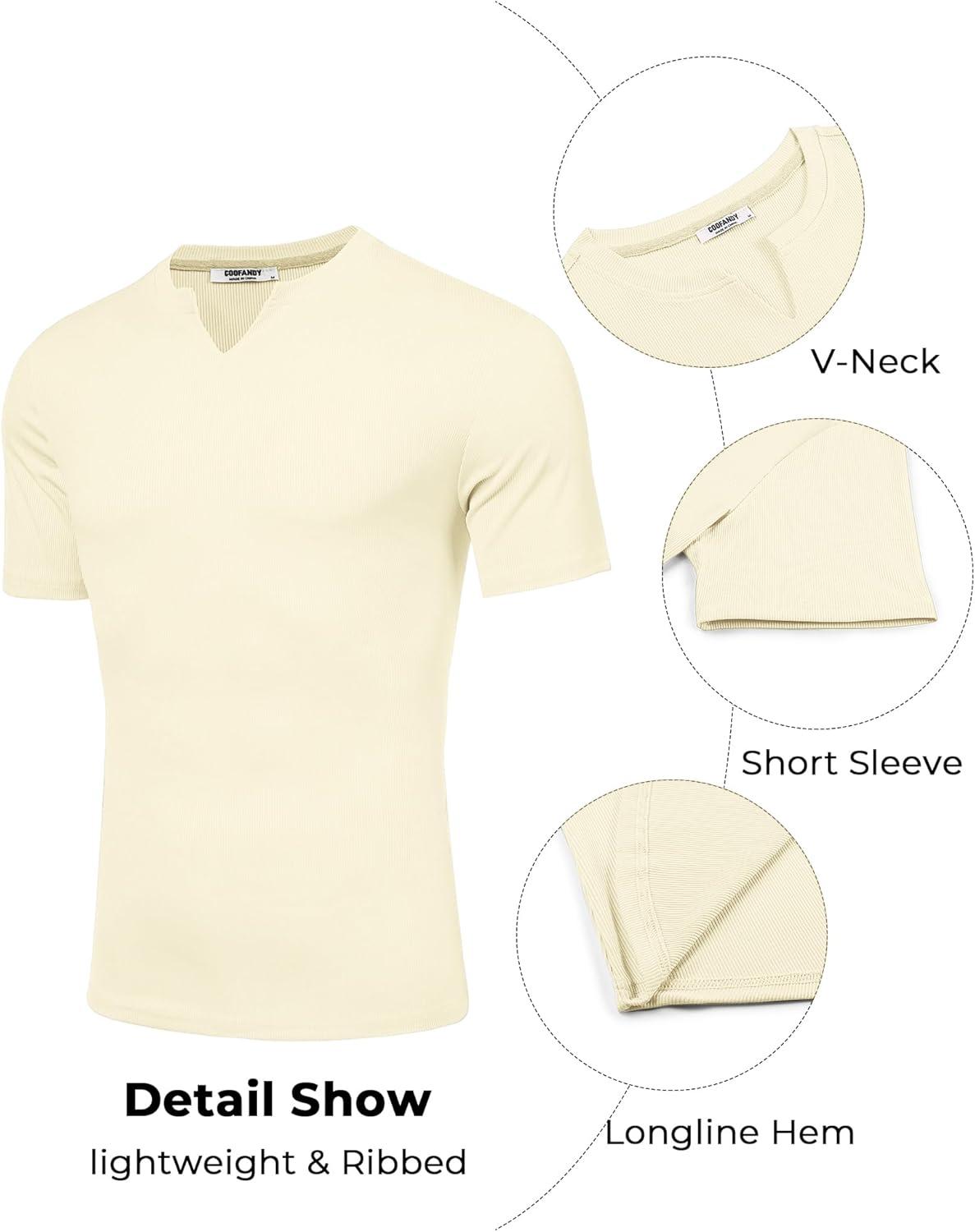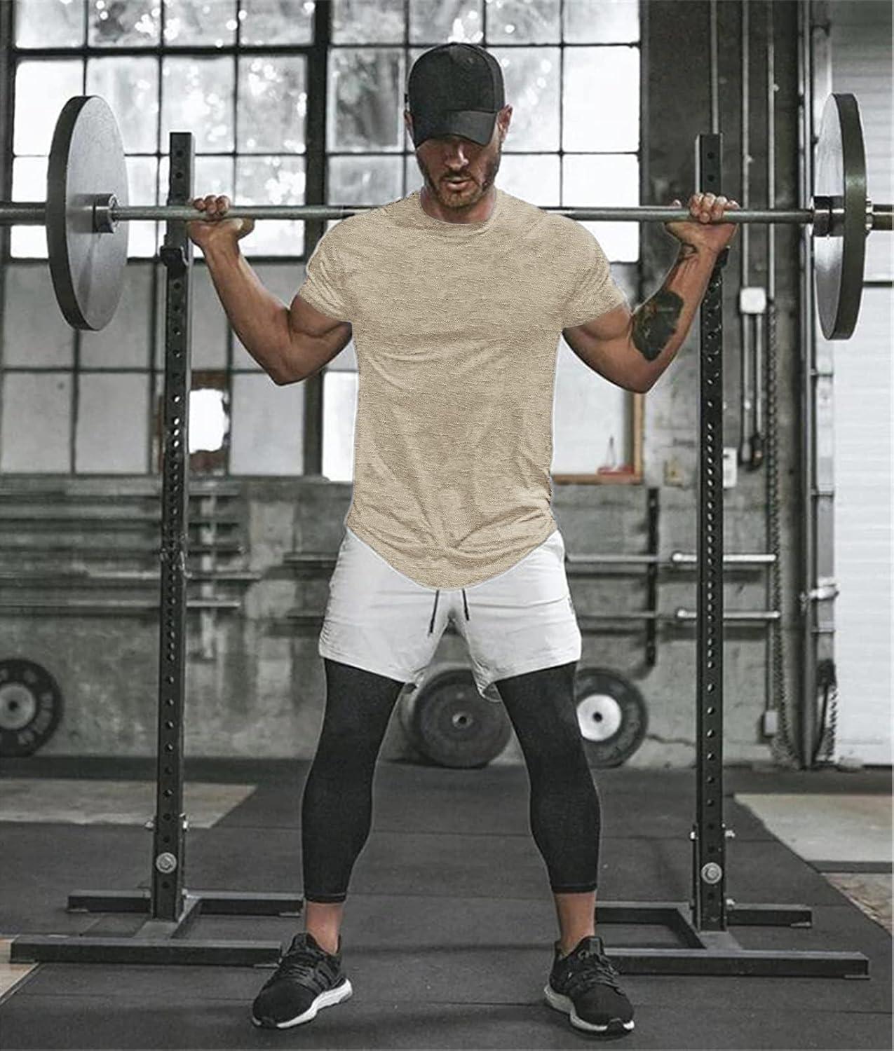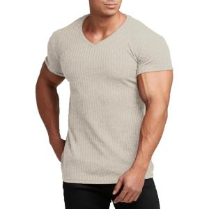 COOFANDY Mens Muscle T-Shirts V-Neck Slim Fit Workout Shirt Short Sleeve Longline Gym Athletic Tee Shirts(Beige)