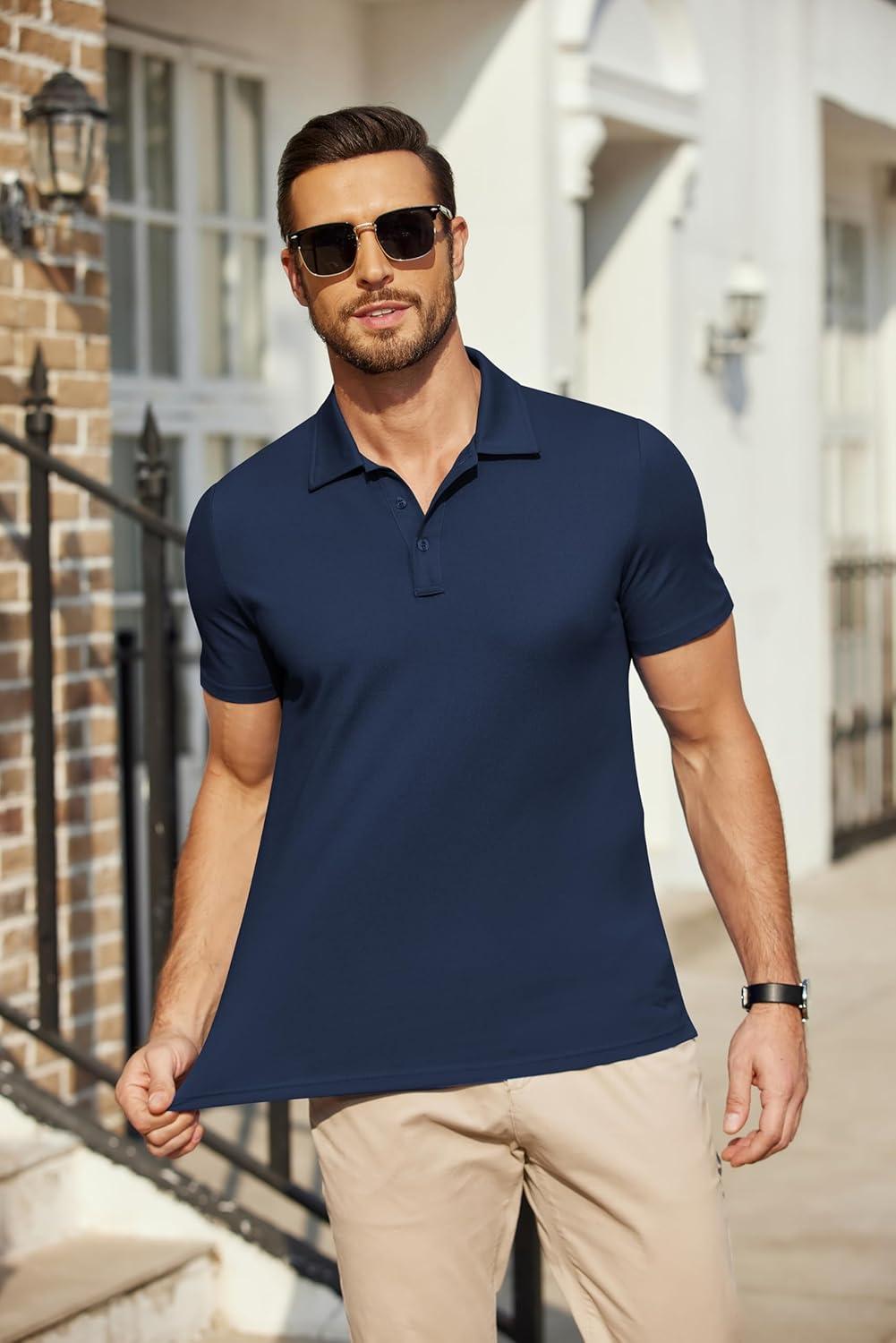 COOFANDY Men’s Zipper Polo Shirt Casual Knit Short Sleeve Polo T Shirt Classic Fit Shirts(Navy Blue)