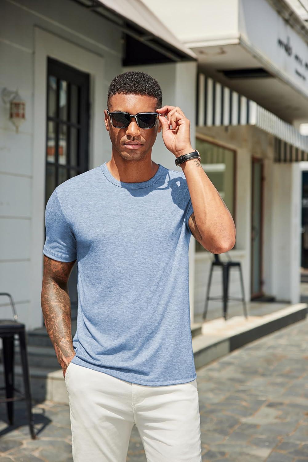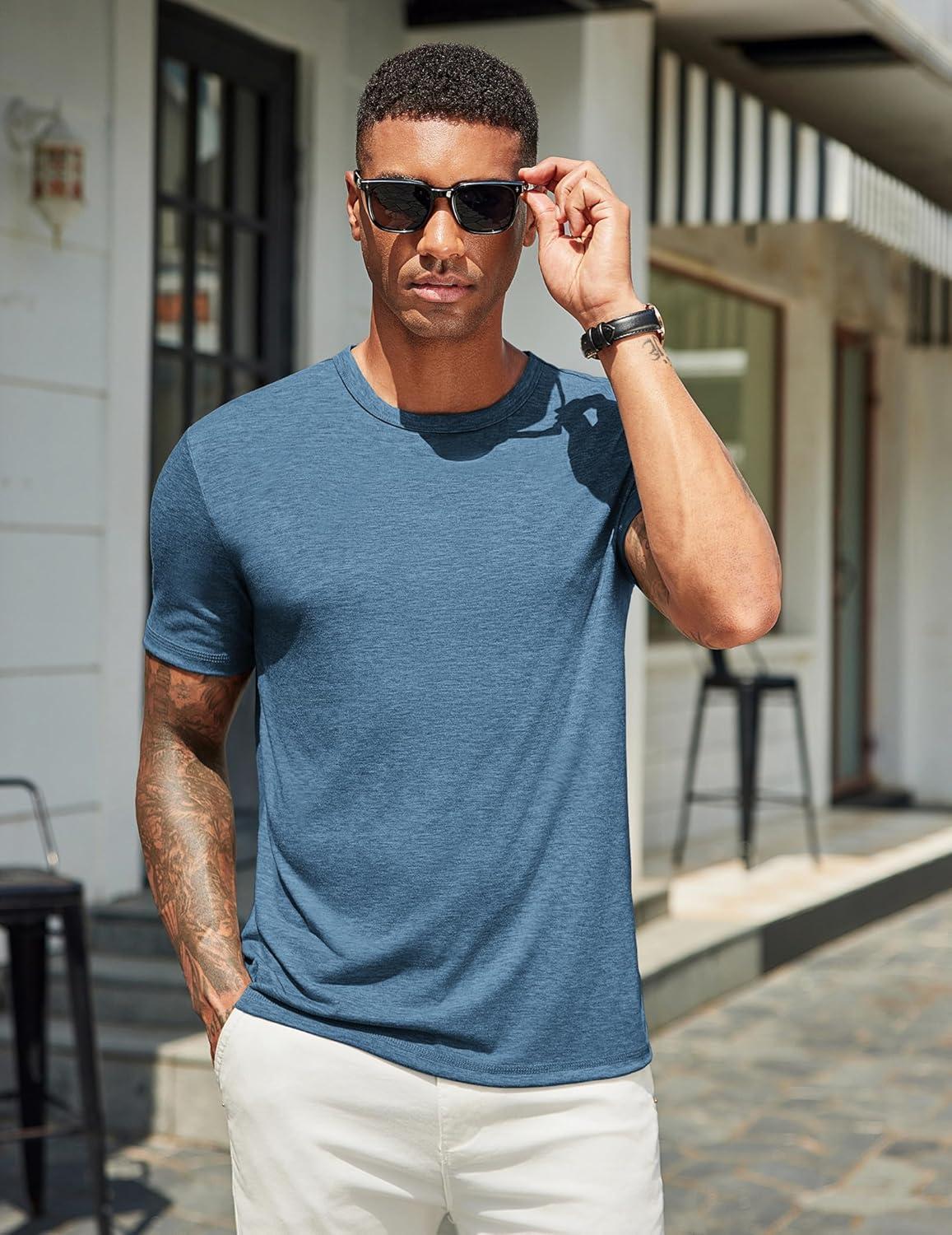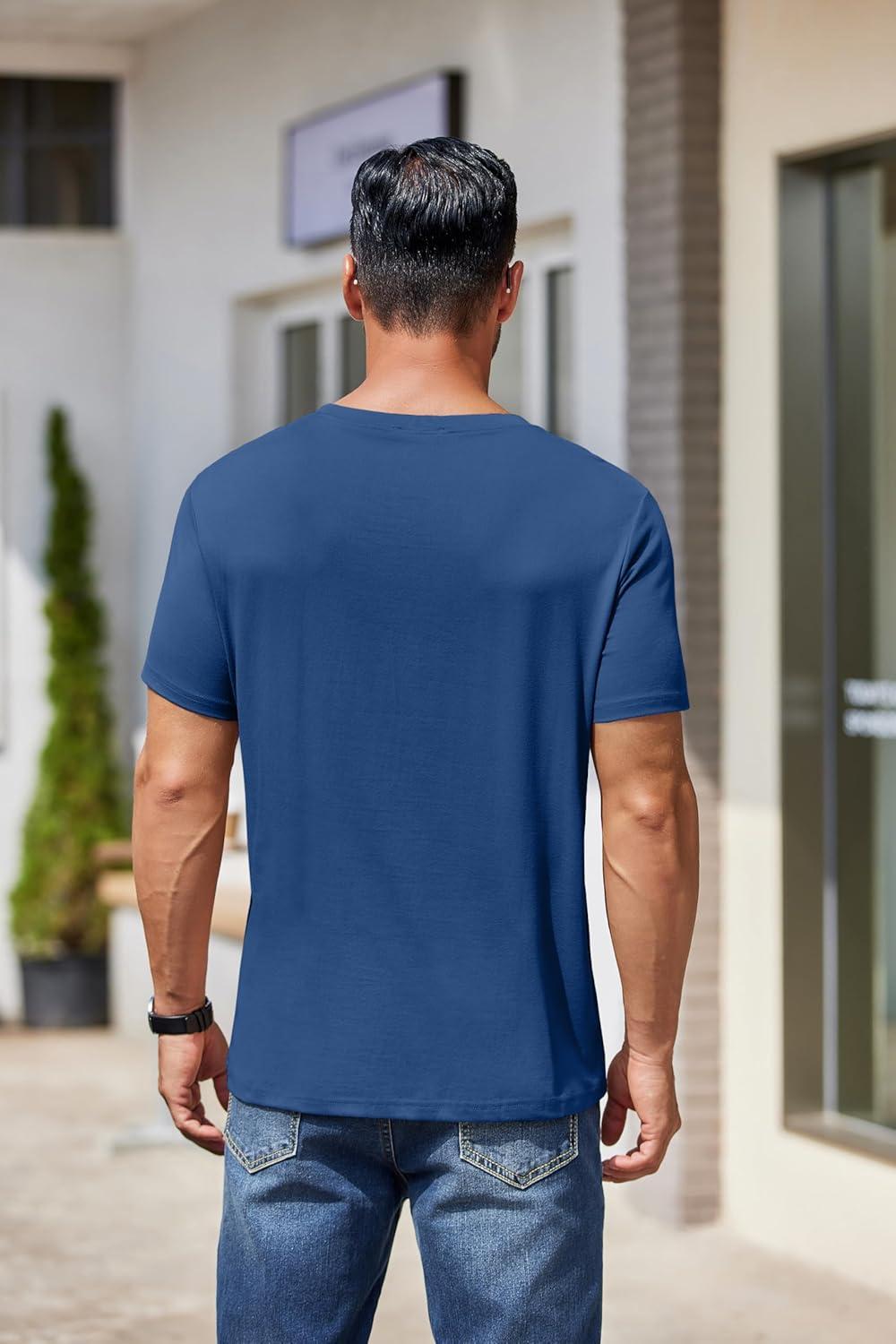 COOFANDY Men Casual Shirt Short Sleeve Summer Basic T Shirt Pocket Soild Tee Top(Blue1)