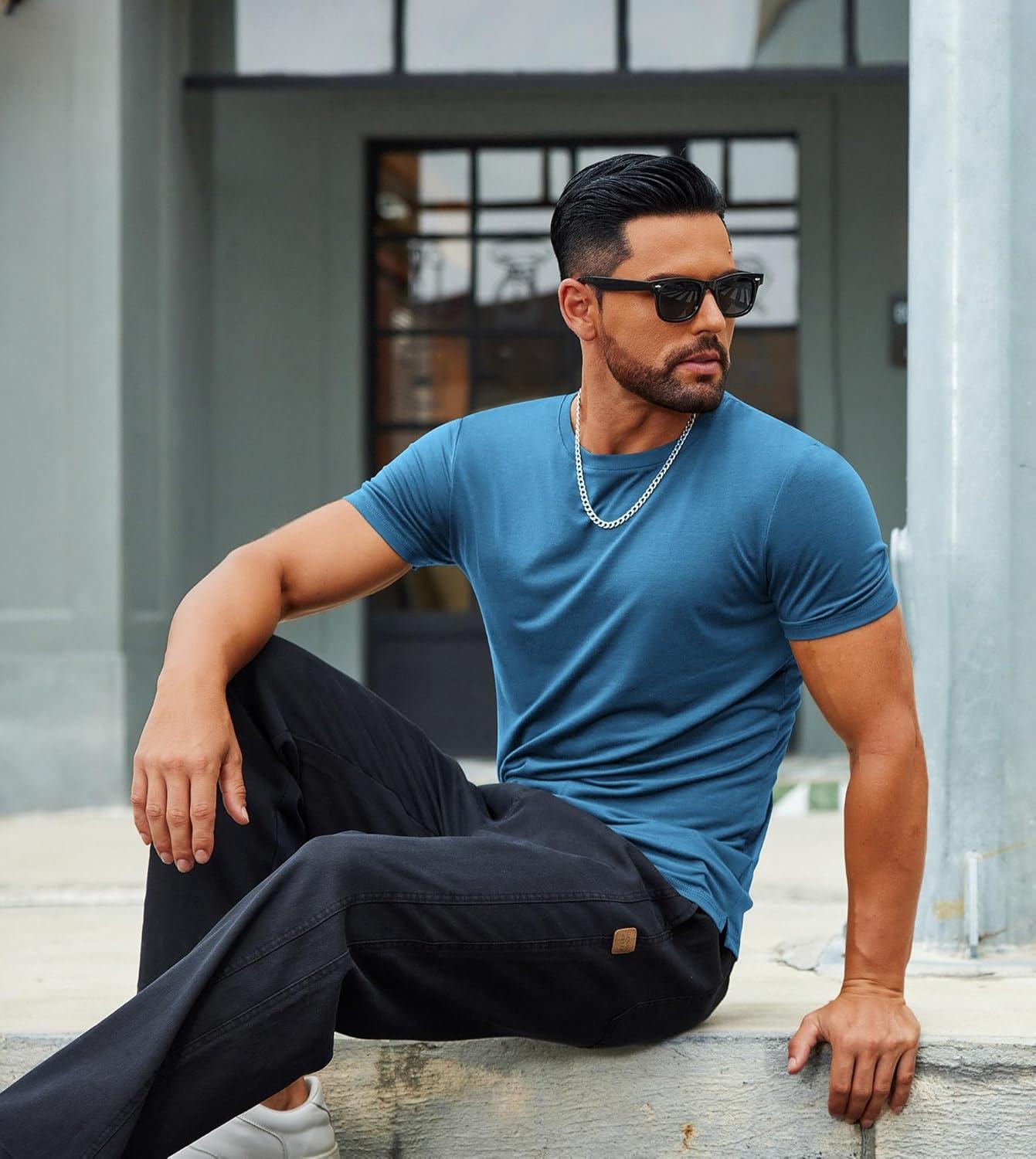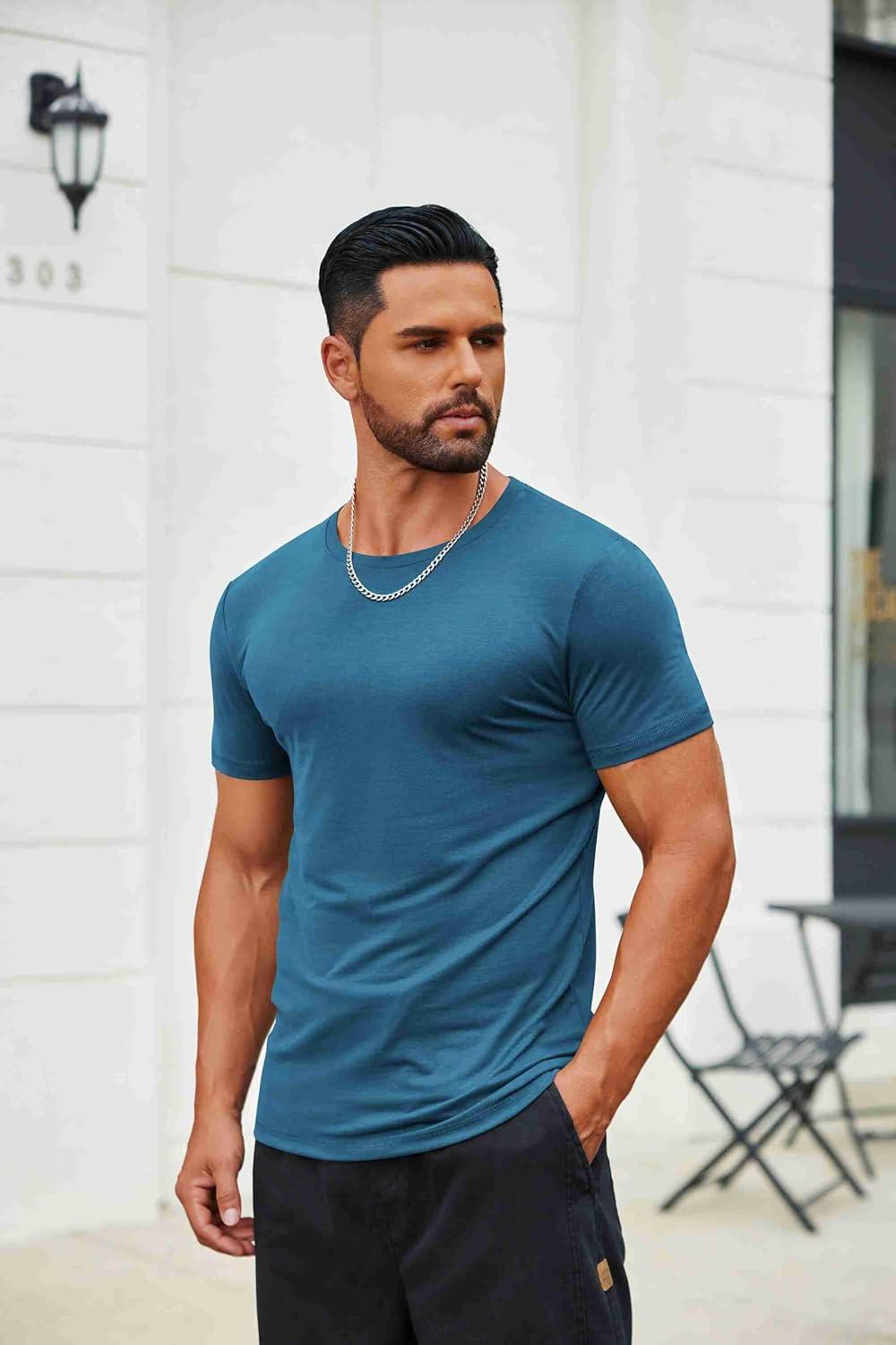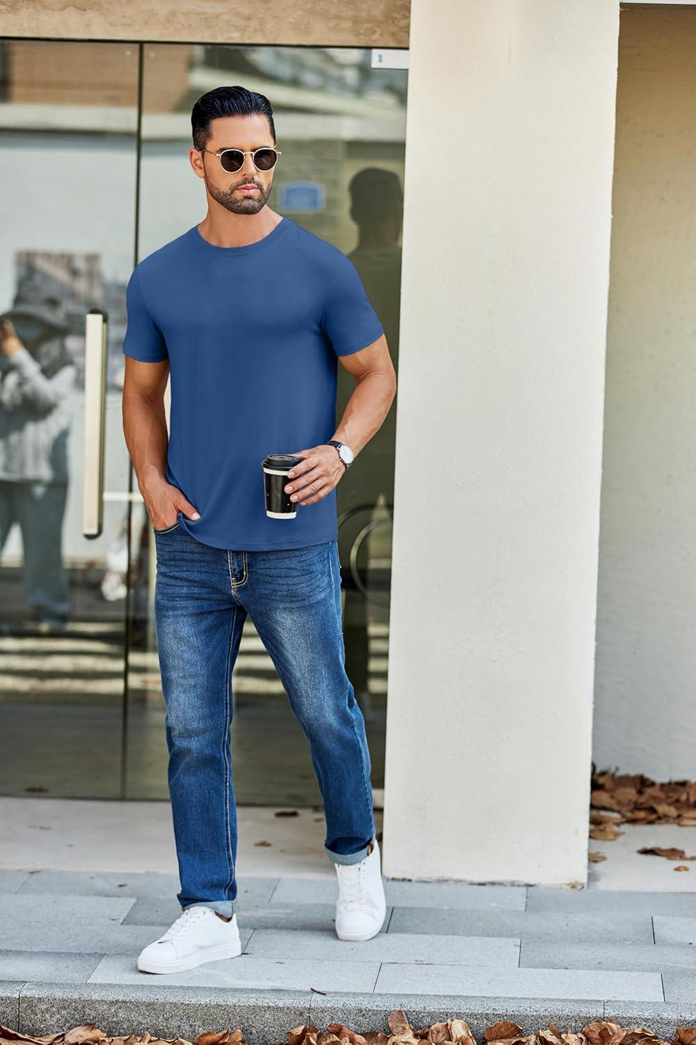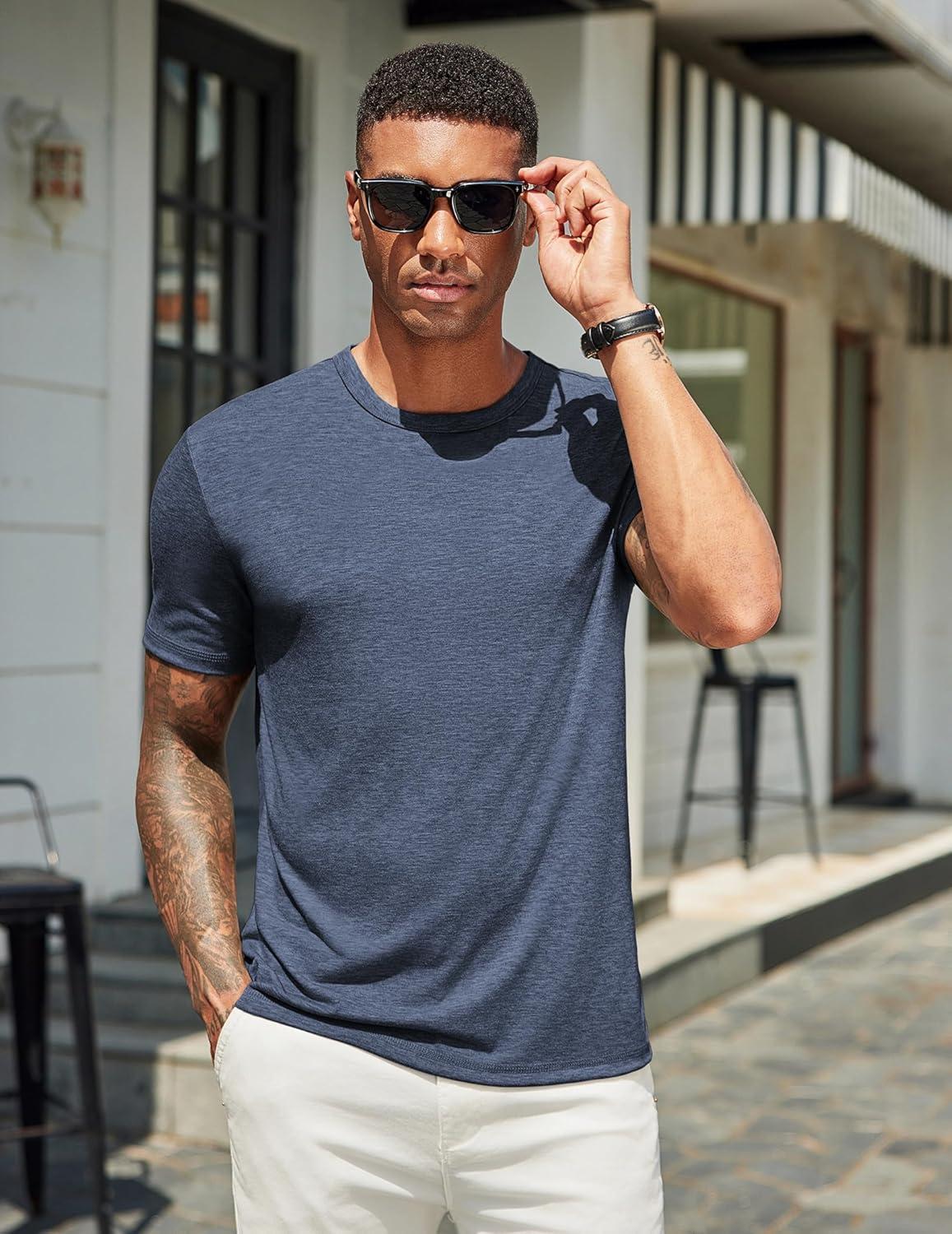 COOFANDY Men Casual Shirt Short Sleeve Summer Basic T Shirt Pocket Soild Tee Top(Blue1)