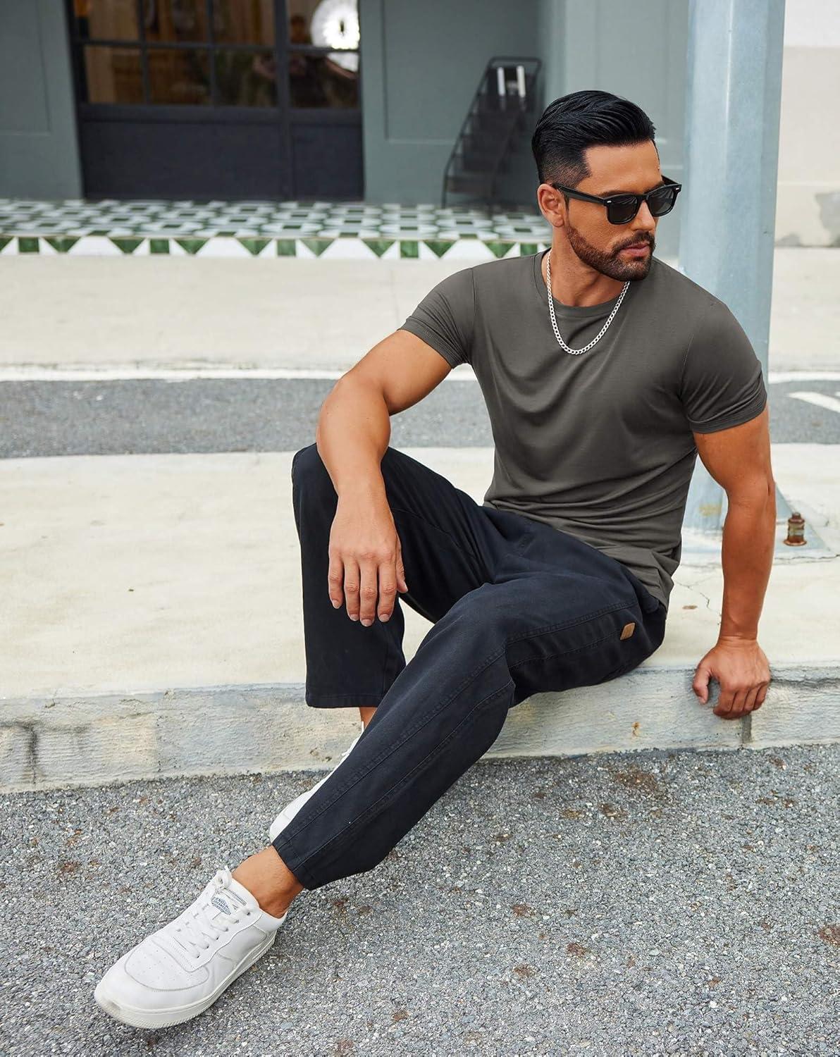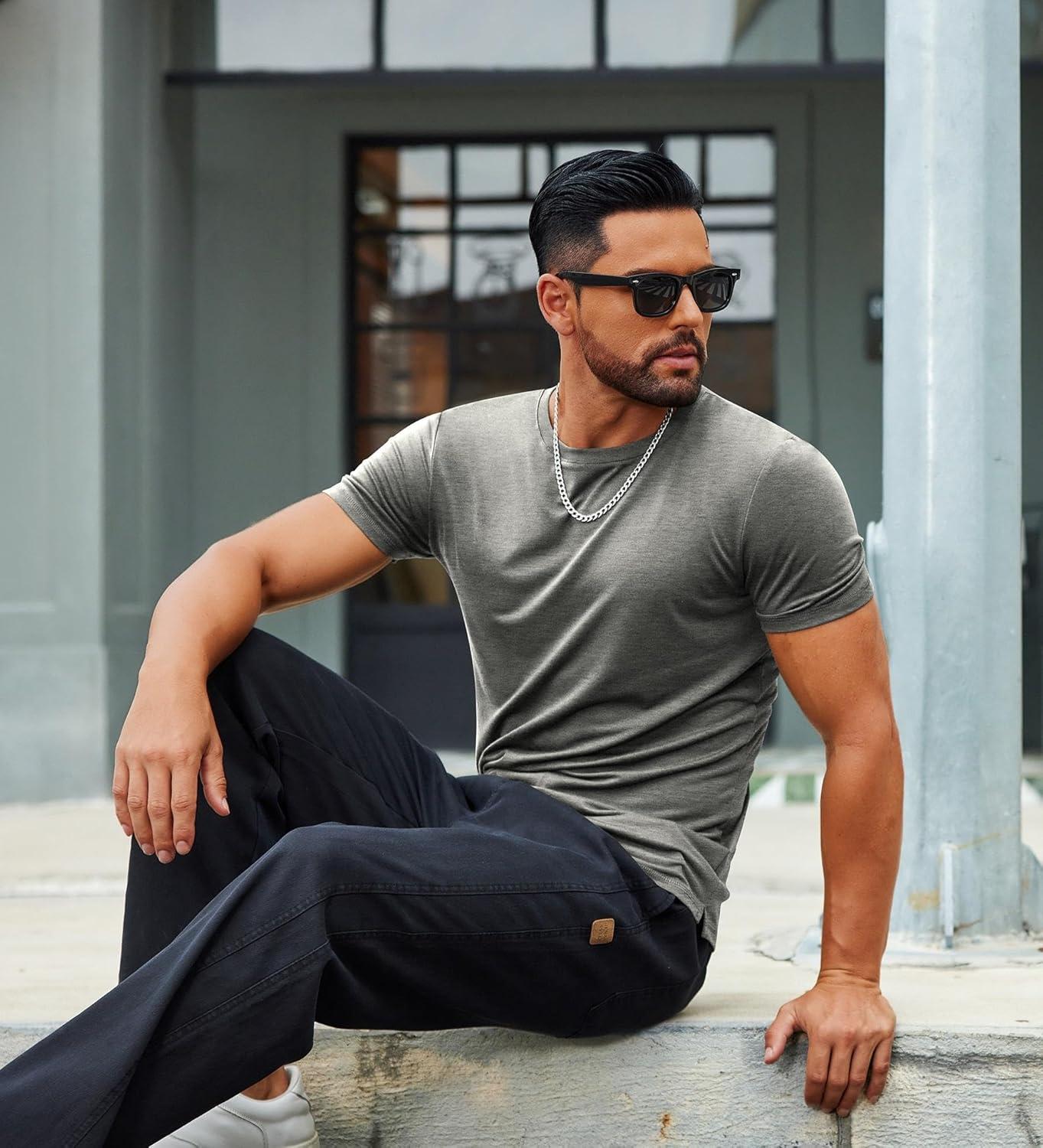 COOFANDY Mens T Shirts Casual Short Sleeve Cotton Tee Shirts Hipster Hip Hop Longline T-Shirt Basic Summer Tops(One Piece- Grey)