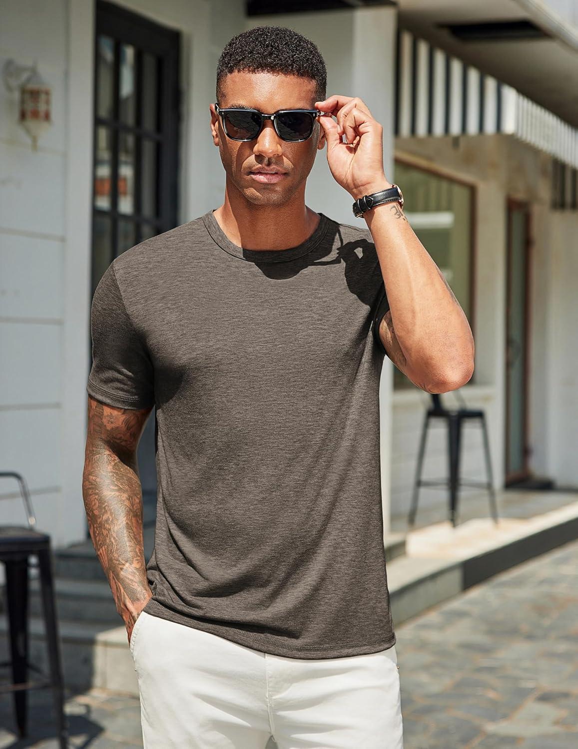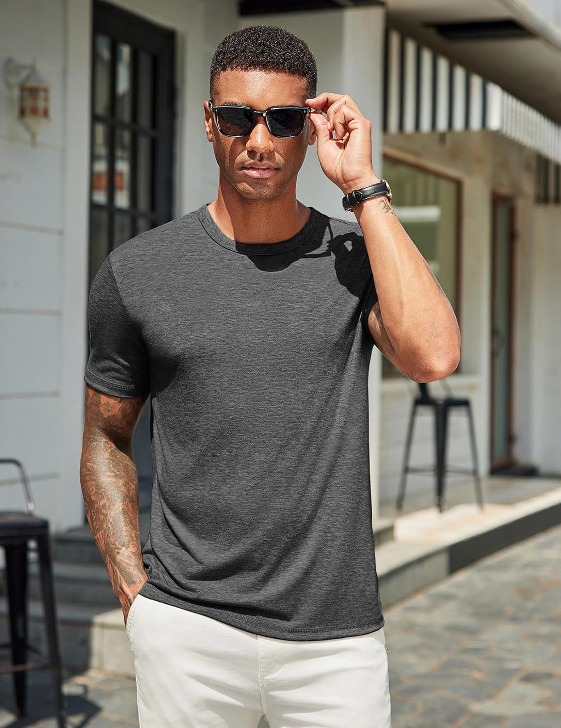 COOFANDY Men Casual Shirt Short Sleeve Summer Basic T Shirt Pocket Soild Tee Top(Dark Gray1)