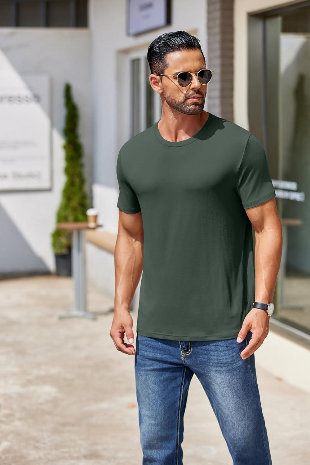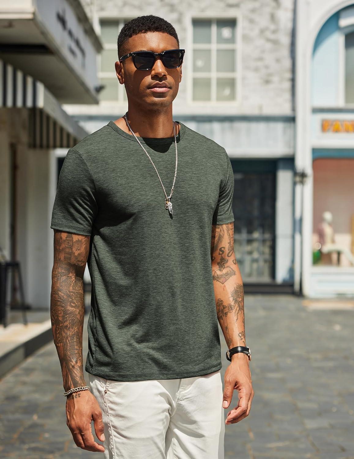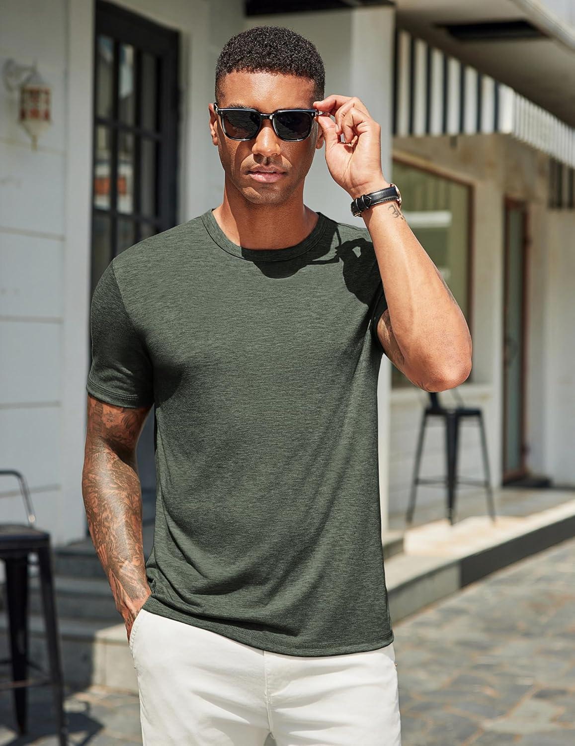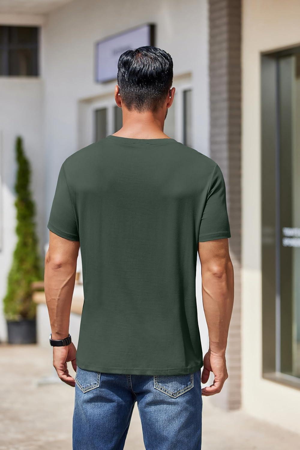 COOFANDY Men Casual Shirt Short Sleeve Summer Basic T Shirt Pocket Soild Tee Top(Army Green)