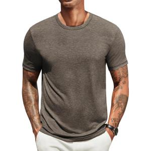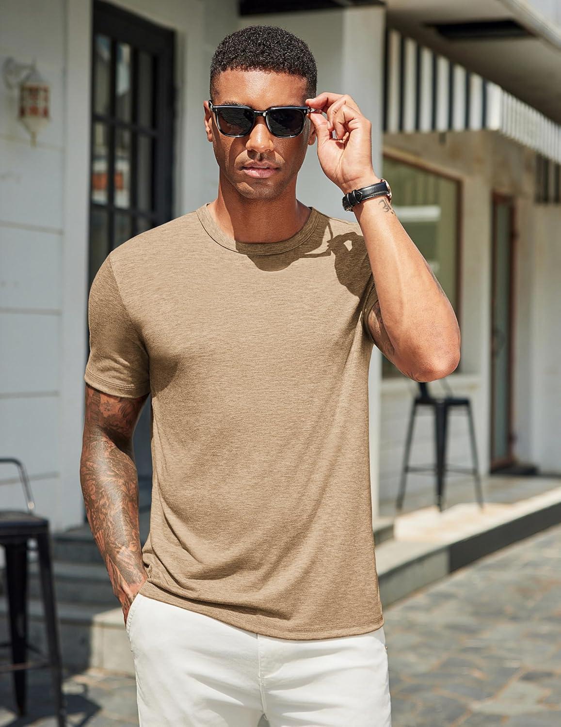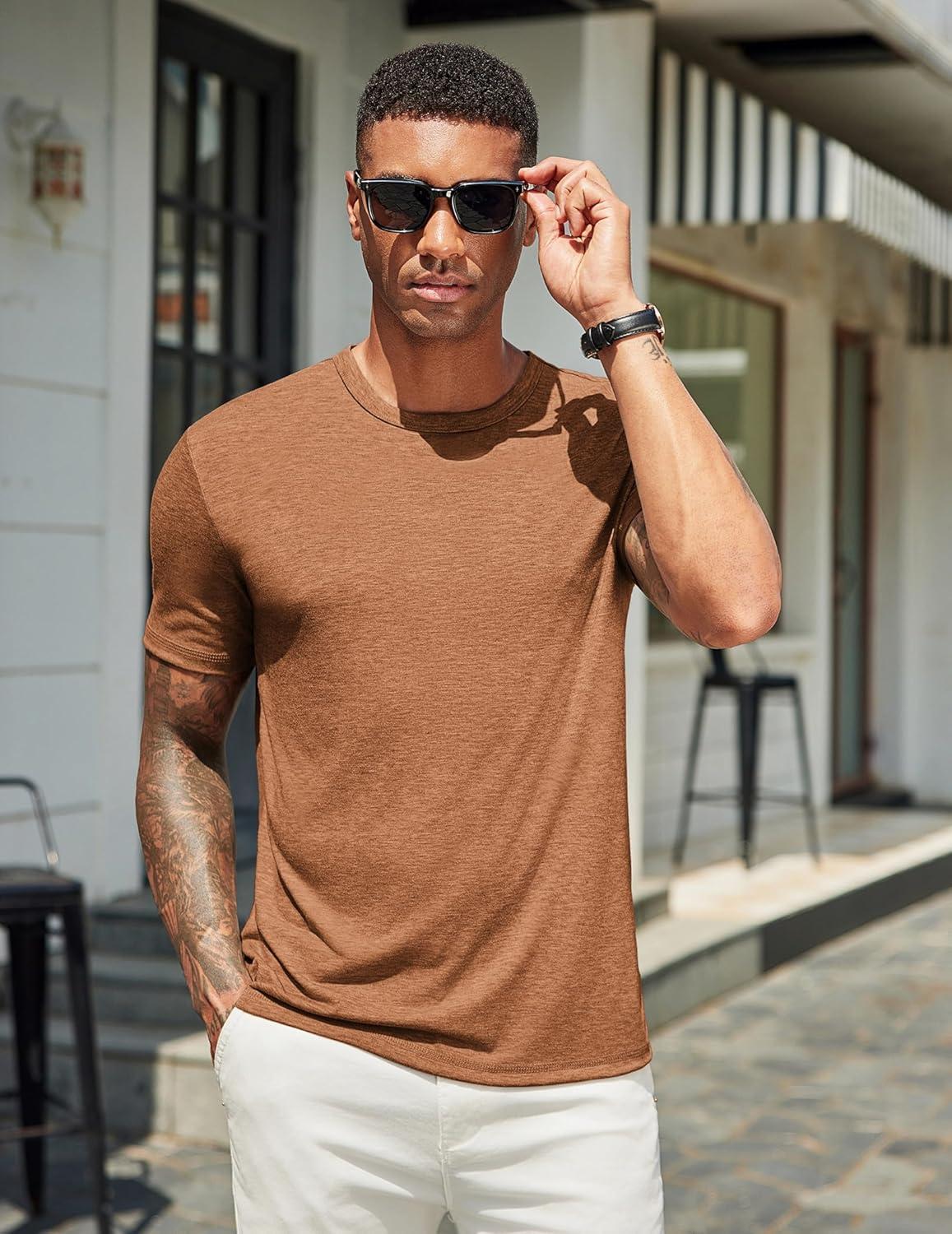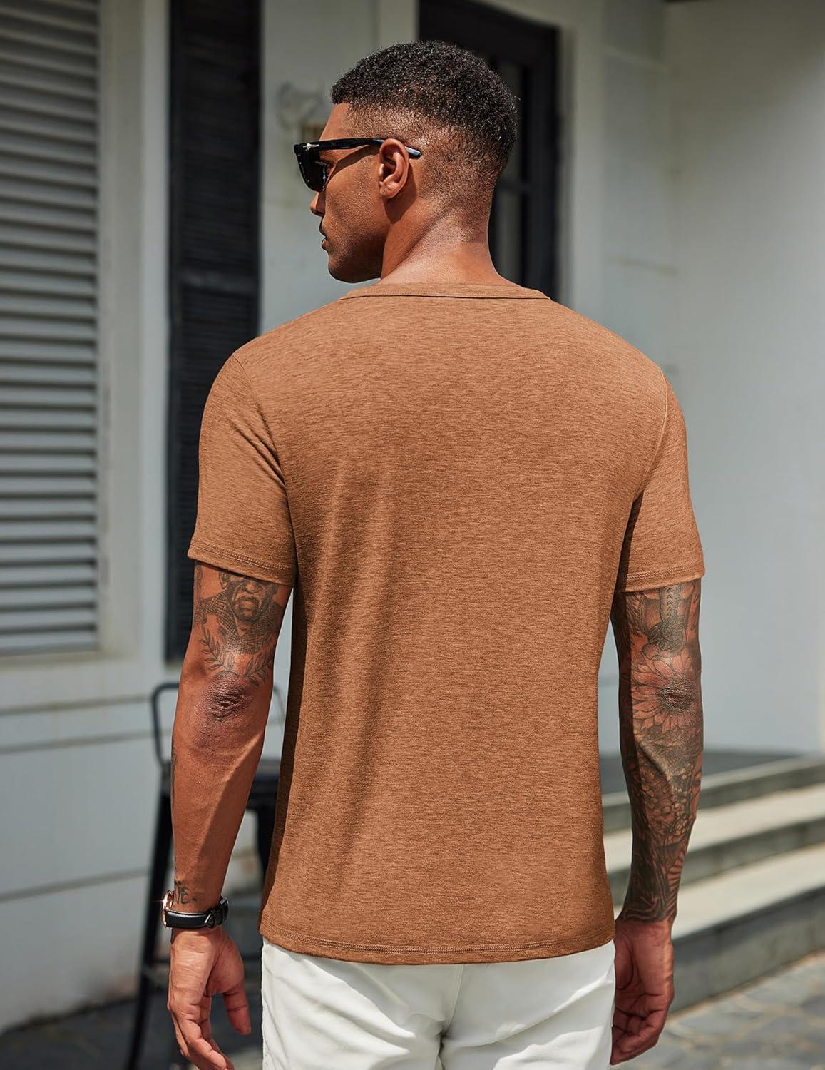 COOFANDY Men Casual Shirt Short Sleeve Summer Basic T Shirt Pocket Soild Tee Top(Coffee1)