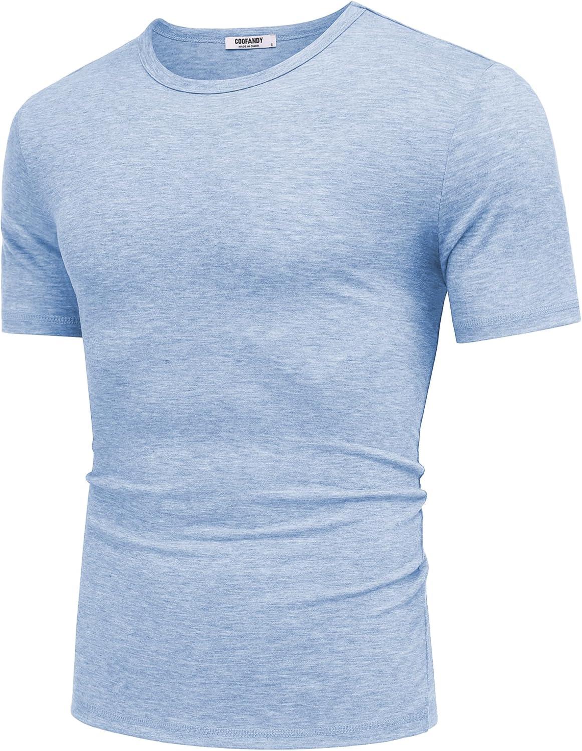 COOFANDY Men Casual Shirt Short Sleeve Summer Basic T Shirt Pocket Soild Tee Top(Lightblue)